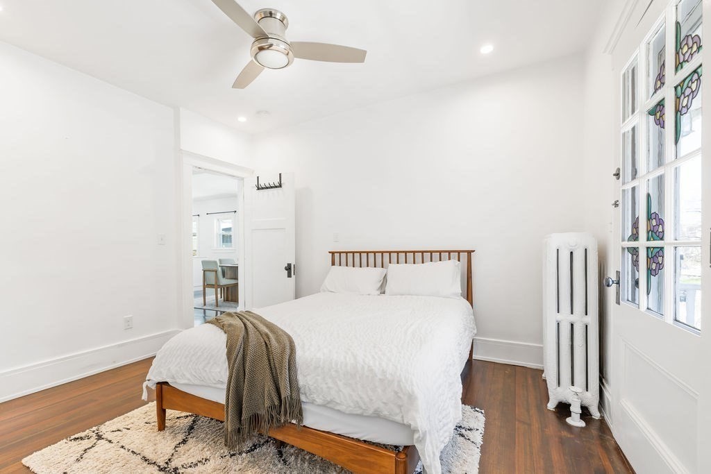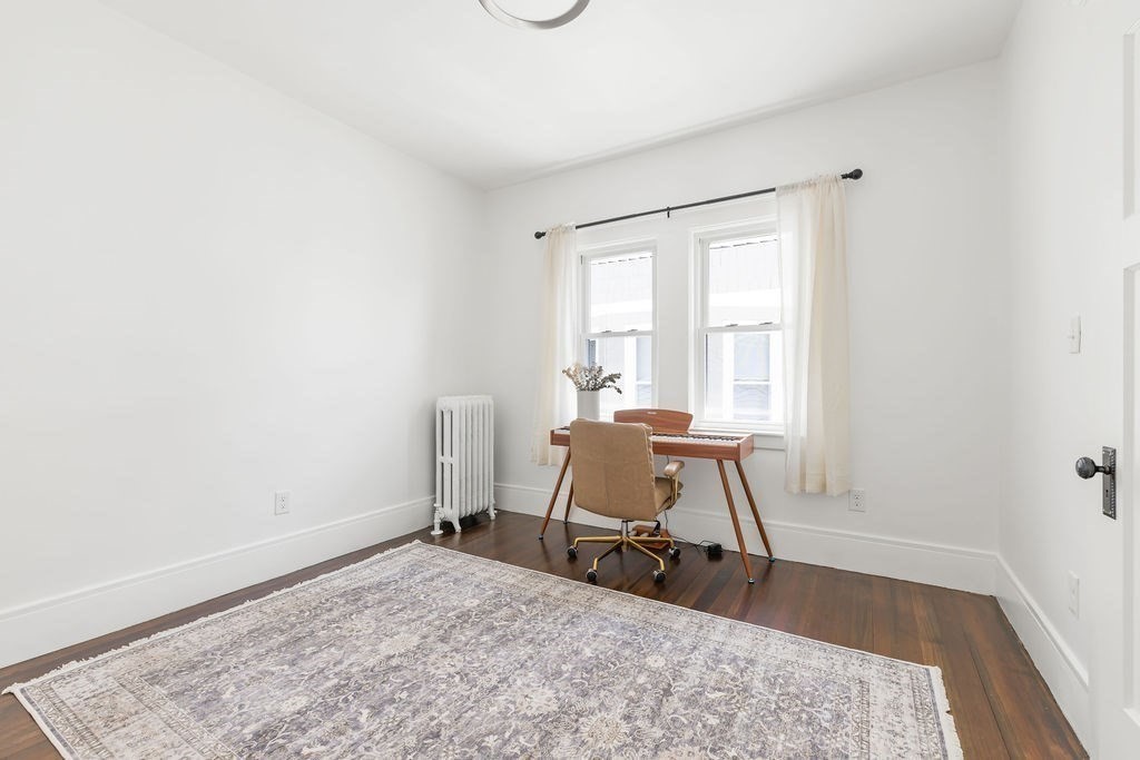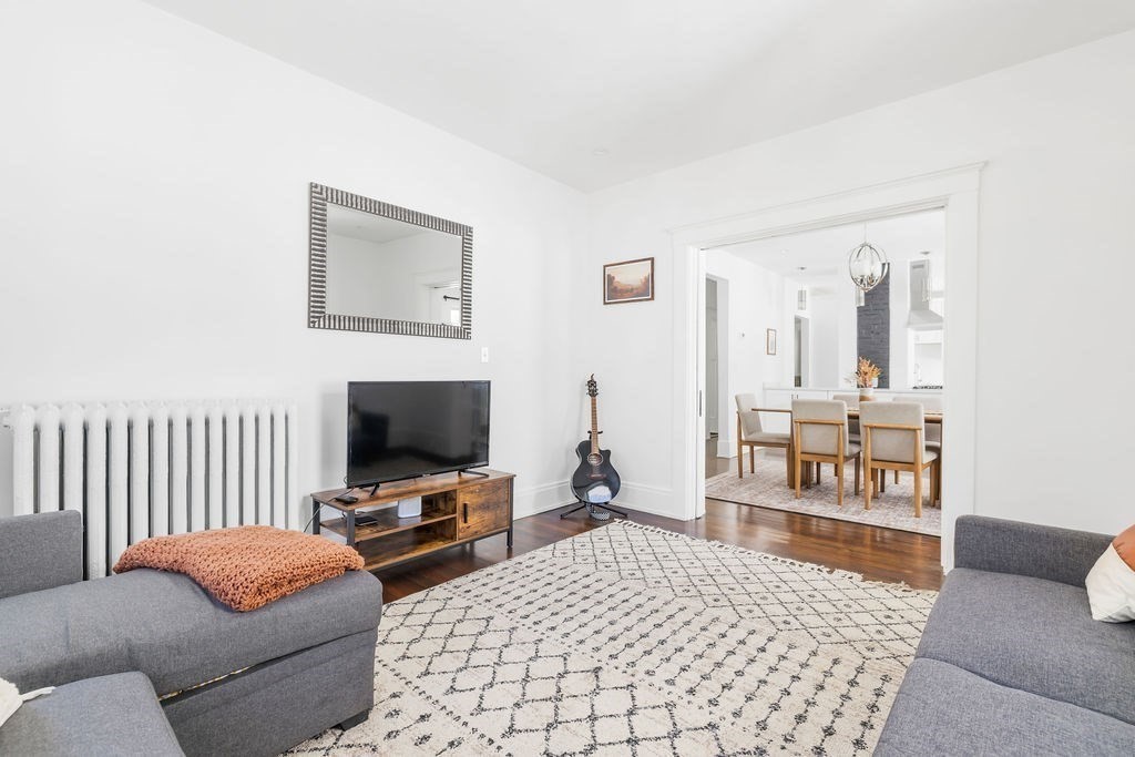 Located just half a mile from the Forest Hills T Station, this spacious 3 bedroom 2 full bathroom condo features classic details with a modern touch. Significantly renovated in 2023, this property has an updated kitchen with quartz countertops, gas cooking, and stainless steel appliances. The primary bedroom includes an en-suite bathroom with a subway tile shower, bench seating, and a rainfall showerhead. High ceilings and numerous windows create a bright and airy feel. The private front porch and back deck provide an opportunity to get fresh air while enjoying city living. In-Unit Laundry, a private storage room in the basement, and a shared back yard complete this home.