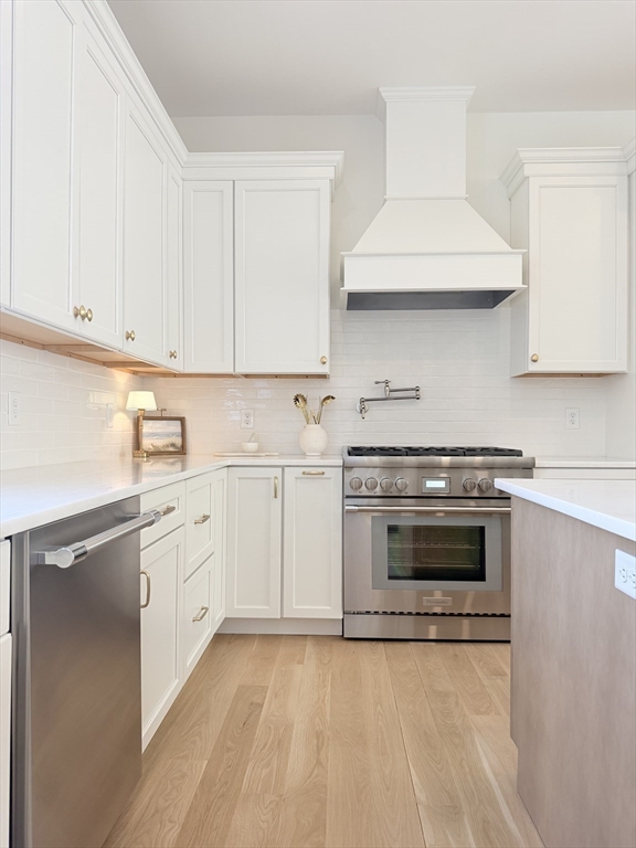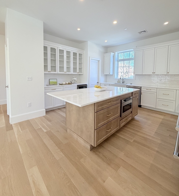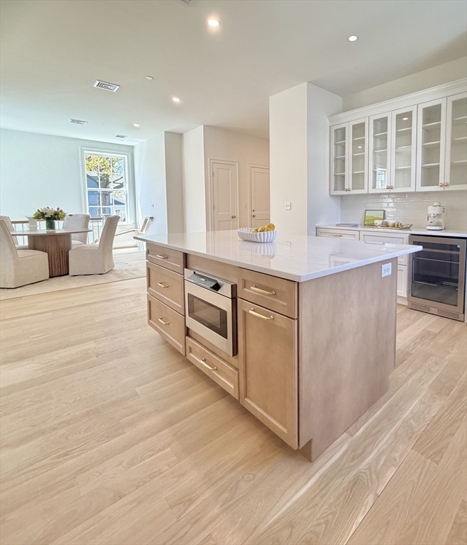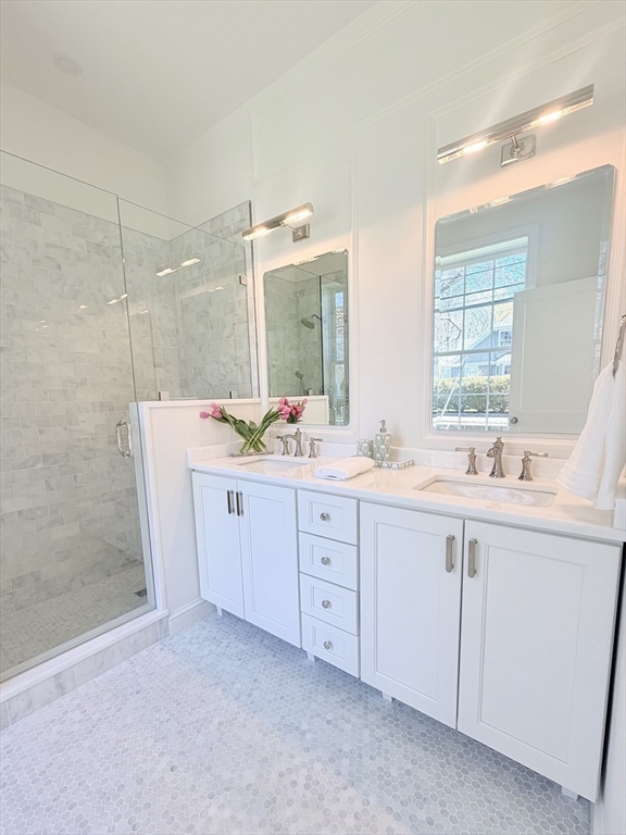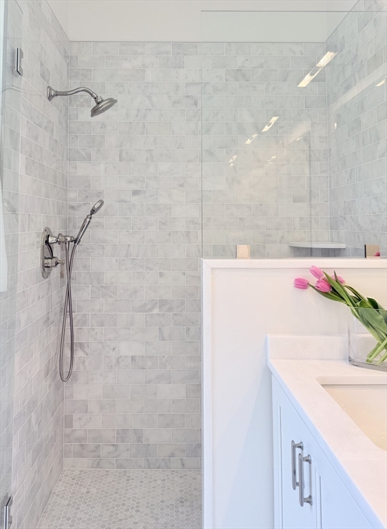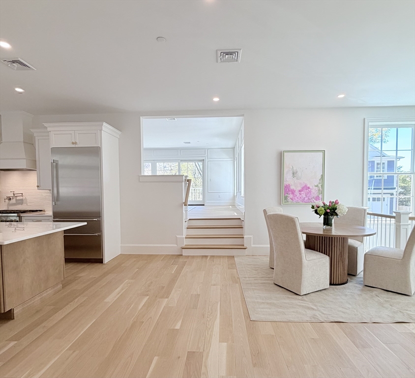 Charming Old Town Marblehead townhouse. ± 2,212 SF of brand-new construction with expert craftsmanship and quality finishes including polished nickel hardware, Stainless steel Thermador appliance package, marble counters and white oak flooring. This distinguished 3-bedroom, 2-bath home was designed for one-level living and features a first-floor master en-suite, kitchen/dining area, and a spacious separate living room appointed with picture mouldings, a gas fireplace and large sliding glass doors that open to a private deck—perfect for indoor/outdoor living. The lower level includes a bright bedroom that easily serves as an office or recreational room. One-car attached garage with adjacent paved asphalt driveway for on-site parking. Walking distance to everything Marblehead has to offer; shops, restaurants, waterfront and historic sites. Thoughtful details, generous proportions, and a warm, personal feel make this a rare offering in the heart of Old Town.