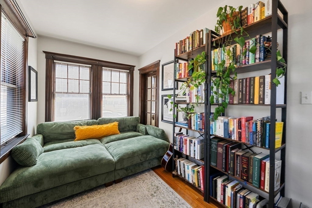For May 19. Located in the desirable Pondside neighborhood this first floor condominium is just moments to Jamaica Pond. Included with this 2 bedroom/1 bath home is a shared backyard with a stone patio perfect for entertaining. A large foyer leads to the living room which features a gas fireplace, a wall of windows and lovely wood trim. Adjacent is a bright sun room doubling as a home office or library. The formal dining room showcases an original built-in china cabinet, chair rail trim and an array of windows filling the space with natural light. The sunny kitchen provides stainless steel dishwasher, gas stove, stone countertops, a separate pantry and access to a back porch. Beautiful wood flooring throughout adds warmth and character. Additional amenities: central a/c, a private storage and laundry area in the basement and garage parking. This prime location allows an easy commute to Downtown or Longwood via the Jamaicaway, Orange Line T and Bus 39. Near Centre St shops & restaurants