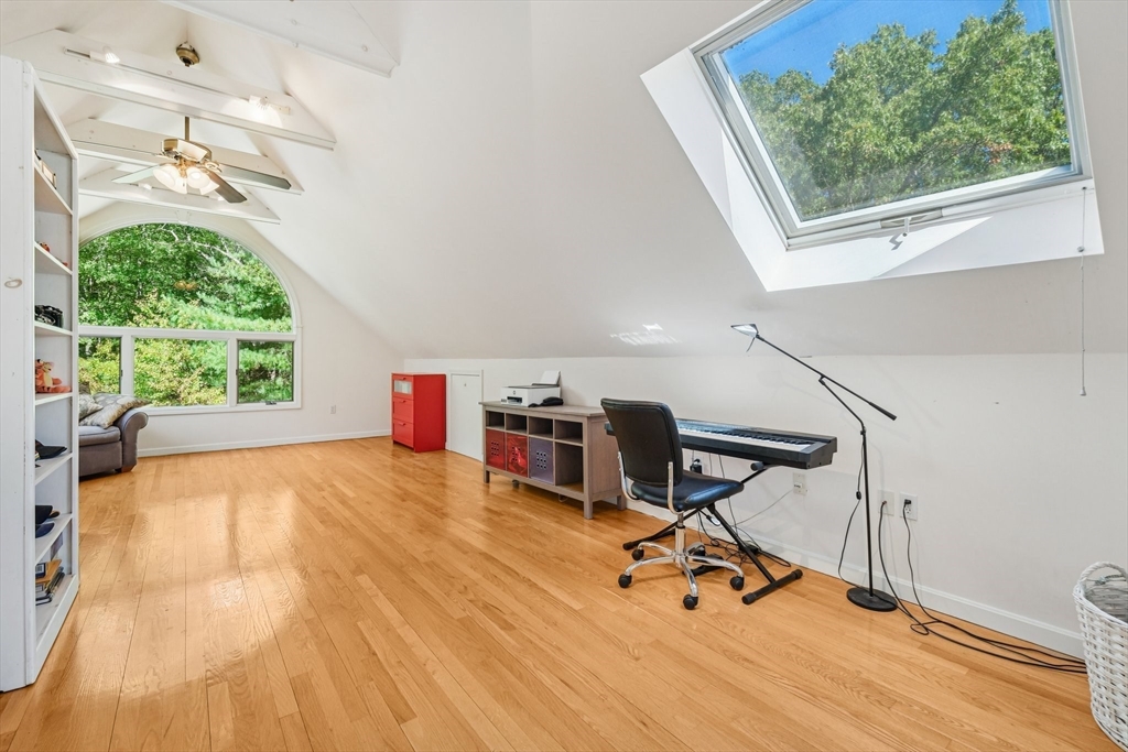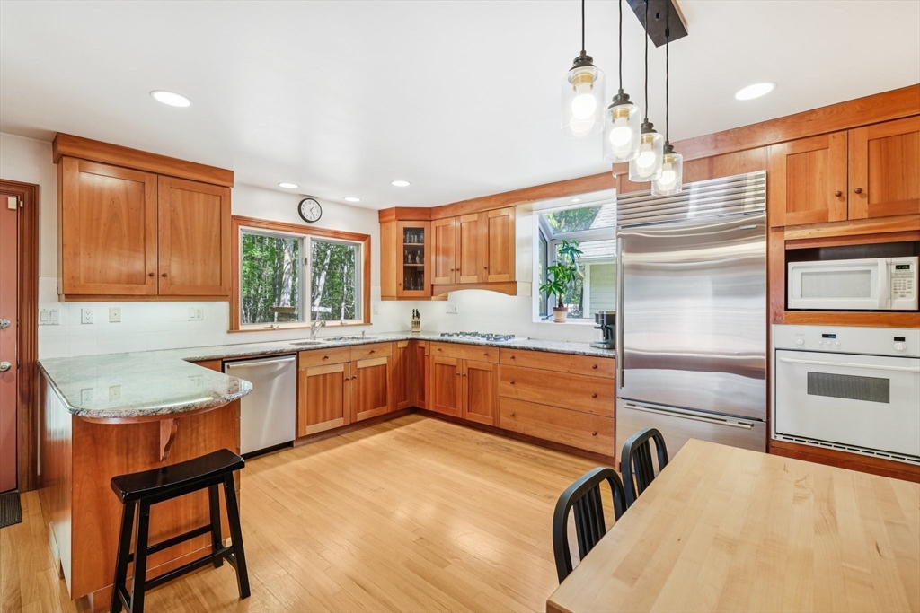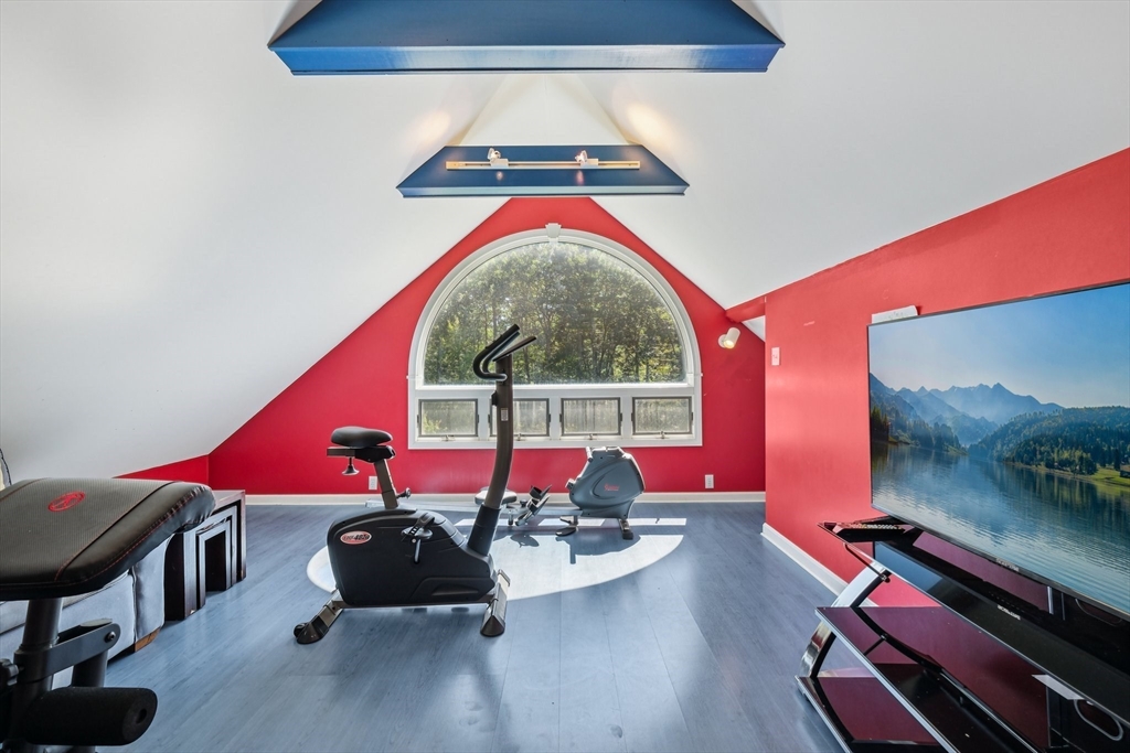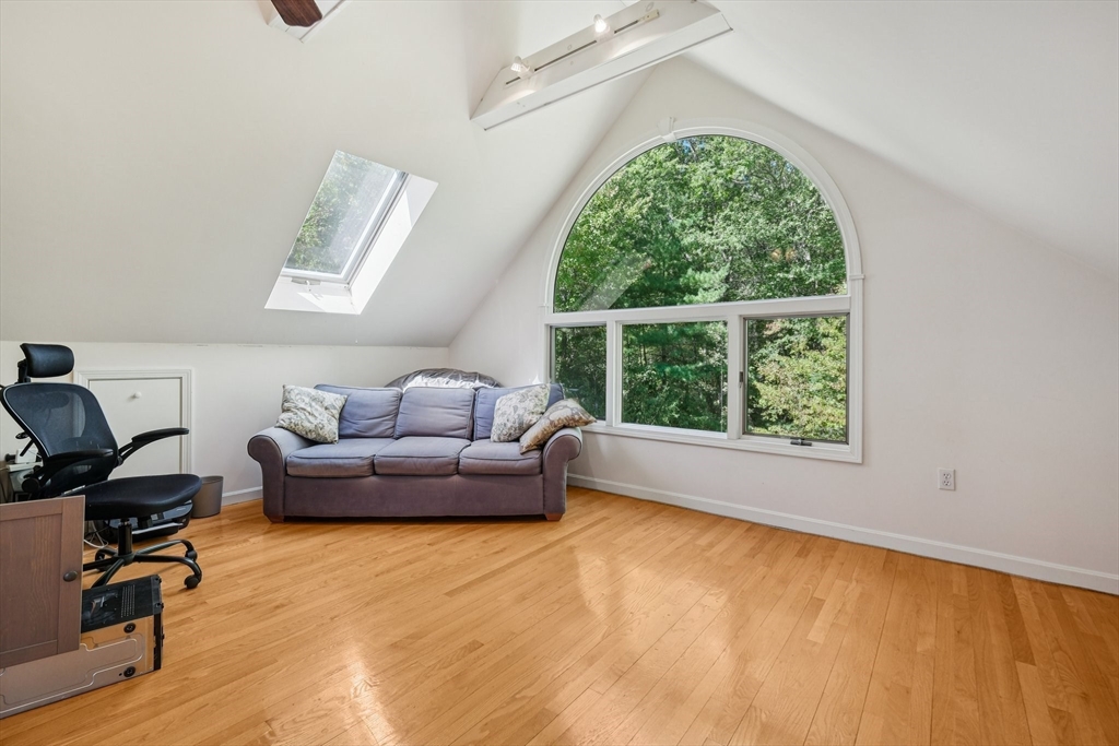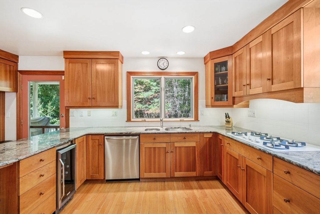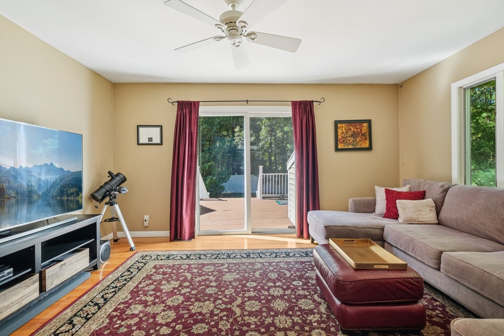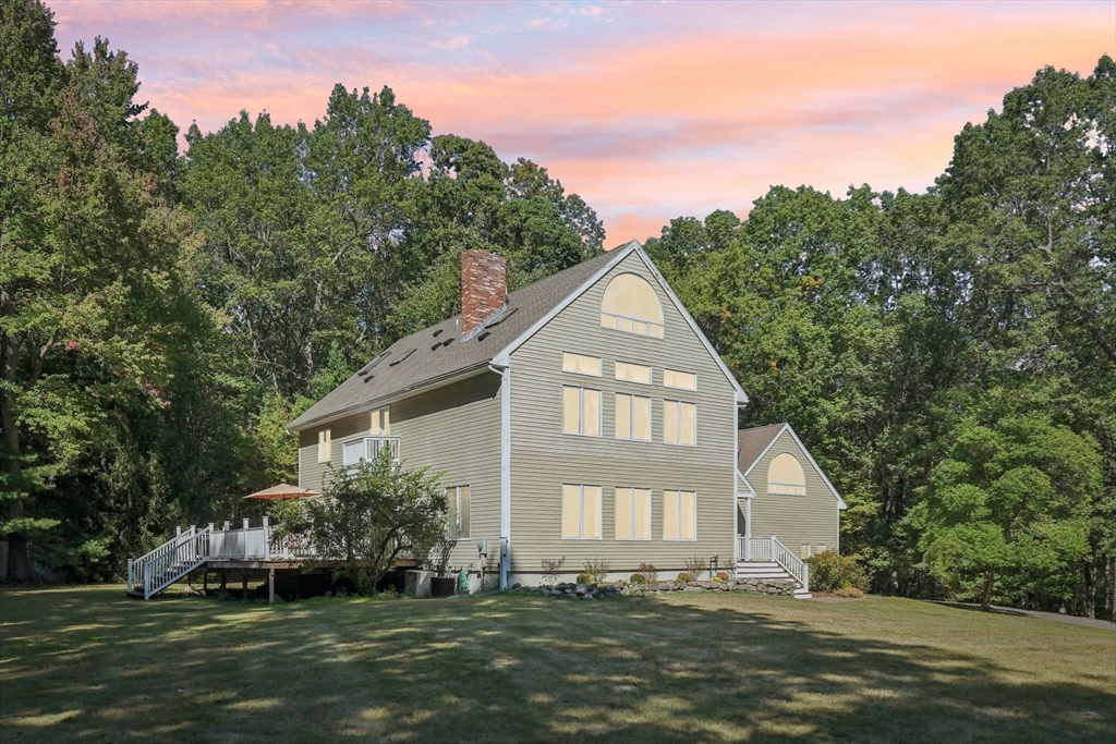 Welcome to this spacious and sun-filled contemporary retreat, nestled on 5.53 private acres. Offering 4 bedrooms, 4.5 baths, and nearly 4,000 sq. ft. of versatile living space. The main level boasts gleaming hardwood floors, recessed lighting, and a bright living room anchored by a cozy fireplace. The open-concept kitchen is a chef’s delight, featuring abundant cabinetry, expansive windows, and a charming eat-in area that flows into the formal dining room. With three separate entry points leading to private decks, the transition to outdoor living is seamless. The second floor hosts four generously sized bedrooms, including a luxurious primary suite with a walk-in closet and ensuite bath. A second bedroom also features its own private ensuite, while two additional bedrooms share a well-appointed full bath. For added flexibility, the third floor offers two bonus rooms, one with its own ensuite, ideal for a home office or guest suite. Complete with a 3-car garage and recent updates.