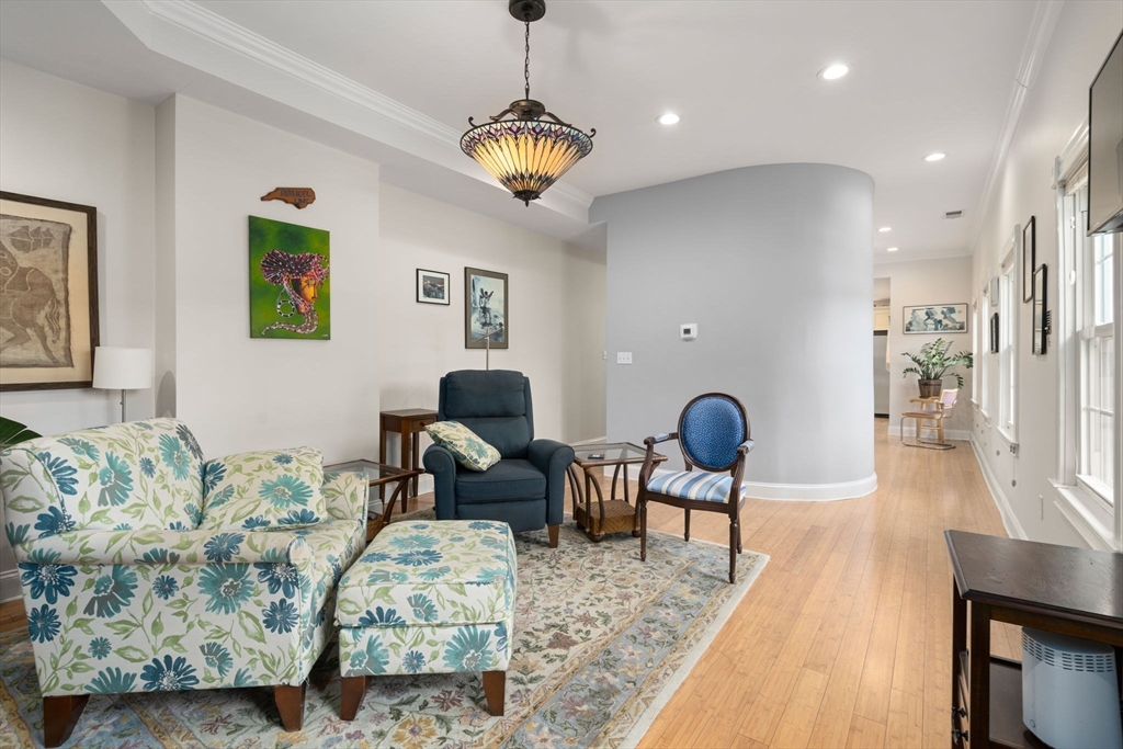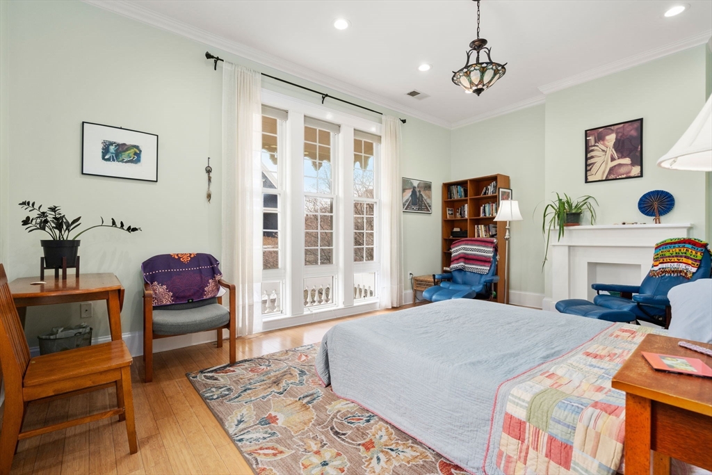 Italianate Victorian gem in the heart of historic Dudley Square, this distinctive duplex-style condo offers over 1,800 sq ft of character and functionality. Featuring 3 spacious bedrooms plus a dedicated office or optional 4th bedroom, and 2.5 baths, the home showcases soaring ceilings, hardwood floors, and abundant natural light. The main level includes a welcoming living room, separate dining area, and a well-appointed kitchen with custom cabinetry, crown molding, stainless steel appliances, and direct access to one of two private decks—ideal for seamless indoor-outdoor living. The primary suite offers a walk-in closet, en suite bath, oversized windows, and a decorative fireplace. Enjoy the rare benefit of an exclusively deeded backyard—perfect for entertaining or gardening—along with two private decks and off-street parking. Convenient to public transportation with easy access to I-93 & I-90, plus just 1.5 miles to South Bay Center, shopping, dining, and everyday conveniences.