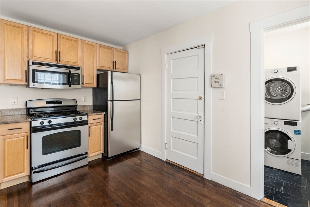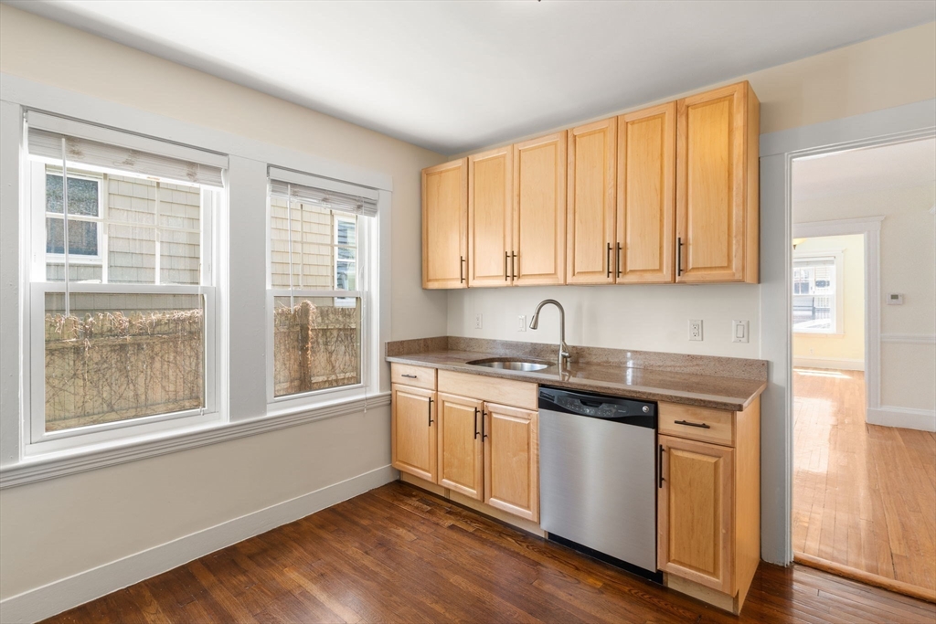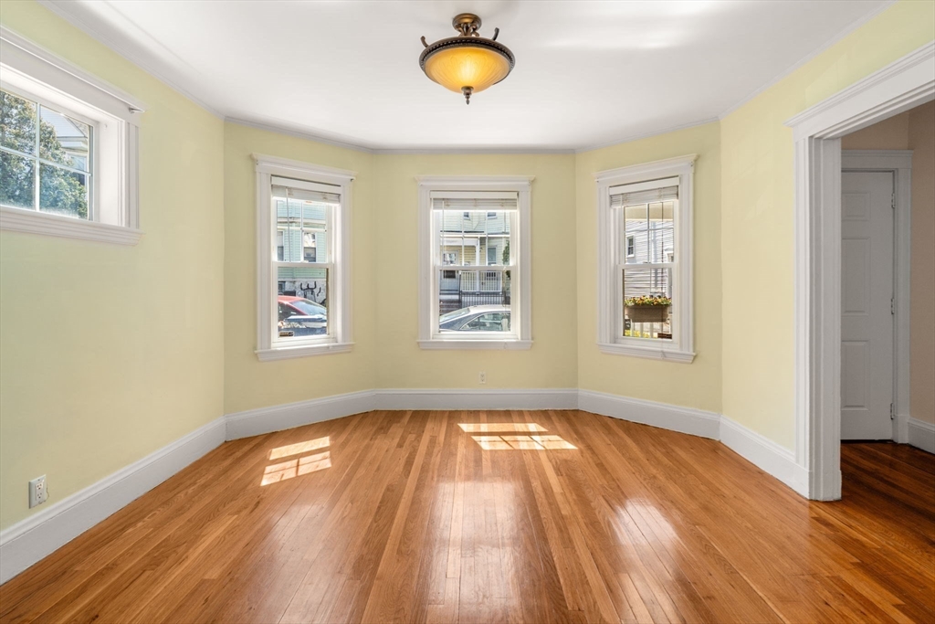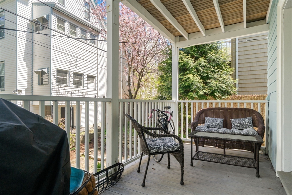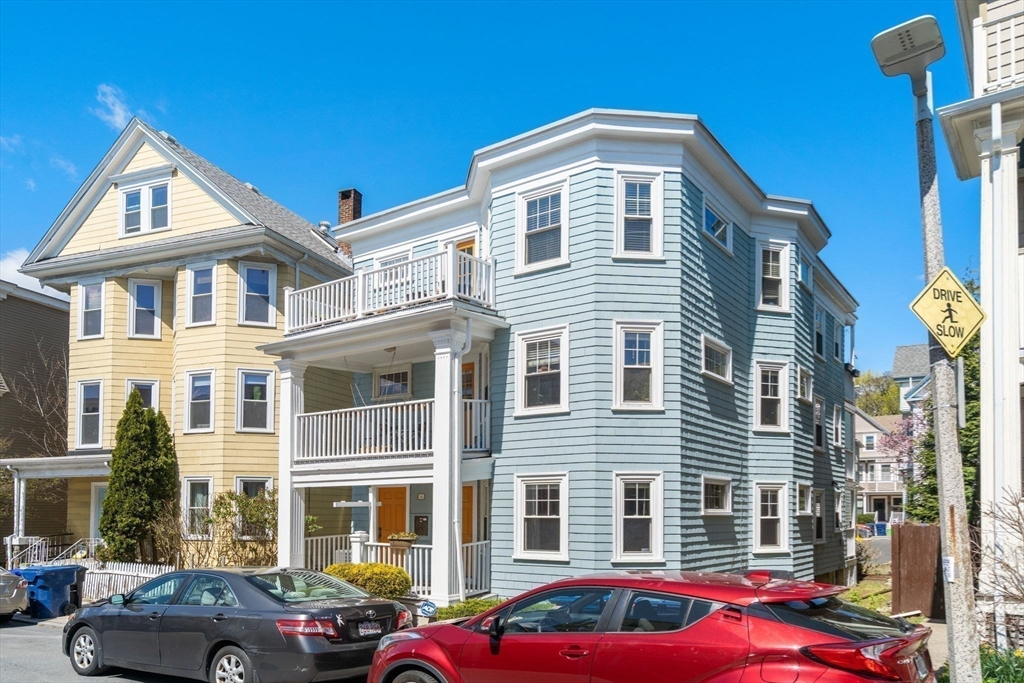 Move right in! This sunny first floor unit is in the best commuter location! Gleaming hardwood floors, high ceilings, built ins add to the charm of this wonderful unit. Exclusive/private entrance, outdoor space, including front porch and back porch. Entry foyer has large walk-in closet, living room flows nicely into the formal dining room, and a cook's kitchen with SS appliances and granite countertops. There is in-unit laundry, and a beautiful, renovated bath. Good sized bedrooms and many improvements to the building, including a re-build of porches/decks, exterior paint in 2023, newer hot water tank and boiler. Please see list of all improvements (attached) over the years. Super low condo fee of just $200. Why rent? And the best part is the location! Walk right across the street to the Forest Hills T station (orange line & commuter rail), as well as to restaurants and to the Arnold Arboretum. Don't miss this one!