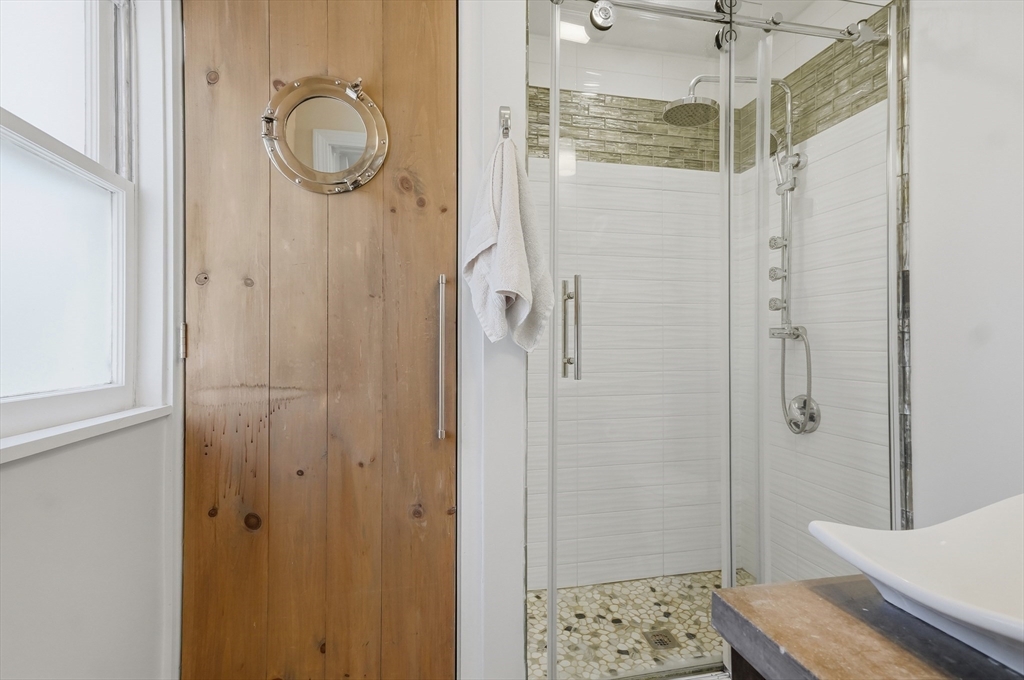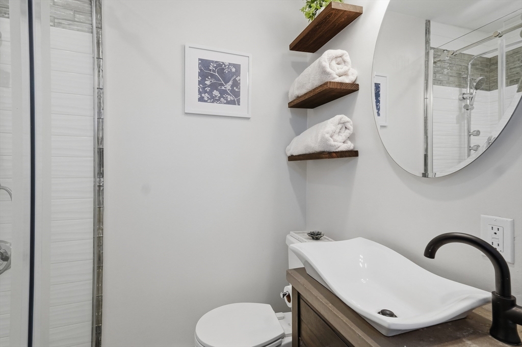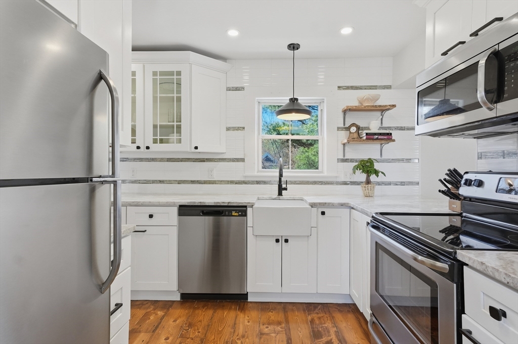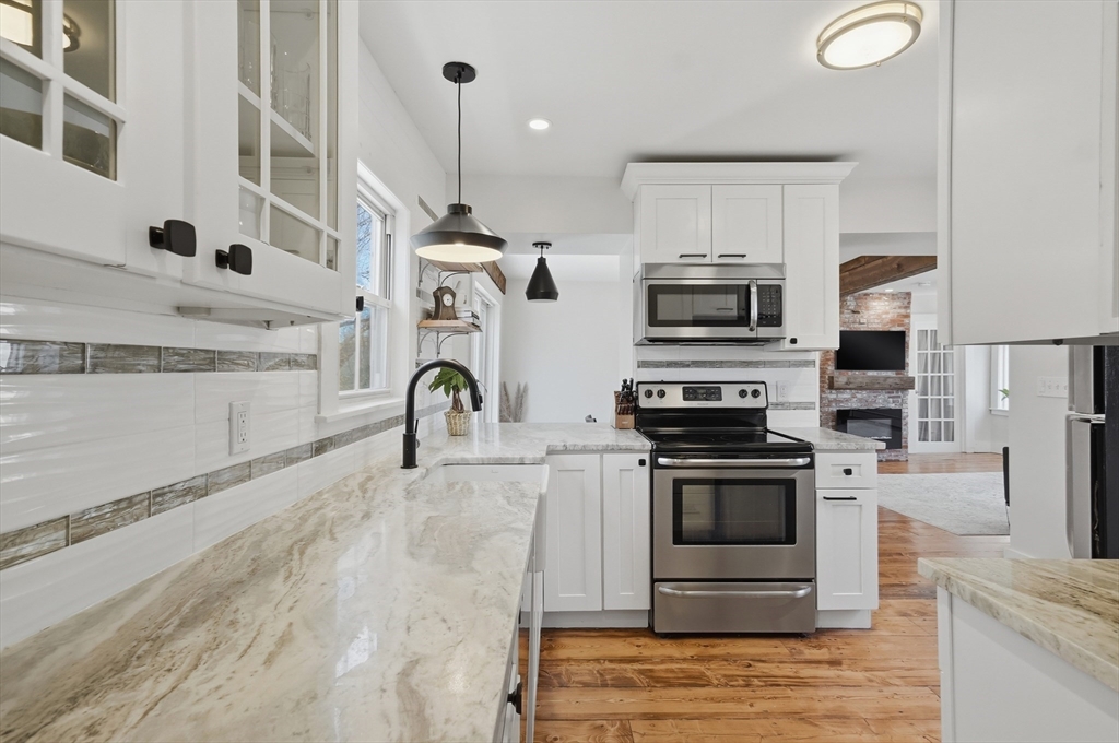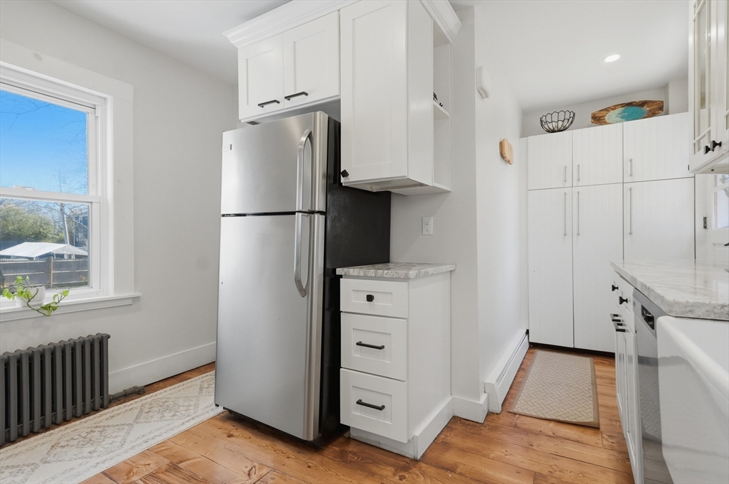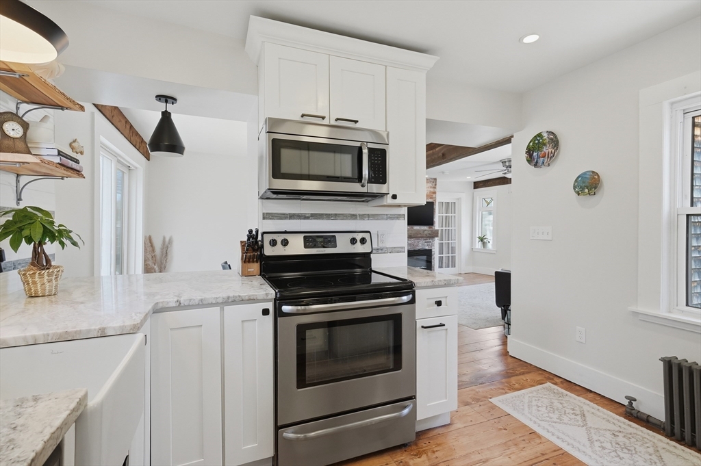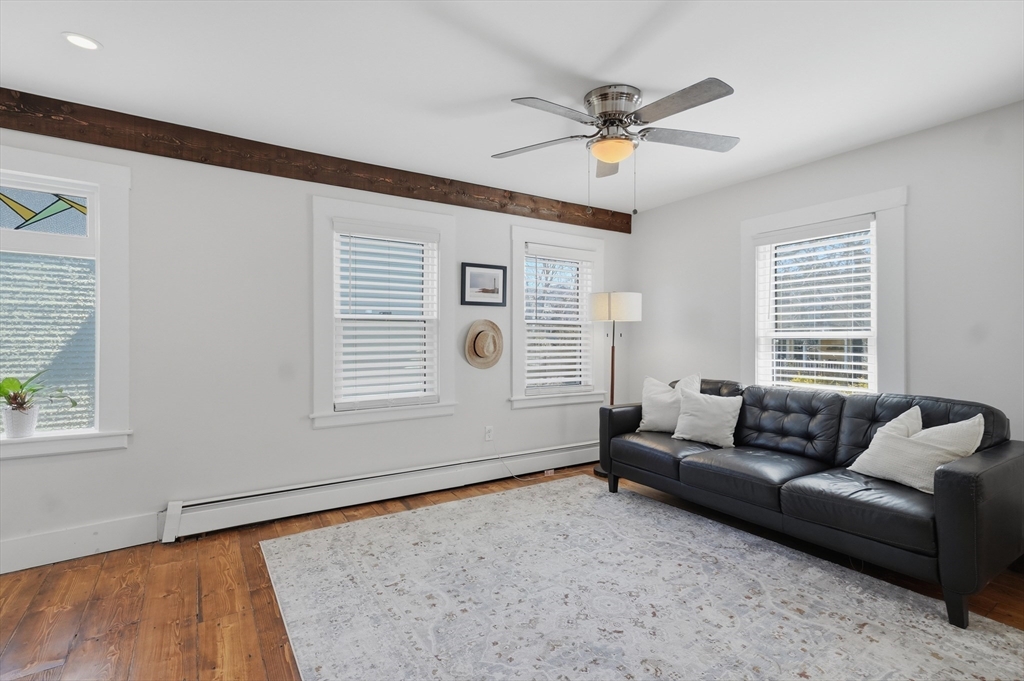 Bright and inviting 2-bedroom condo offering character, updates, and coastal lifestyle appeal in desirable Marblehead. This second-level unit features pine flooring throughout, exposed beam accents, and a comfortable open flow between the living and dining areas with a fireplace creating a welcoming focal point. The kitchen includes stone countertops, stainless appliances, breakfast bar seating, and exterior access to a private deck/balcony. Both bedrooms are well-proportioned with great natural light, and in-unit laundry adds convenience. Recent improvements include refinished and treated flooring (2024), freshly painted walls and trim (2024), new dishwasher, storm door, and window blinds. Enjoy close proximity to Marblehead’s historic downtown, beaches, shops, restaurants, parks, and scenic harbor areas, an excellent opportunity to enjoy North Shore living.