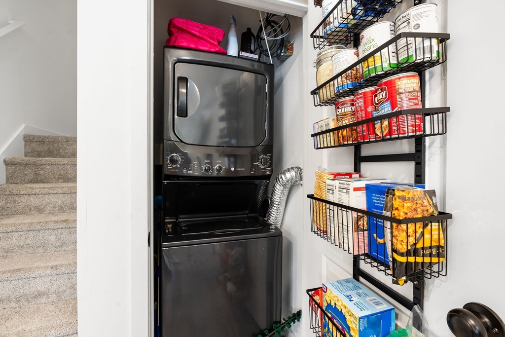 Welcome home to easy living! This charming 2-bedroom, 1.5-bath townhouse condo offers a perfect blend of space, style, and low-maintenance convenience. Step inside to a bright and airy open-concept first floor, ideal for entertaining or relaxing. With high vaulted ceilings, the space feels very open. The flow from the living area to the kitchen and dining space makes everyday living effortless. Just off the living room, enjoy your own private, cozy patio—perfect for coffee or unwinding. On the first floor, you'll also find the in unit laundry room and a convenient half bath. Upstairs, you’ll find a spacious primary bedroom with soaring ceilings, creating a light-filled retreat you’ll love coming home to. A second bedroom offers flexibility for guests, a home office, or additional living space.