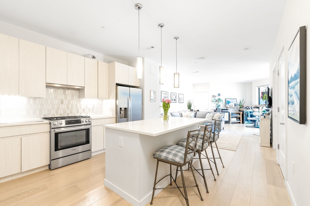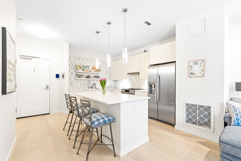 Make South Boston’s premier condo building your new home. This 2BR, 2BA residence at Port 45 offers 1,125 sq ft of open-concept living with a private balcony and deeded garage parking. The home features high-end finishes throughout, including Bosch appliances, in-unit washer and dryer, automatic blinds, hardwood floors, recessed lighting, and floor-to-ceiling windows. Residents enjoy top-tier amenities such as a rooftop terrace with grilling stations, clubroom, fitness center, concierge, pet spa, and bike storage. Ideally located near the MBTA Red Line at Broadway Station and within walking distance to top restaurants, this home offers convenient city living in a prime South Boston location. (Tenants in place until June 30th.)
