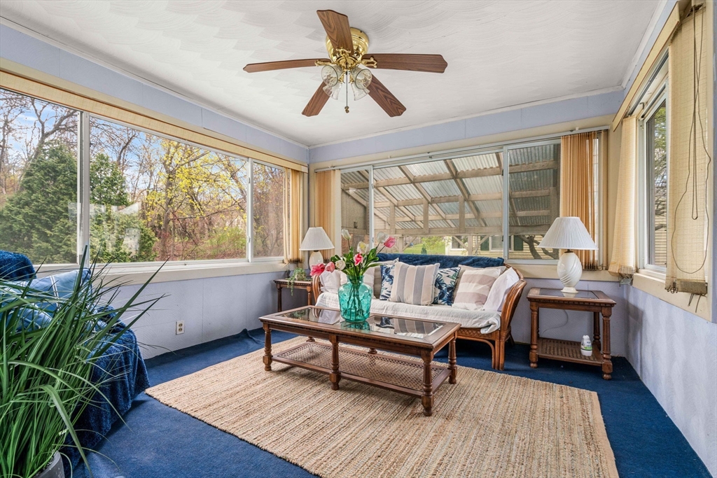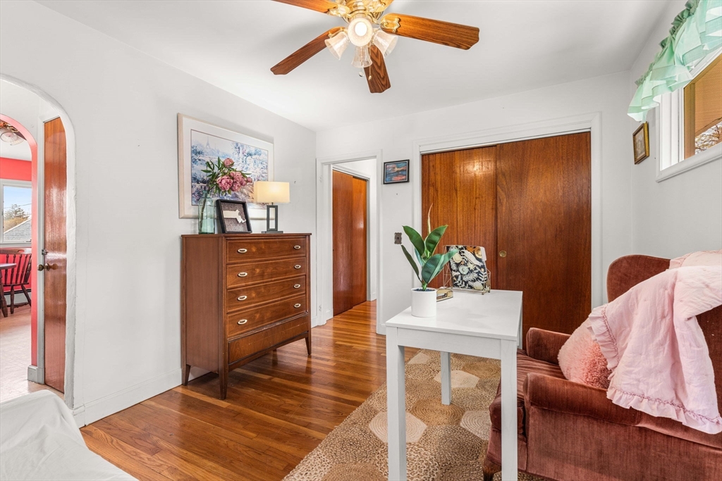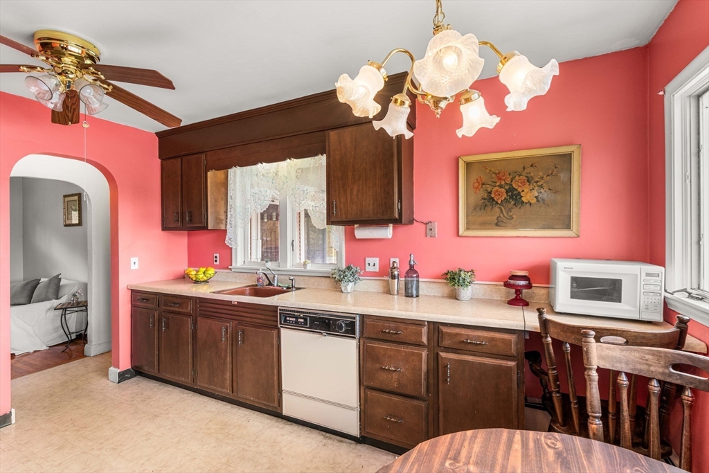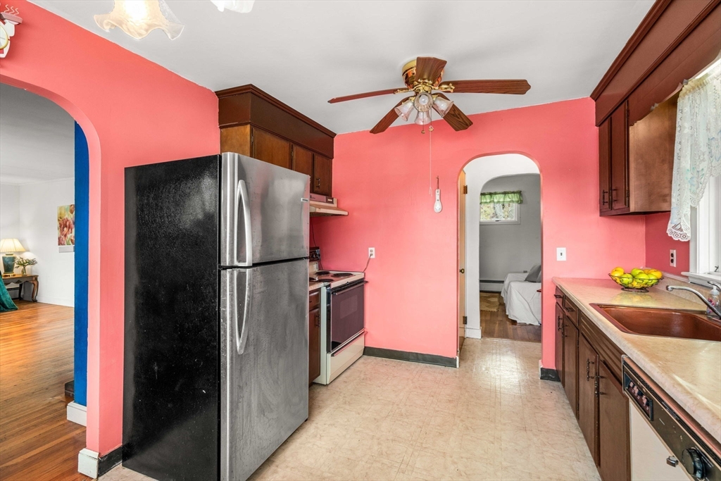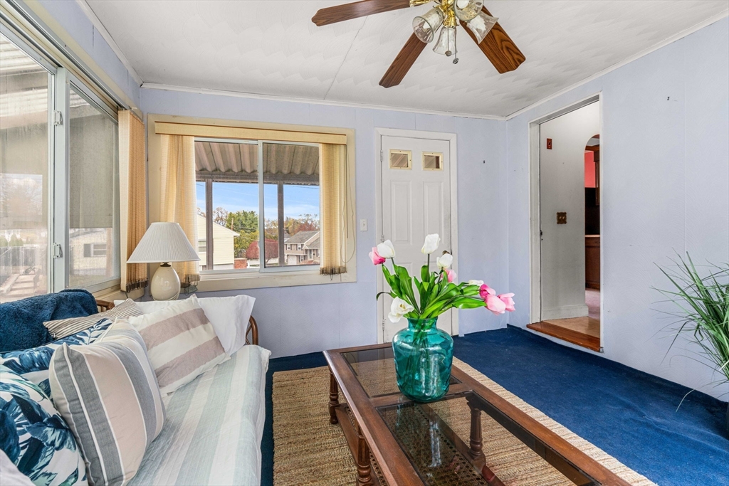 This single-family home offers a rare opportunity to own a Wakefield property brimming with potential. 1 bedroom, 1 full bath, and a home office, that could be used as a second bedroom. The large eat in kitchen, flows into an oversize livingroom with decorative fireplace, wall unit AC and hardwood floors that continue into the primary bedroom with 2 closets and an office space/2nd bedroom. Additional living spaces includes a three season porch. The full basement with knotty pine paneling room and bar area, great potential for family room, and valuable storage and utility space, while the dedicated laundry room, complete with a washer and dryer, enhances everyday convenience. Below the season porch is a basement workshop area separate from the house. Whether you're looking to settle into a tranquil setting or eager to customize your space to your taste, the possibilities here are endless. Don’t miss your chance to make this versatile property your own. Showings begin immediately.