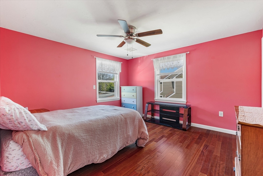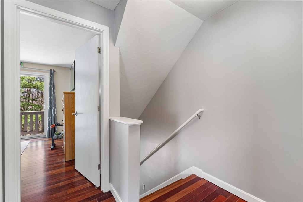 Welcome to Coggshall Crossing! This beautifully updated end-unit townhouse offers comfort, style, and versatility across three levels of living space. The first floor features a bright and inviting layout with a well-appointed kitchen, dining area, and spacious living room with hardwood flooring & fireplace. A convenient half bath with in-unit laundry adds everyday ease. Sliders lead to your own private deck, perfect for relaxing. Upstairs, you’ll find two generously sized bedrooms and a full bath. The third level offers a finished attic space, ideal for a home office, playroom, or additional storage - tailor it to fit your needs! This unit includes two assigned parking spaces along with ample guest parking. With recent updates throughout and an end-unit location providing added privacy, this move-in ready home is one you won’t want to miss!