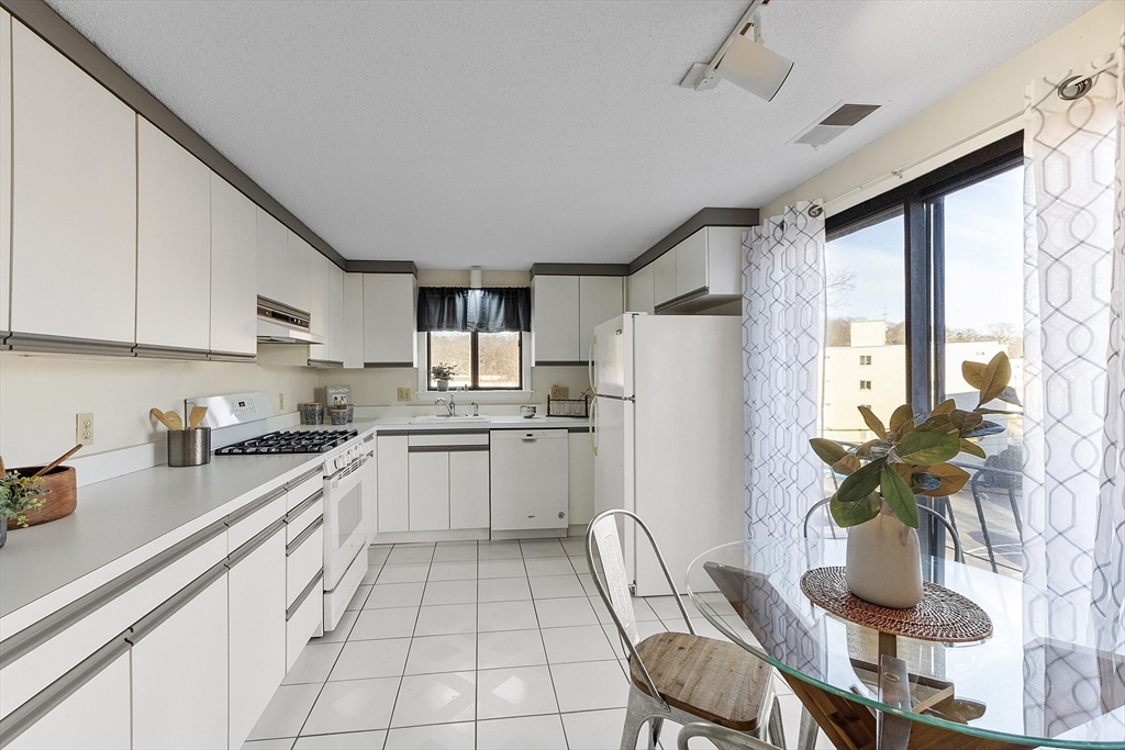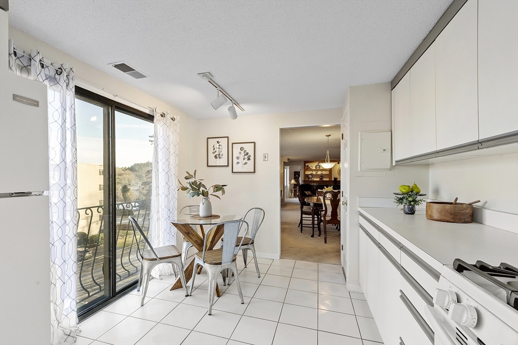 Welcome to this spacious three-bedroom, two-bath penthouse condominium on the Melrose line, offering effortless access to Boston, Route 93, and the commuter rail. The open living and dining area creates a comfortable flow for everyday living, with the dining room opening directly to a private balcony that expands your space and brings in abundant natural light. The eat-in kitchen provides practical function with a clean, simple layout, and the living area is anchored by a cozy wood-burning fireplace. The primary bedroom features a walk-in closet and a private en-suite bath, while the third bedroom offers excellent flexibility for guests, a home office, or a den. Additional highlights include in-unit laundry hookups, central air conditioning, and two off-street parking spaces. Outdoor lovers will appreciate the Middlesex Fells Reservation just across the street—perfect for hiking, exploring, and dog walking.