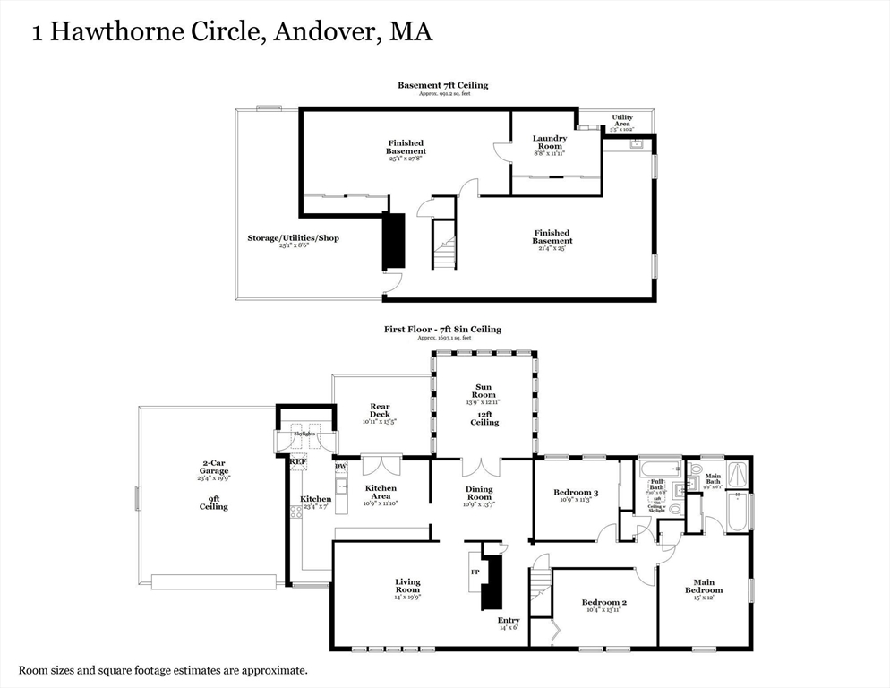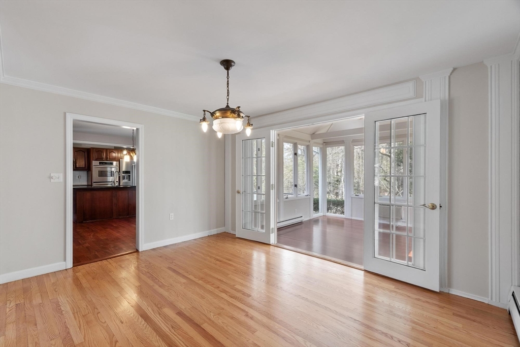Welcome to 1 Hawthorne Circle, a sprawling, well-maintained 3-bedroom, 2-bath ranch offering true one-level living on a beautiful, flat 0.69-acre lot in a small cul-de-sac neighborhood. Sunlight pours through an abundance of windows, highlighting hardwood floors and creating a warm, inviting feel throughout. Enjoy a large living room with fireplace and a bright 4-season sunroom for year-round relaxation. French doors in the dining room and kitchen provide seamless indoor-outdoor flow - ideal for entertaining. The finished lower level offers exceptional bonus space for your lifestyle - gym, work, play - you name it! An attached 2-car garage adds convenience, while the expansive yard, mature landscaping, and charming shed enhance everyday living. Located in highly desirable Andover - with excellent schools and amenities town wide - this home blends comfort & space in a peaceful neighborhood setting. Schedule your showing today!