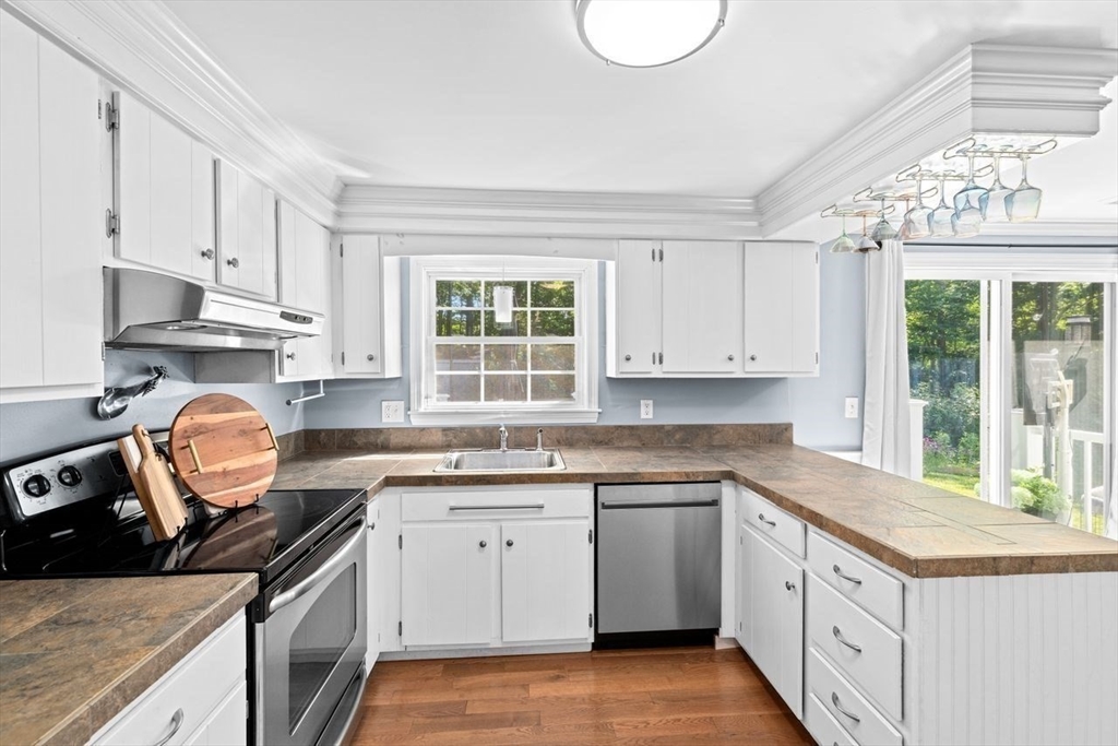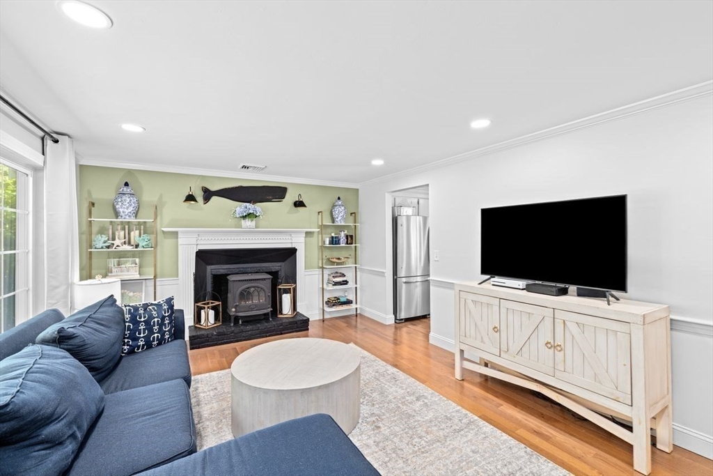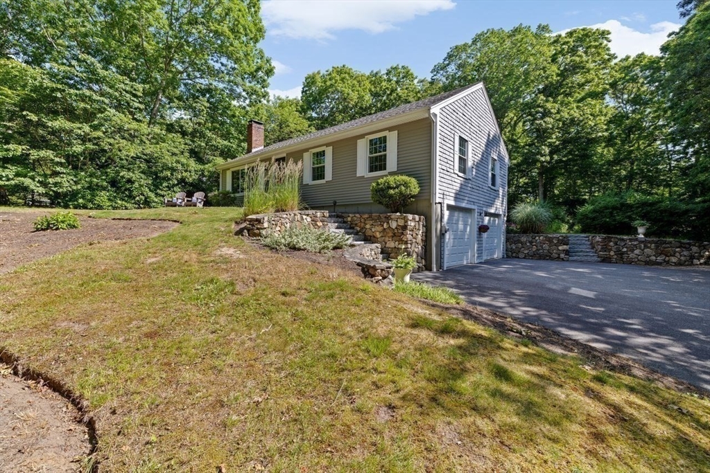 Picture Perfect ! This updated ranch has a lot to offer. Located just south of Route 6A in Galloping Hills close to historic Sandwich Village. The 1/2 acre lot is located on a very private road. New windows and siding in 2024. Central air for those steamy Cape Cod nights. Walking trails will take you to the Thornton Burgess Conservation and Nature Center as well as to the Sandwich High School and Middle School. The main floor offers an open living room with wood burning Stove, dining room, kitchen. A large glass slider leads to an expansive deck & large flat back yard with oversized shed and an amazing outdoor shower with changing room. The spacious , private yard provides great space for entertaining. The primary bedroom has lots of space, built in custom cabinetry and en-suite bath. Two other generous sized bedrooms complete the main level. The lower level is heated and offers approx 500Sq ft. The oversized garage offers incredible storage, generator connection !