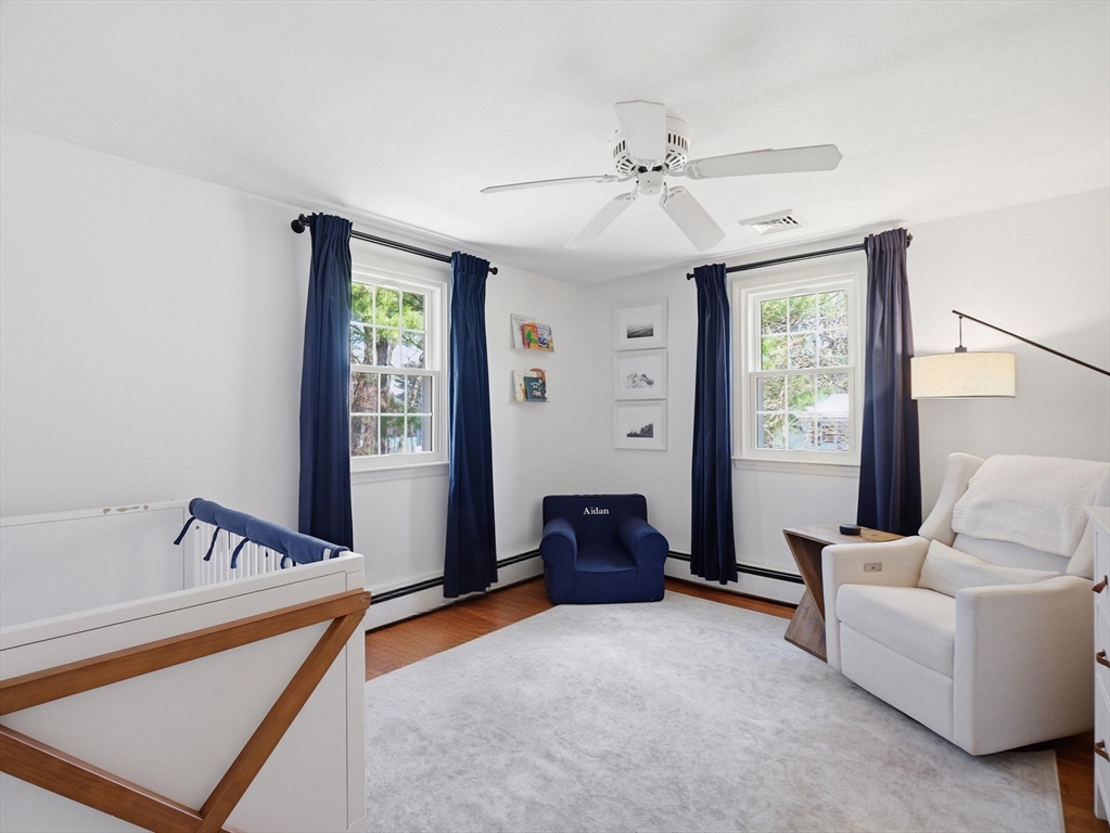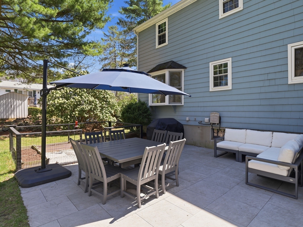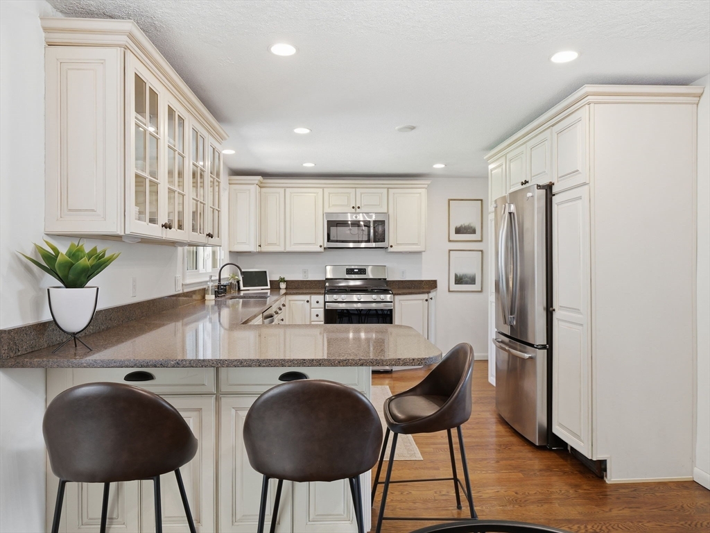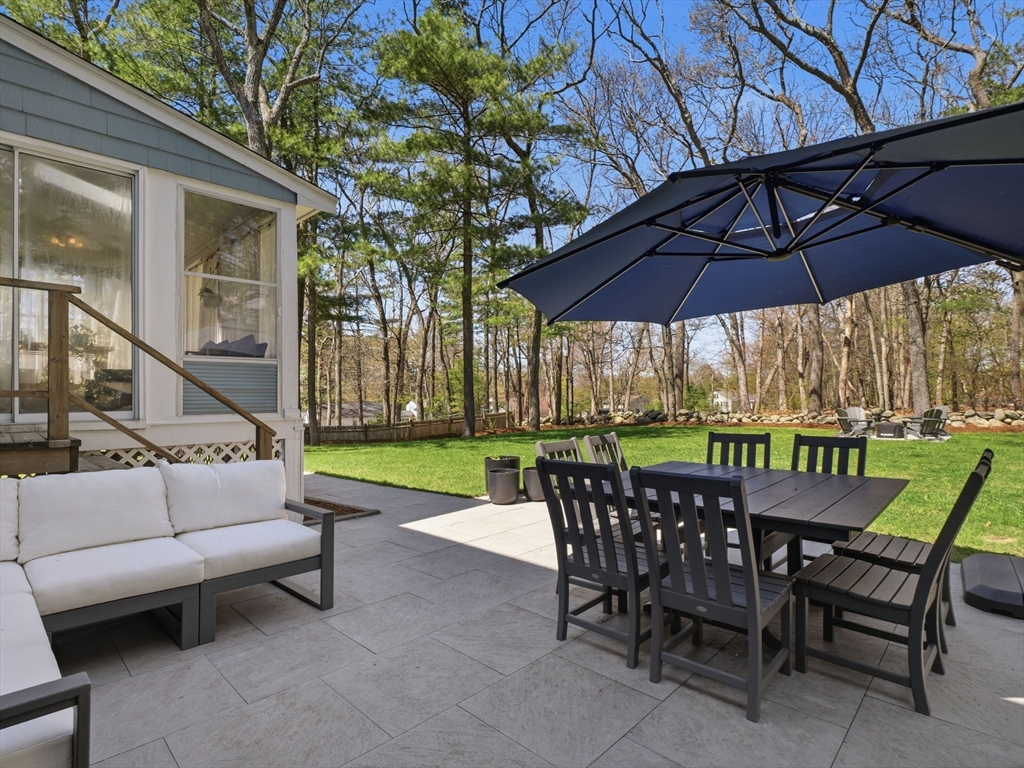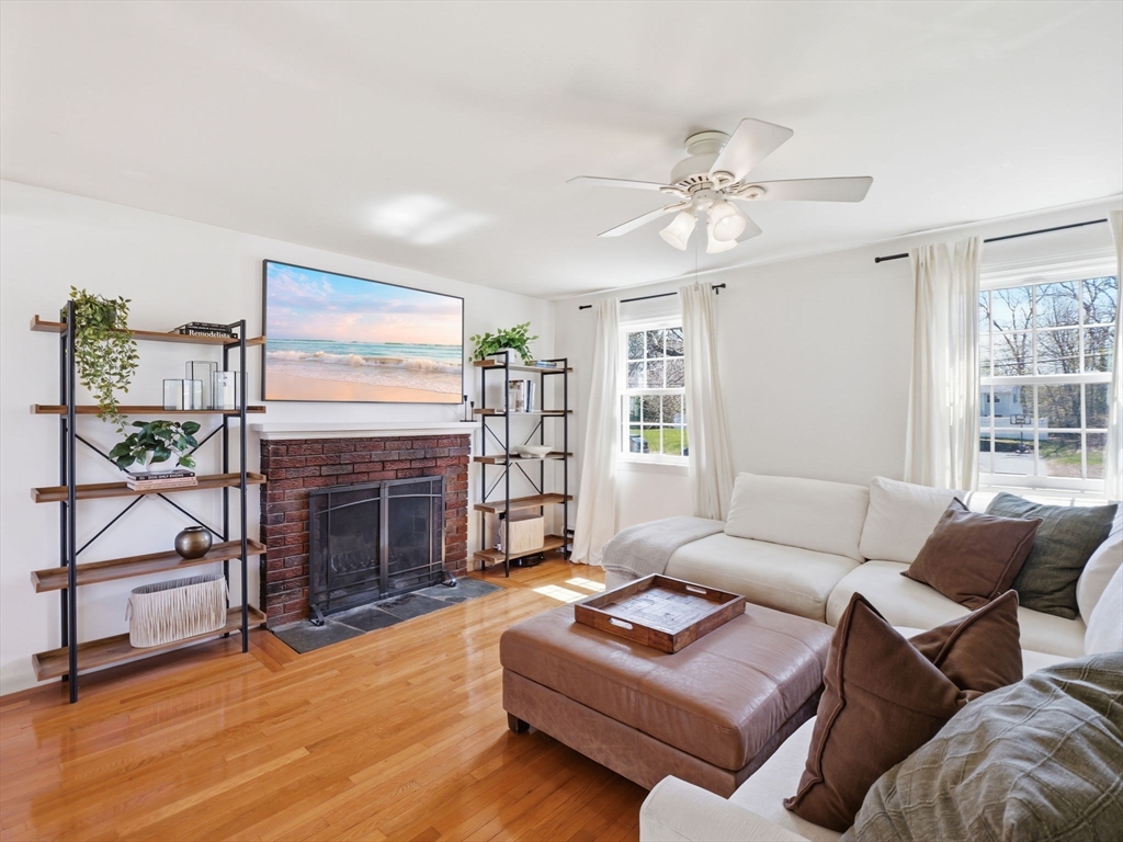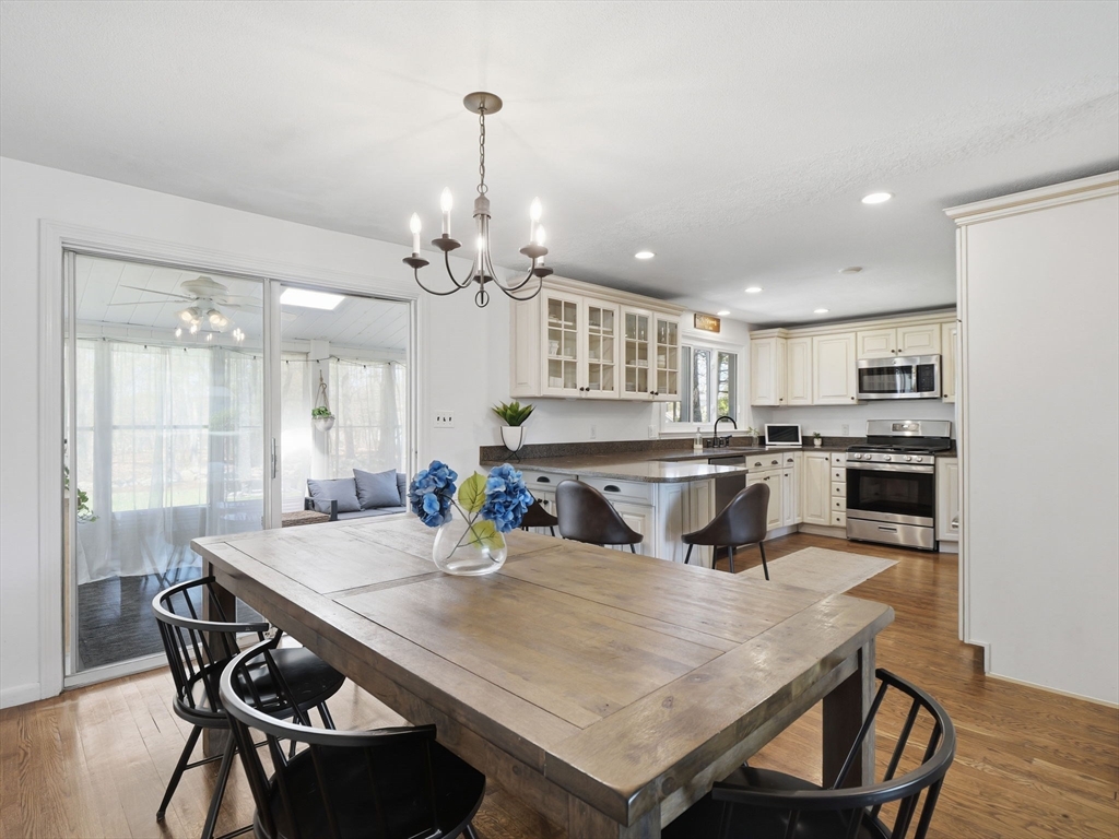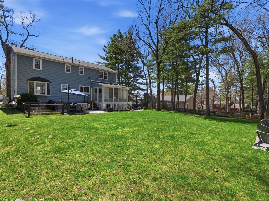 Spacious 4BR/2.5BA Colonial on a private wooded lot in a lovely quiet neighborhood. Hardwood flooring runs throughout and the open kitchen features cream cabinetry, granite counters, and a peninsula with seating that flows into a generous dining room with access to a 3-season porch. Off the entry, a bright living room sits to the left, while to the right a massive front-to-back family room with brick fireplace and bay window that opens to the backyard. A convenient half bath with laundry is tucked between the kitchen and family room. Upstairs, the oversized primary suite impresses with a large walk-in closet and well appointed full bath, plus three additional bedrooms and a second full bath. Outside, a large private patio and level yard back up to a wooded setting that delivers real privacy plus a built-in 2 car garage! Notable updates include a new heat pump A/C system (2025), all-new windows (2023), new insulation (2023), new kitchen appliances (2025), and new water heater (2026)
