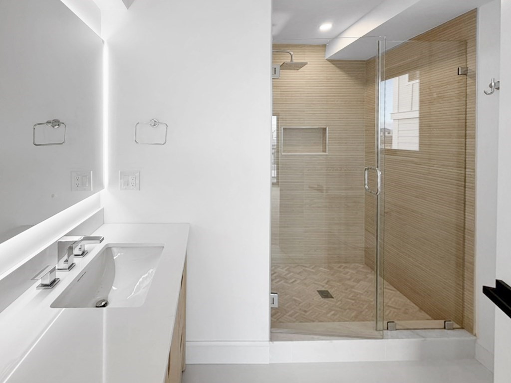Welcome to Saltwater Landing, Salisbury Beach’s newest luxury development, perfectly situated in the vibrant beach center with restaurants, shops, and live entertainment just outside your door. This tri-level condo offers 1,650 sqft of finished living space with 3 bedrooms and 3.5 baths, all designed with top-end finishes and a modern, West Coast-inspired style. The first level features an open-concept kitchen, dining, and living area with a half bath, while the second level offers 2 spacious bedrooms, 2 full baths, plus a laundry area. The third level is dedicated to a private primary suite with a spa-like bath and access to a covered deck with an outdoor fireplace, TV hookups, and stunning views. Private outdoor space is found on every level, totaling an additional 366 square feet of exclusive use, including an expansive roof deck offering 360-degree panoramic views. Parking for 2 cars under, making this the ultimate year-round residence, coastal getaway or investment property.