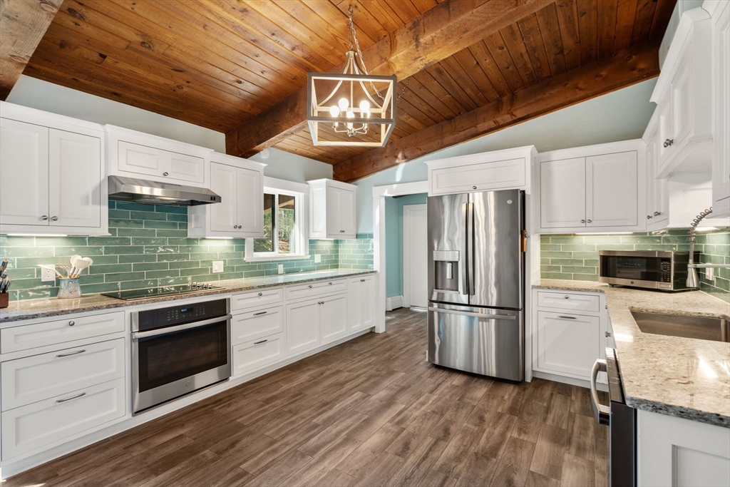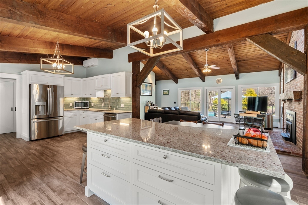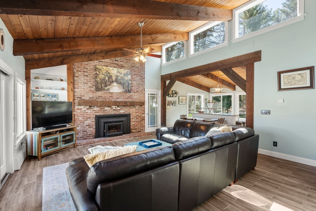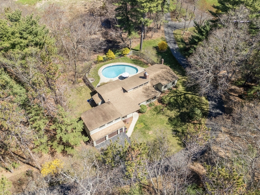 Privately set at the end of a cul-de-sac, this striking contemporary home delivers a level of privacy and setting that’s rarely found. Surrounded by 1.7 acres and backed by expansive conservation land with tons of nearby trails, the property feels like a true escape. Inside, 4 bedrooms and 2.5 baths are paired with an open, dramatic layout featuring vaulted ceilings, exposed beams, and a floor-to-ceiling brick fireplace. Brand new Pella windows fill the home with natural light, enhancing the connection to the surrounding landscape. A dedicated family room offers flexible space for a playroom, study, or second living area, with seamless access to the outdoors. The custom kitchen and high-end finishes throughout elevate the home, with a long list of updates and upgrades beyond what can be captured here. The backyard is built to impress, with an in-ground pool, patio, and a private wooded backdrop. A rare opportunity to own a home where setting, design, and lifestyle come together.