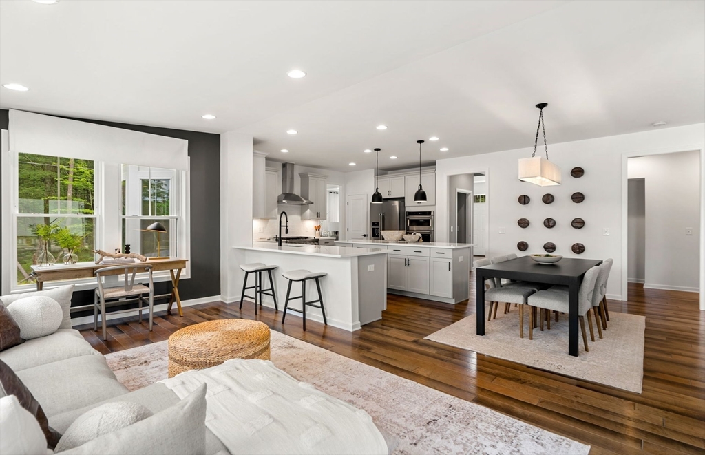 Introducing the Wellington at Wheelock Farm in Norton—an exceptional new construction residence set on a private 2-acre homesite, gracefully bordered by conservation land. A striking blend of modern design and natural beauty, this home features an EV-ready two-car garage and serene wooded views. Inside, thoughtfully designed living spaces include an elegant family room, refined living room, formal dining area, sunlit café, and a private library—ideal for both everyday living and sophisticated entertaining. Upstairs, the luxurious Owner’s Suite offers a peaceful retreat, complemented by three spacious bedrooms and a conveniently located laundry room. A finished lower level provides additional living space, while the sunroom invites the outdoors in, completing this elevated and tranquil lifestyle.