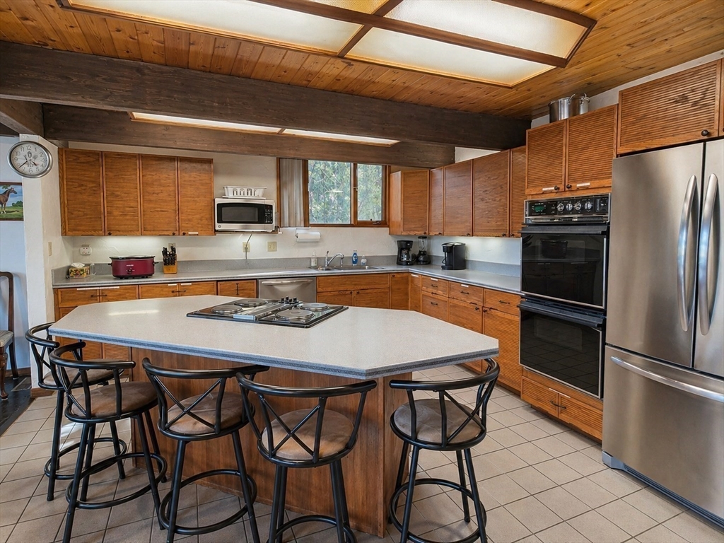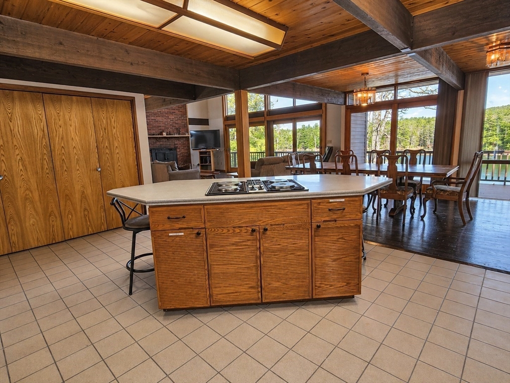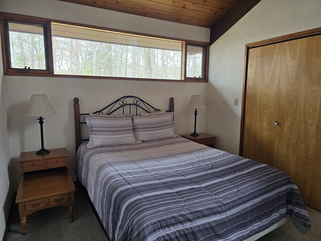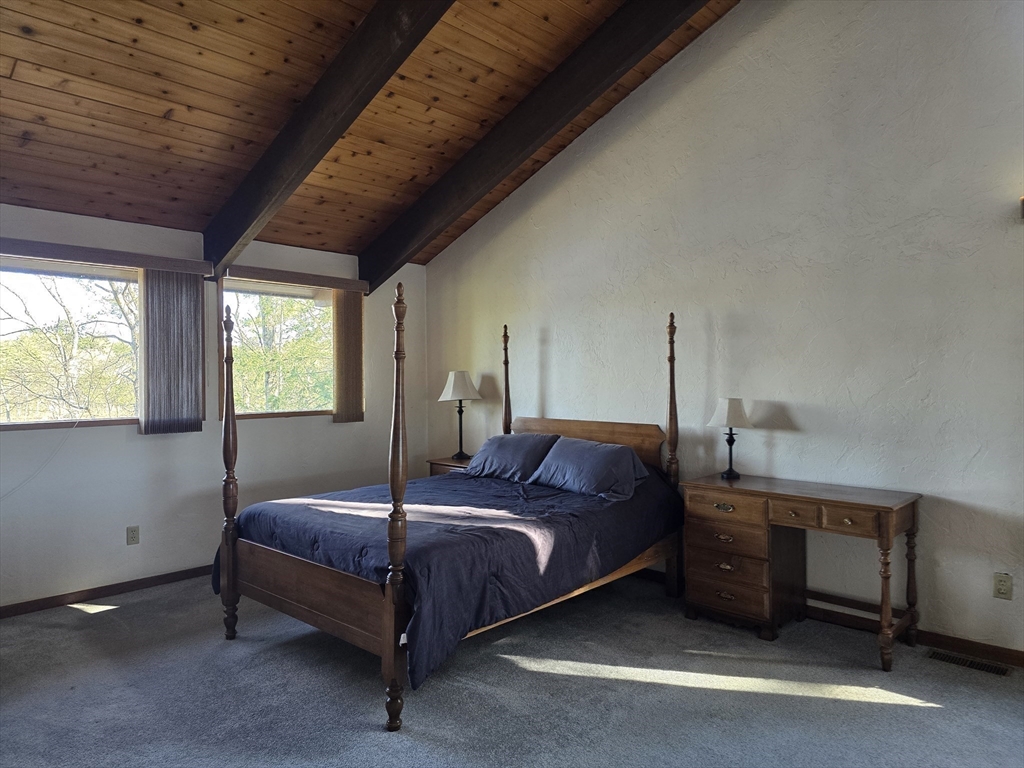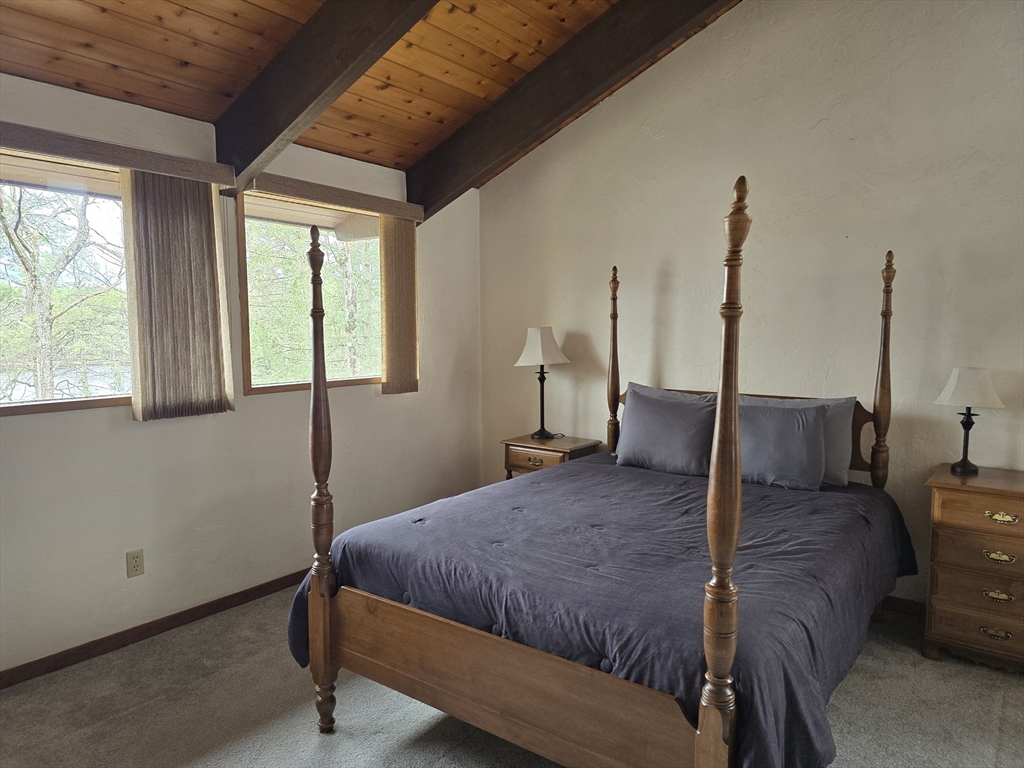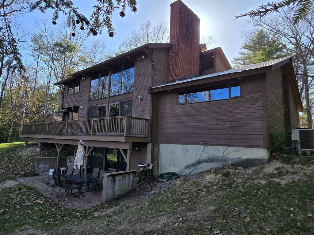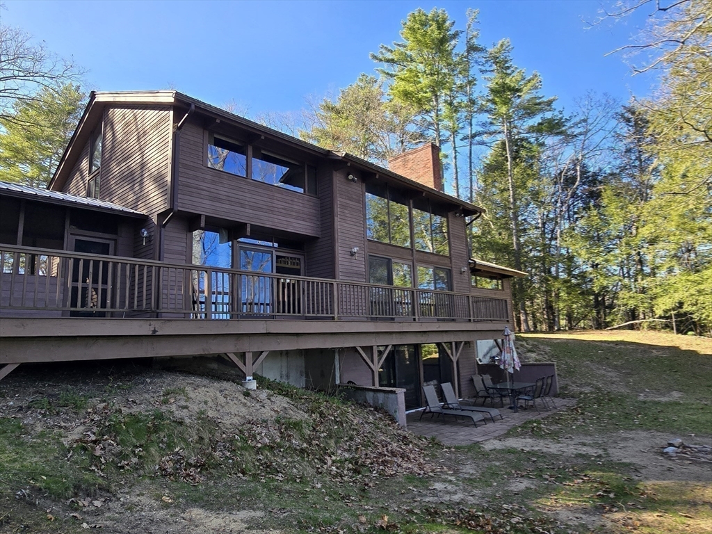 Waterfront living meets architectural design on Lake Rohunta. This contemporary Acorn Deck Home showcases signature post & beam construction, soaring ceilings, and walls of glass that bring the outdoors in. Set on just over an acre with direct lake access, this 3+ bedroom, 3 bath home offers over 3,500 sq ft of living space designed for both everyday living and entertaining. The open concept main level features a dramatic living room with fireplace, expansive dining area, and a spacious kitchen with center island. Multiple decks overlook the water, creating seamless indoor-outdoor flow. The layout offers flexibility with finished lower level space, ideal for guests, recreation, or work from home. Additional features include 2-car garage, paved driveway, and association beach access just steps away. A rare opportunity to own a true Deck House in a peaceful lake setting while still being close to local amenities and Route 2 access