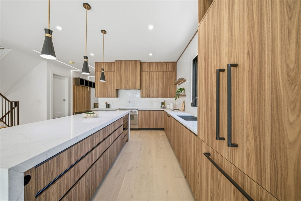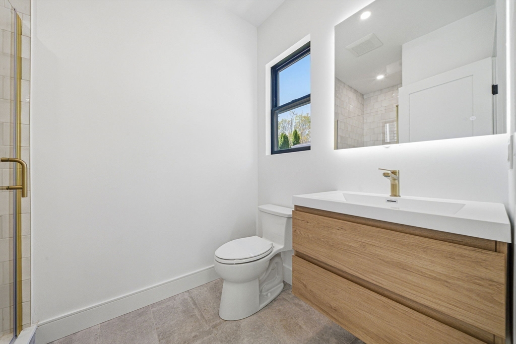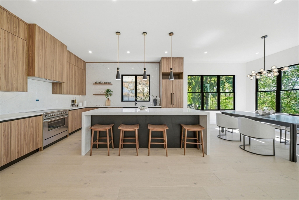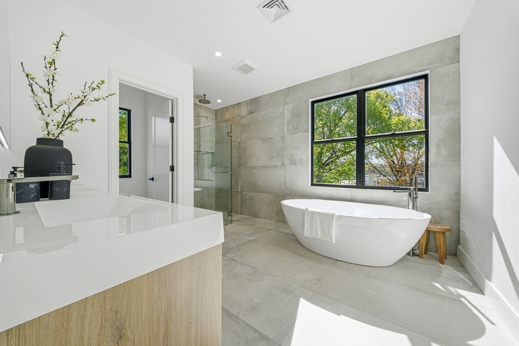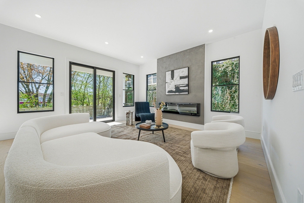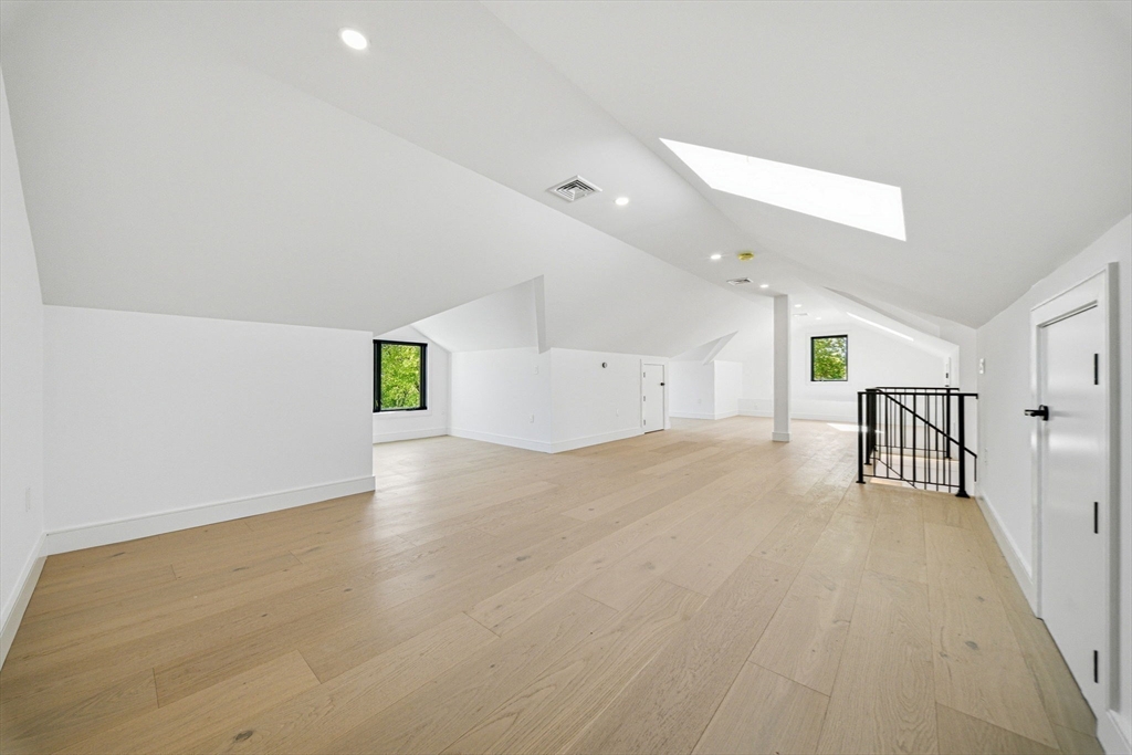 New construction in desirable Newton Upper Falls, offering 5 bedrooms, 5 full baths, and 1 half bath, across approximately 4,950 sq ft of thoughtfully designed living space. This exceptional home features 3 finished levels plus a fully finished lower level. The main level offers soaring 10-foot ceilings, expansive sun-filled living and dining areas, and an open layout ideal for modern living. The designer kitchen flows seamlessly into spacious family areas and outdoor access. Upper levels include generously sized bedrooms, multiple private baths, and flexible living spaces. Attached garage parking adds convenience. Ideally located near Needham Street shopping, dining, major commuter routes, public transportation, and scenic backyard walking trails—a rare opportunity for sophisticated new construction in Newton.