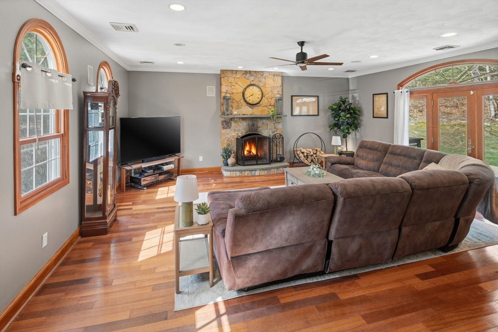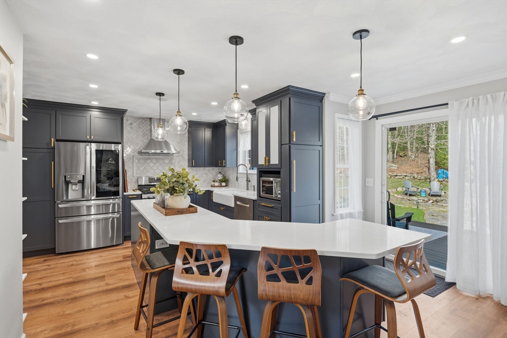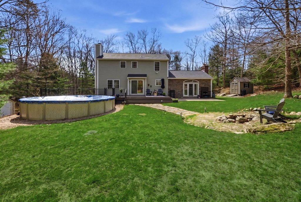 The one you’ve been waiting for - a meticulously curated 3bed, 2.5bath Colonial on 4 acres in coveted West Greenwich. This exceptional home blends refined design, modern comfort & peaceful country living with high-end custom kitchen featuring quartz counters, Carrara marble tile & updated appliances, fresh paint & crown molding, new flooring & beautifully refreshed baths, including a private primary en-suite. The elegant first floor offers a den, office/flex space & stunning great room with hardwoods showcasing a real stone fireplace & access to the stone patio/yard. Outside, enjoy an expanded Trex deck, pool with new liner, multiple large outbuildings & tranquil wooded privacy. More updates include new roof, young boiler, water filtration system & generator hookup for peace of mind. With a walk-out basement ready for expansion & location minutes to I-95, parks, recreation, shopping, beaches, TF Green & Providence, this is serene, convenient living with a touch of luxury at its finest
