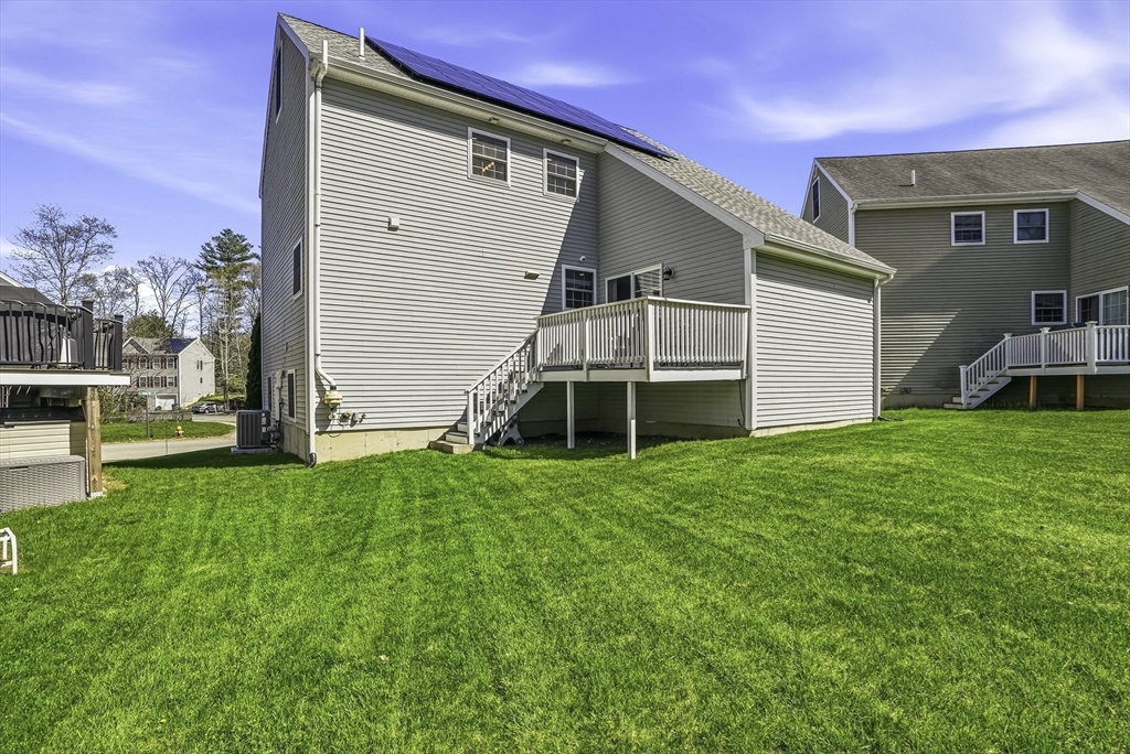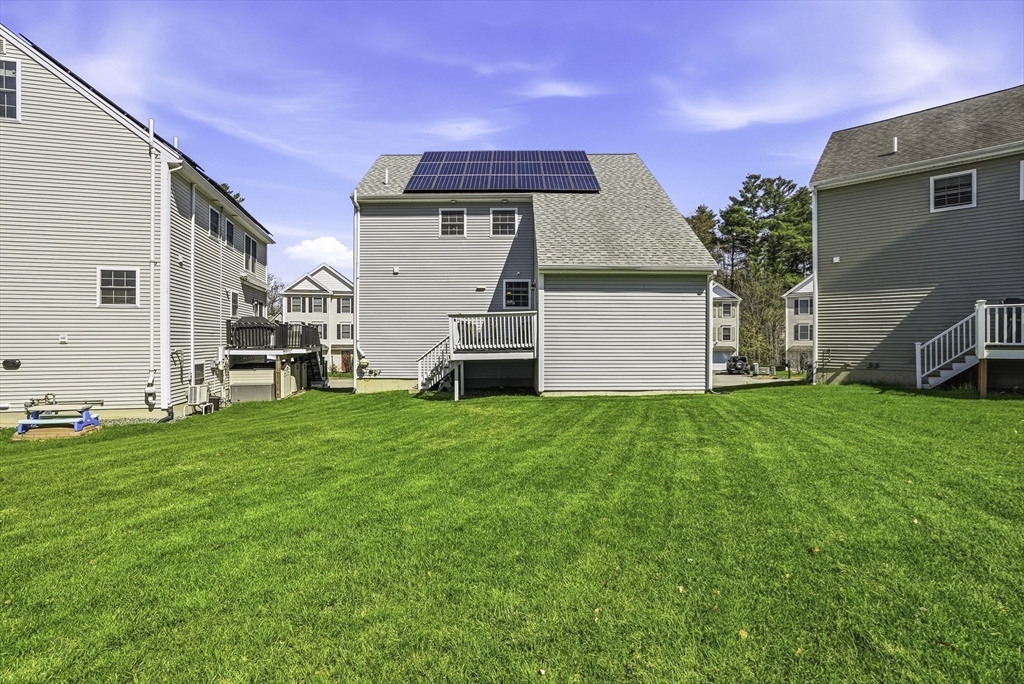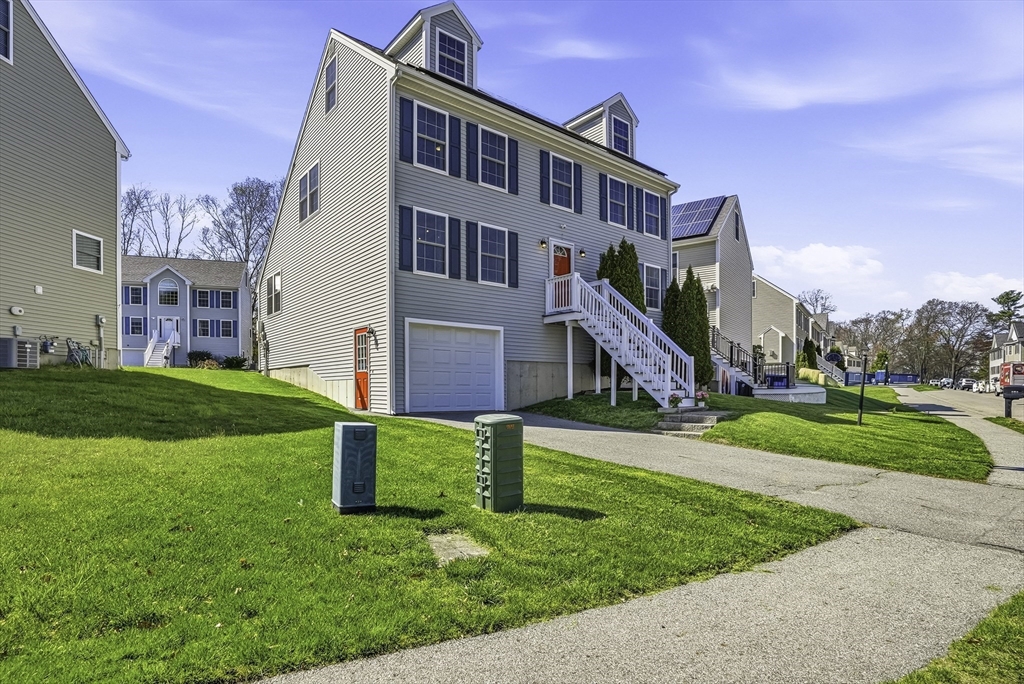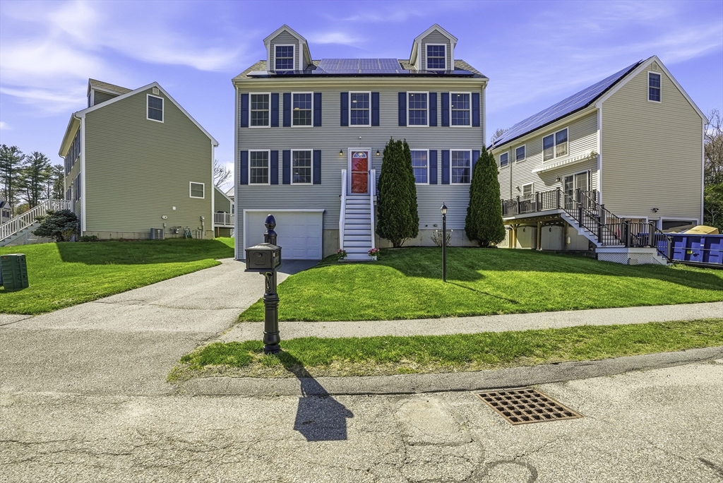 Welcome home to 41 Nile Street! This beautiful single family style detached townhouse is located just over the Burlington town line in sought after Village at Pinehurst. Situated in a private setting with deeded yard~This bright and airy 3 bedroom 2.5 bath home has a large 2 car tandem garage~ The first floor offers an open floor plan with a spacious kitchen with peninsula, stainless steel appliances, granite counters, a breakfast area and pantry~Off the kitchen is a half bath with laundry and a family room leading to the deck~The second floor offers a primary suite with walk in closet and private bath, two additional bedrooms and full bath~The finished basement is used as an office and bonus room~The walk up to a spacious attic space offers room to grow~This home has many recent upgrades such as high efficiency heat and air conditioning 2023, Super low cost of electricity with the solar panels~interior painted very recently.$3000 Credit to buyers for carpet replacement.