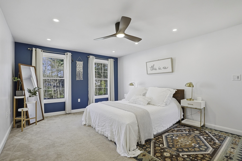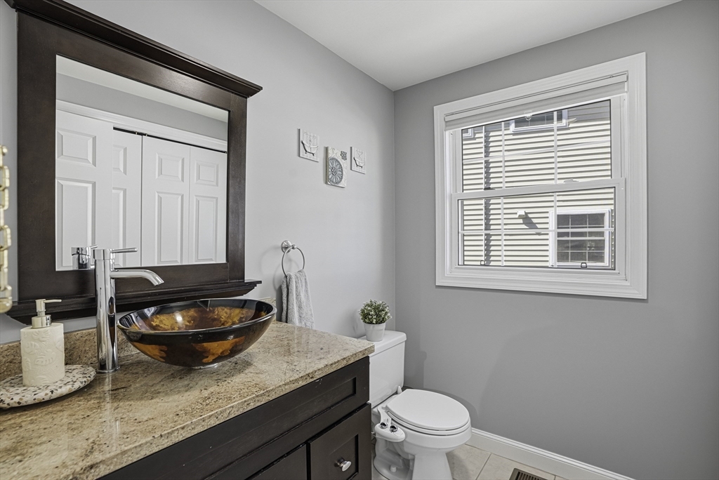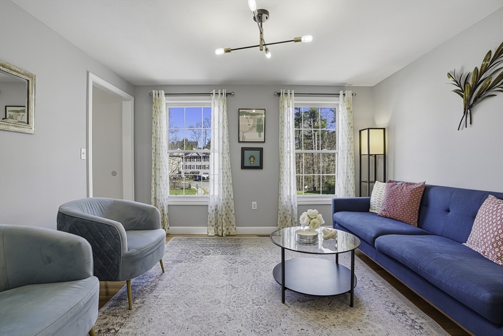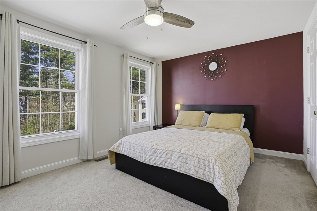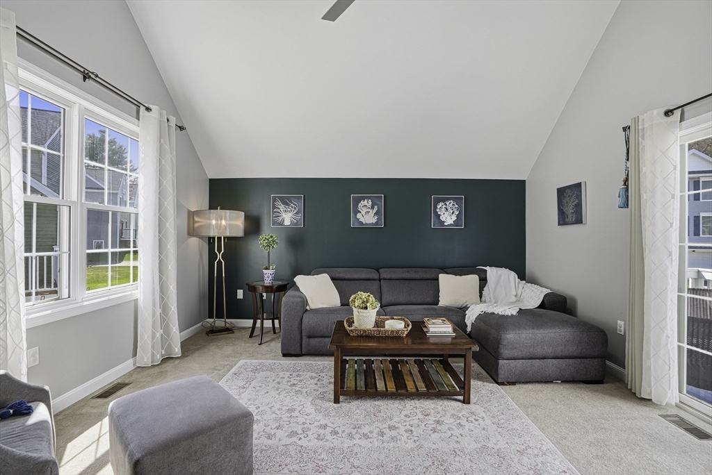 Welcome home to 41 Nile Street! This beautiful single family style detached townhouse is located just over the Burlington town line in sought after Village at Pinehurst. Situated in a private setting with deeded yard~This bright and airy 3 bedroom 2.5 bath home has a large 2 car tandem garage~ The first floor offers an open floor plan with a spacious kitchen with peninsula, stainless steel appliances, granite counters, a breakfast area and pantry~Off the kitchen is a half bath with laundry and a family room leading to the deck~The second floor offers a primary suite with walk in closet and private bath, two additional bedrooms and full bath~The finished basement is used as an office and bonus room~The walk up to a spacious attic space offers room to grow~This home has many recent upgrades such as high efficiency heat and air conditioning 2023, Super low cost of electricity with the solar panels~interior painted very recently.$3000 Credit to buyers for carpet replacement.