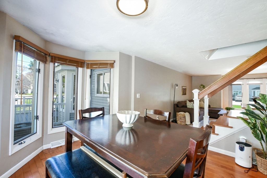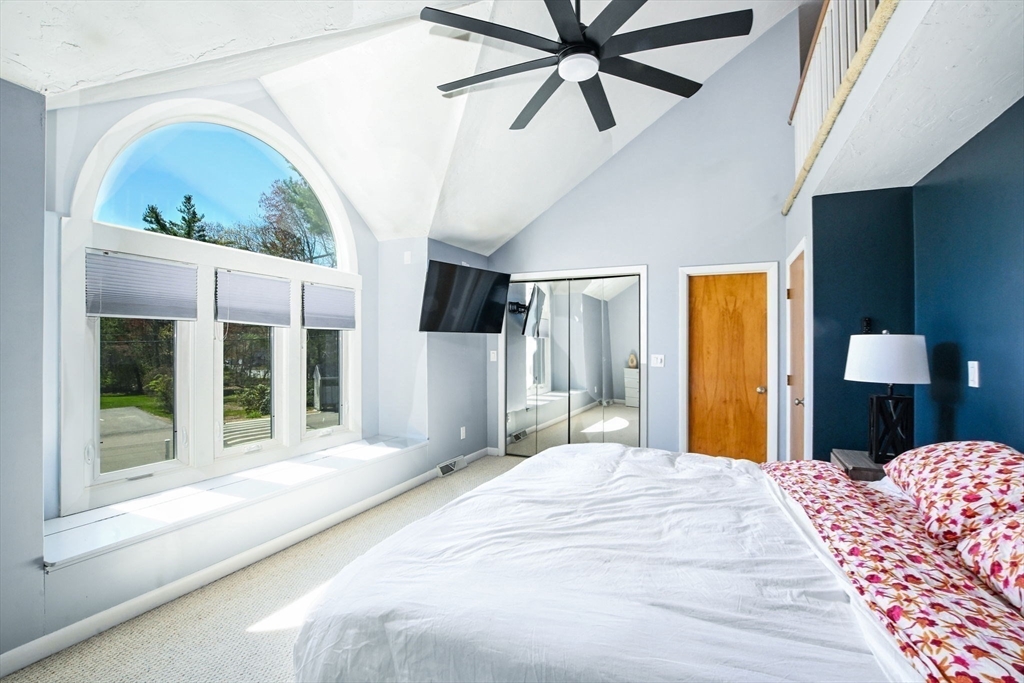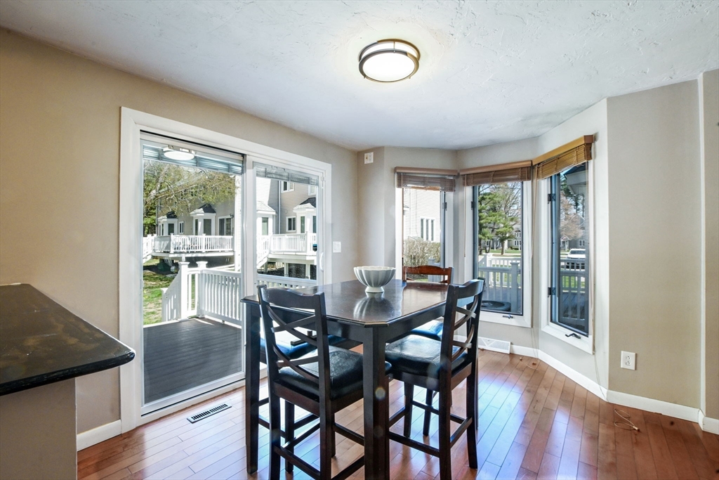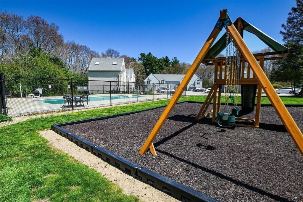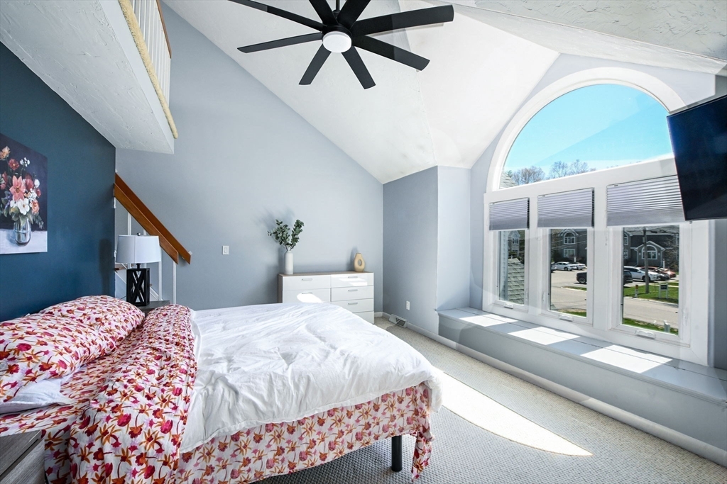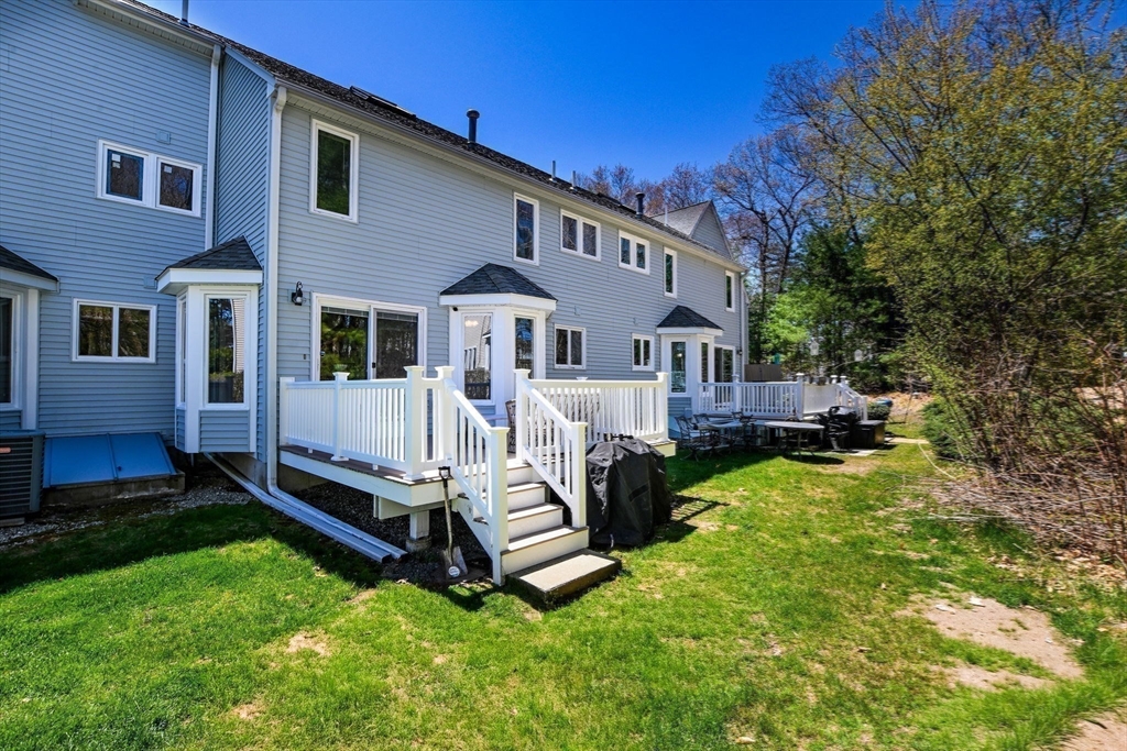 Welcome to desirable Pilgrim Village. Located close to highway access, shopping, restaurants and the new T station for easy commuting, this beautifully maintained unit is filled with natural light, high ceilings and spacious rooms! Featuring newer windows, bulkhead, deck, and roof there is nothing to do but move in and make it home. On the main level you will find a spacious living and dining area and a beautiful kitchen with newer appliances and stone countertops as well as a half bath and first floor laundry. The large deck and peaceful backyard is perfect for grilling, entertaining and relaxing. The primary ensuite is extremely spacious with a large arched window, double closets, and a vaulted ceiling and full bathroom. It also includes a spacious loft for additional living space. The second bedroom is very spacious and also offers its own full bathroom.The complex is very well maintained and offers 2 off street parking spots, an in ground pool, and playground and pets are allowed!
