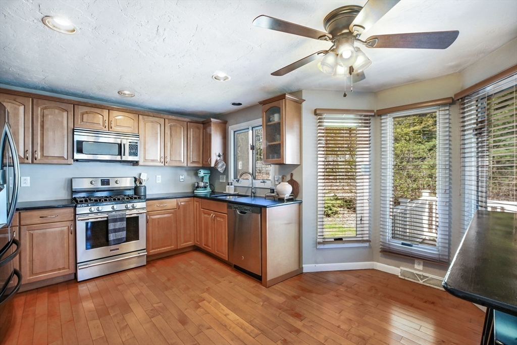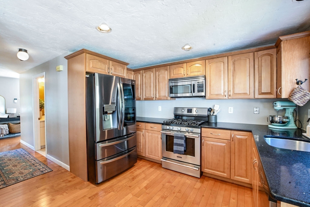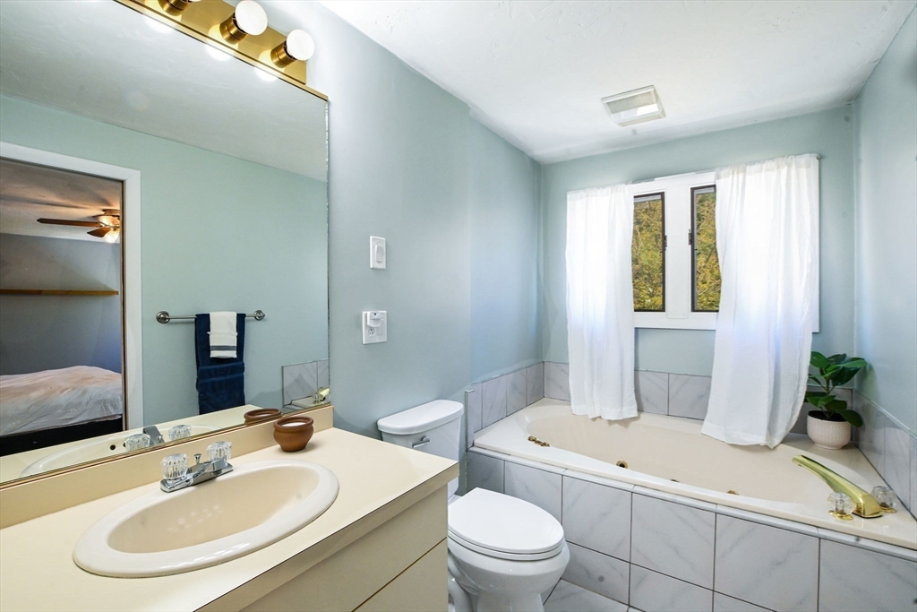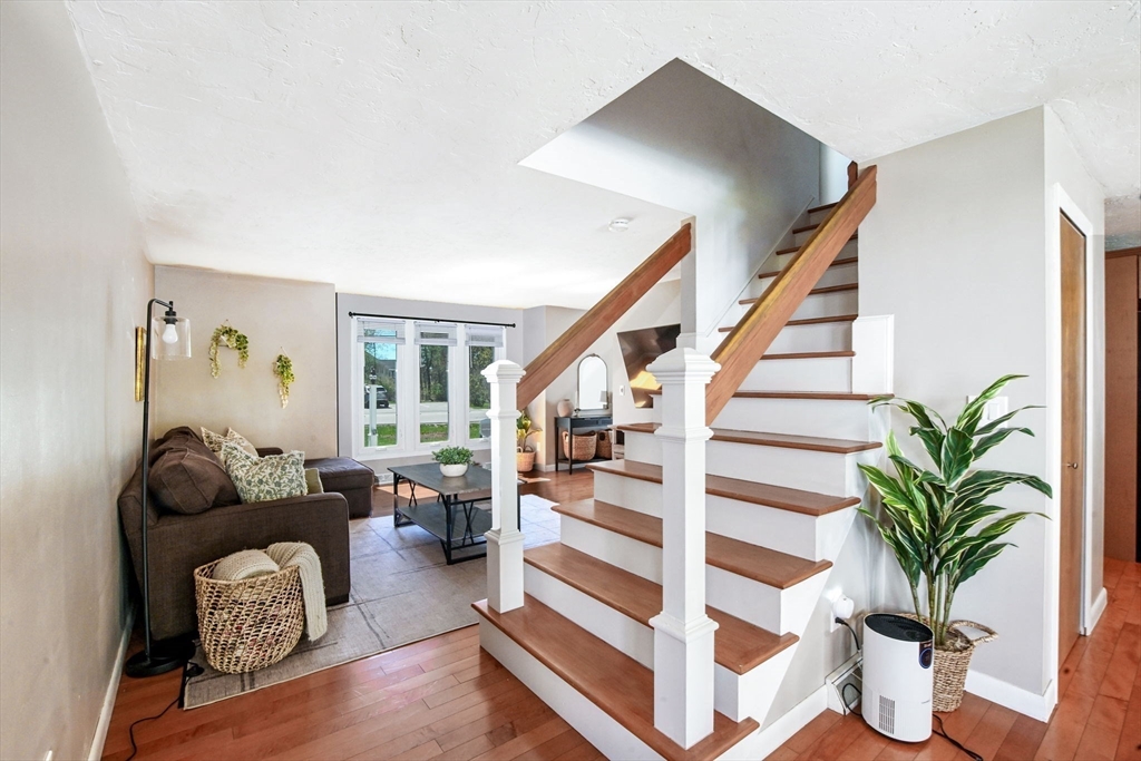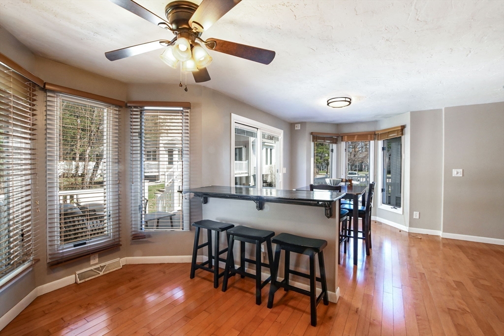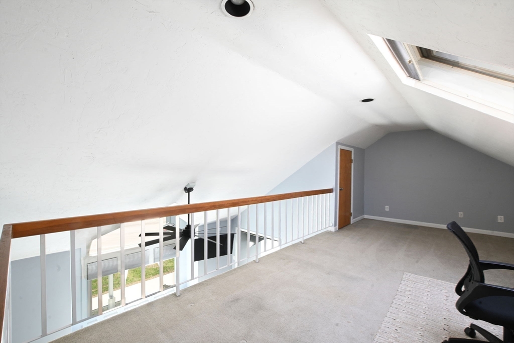 Welcome to desirable Pilgrim Village. Located close to highway access, shopping, restaurants and the new T station for easy commuting, this beautifully maintained unit is filled with natural light, high ceilings and spacious rooms! Featuring newer windows, bulkhead, deck, and roof there is nothing to do but move in and make it home. On the main level you will find a spacious living and dining area and a beautiful kitchen with newer appliances and stone countertops as well as a half bath and first floor laundry. The large deck and peaceful backyard is perfect for grilling, entertaining and relaxing. The primary ensuite is extremely spacious with a large arched window, double closets, and a vaulted ceiling and full bathroom. It also includes a spacious loft for additional living space. The second bedroom is very spacious and also offers its own full bathroom.The complex is very well maintained and offers 2 off street parking spots, an in ground pool, and playground and pets are allowed!
