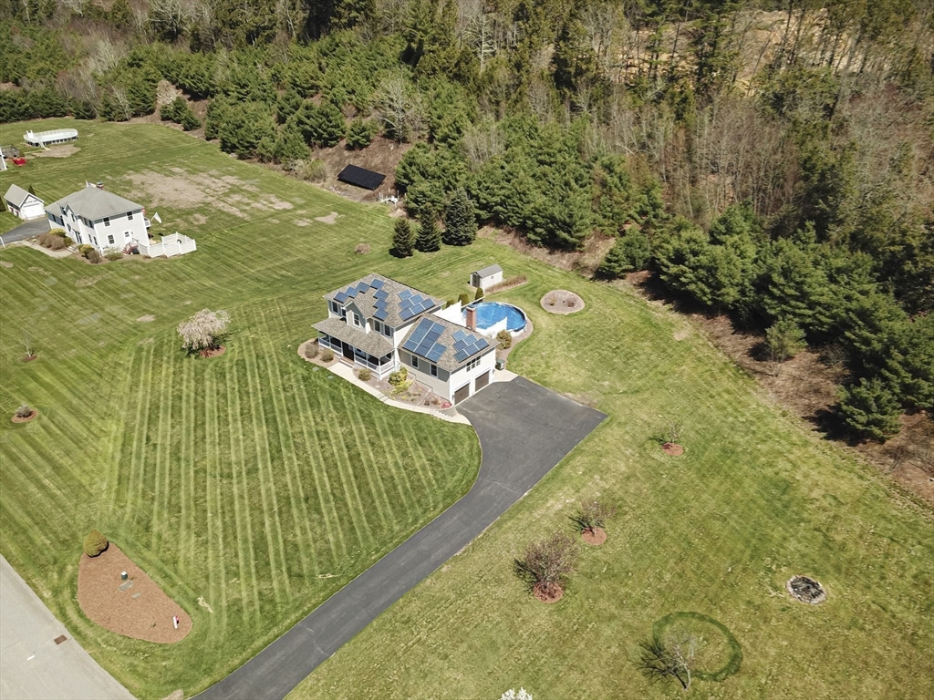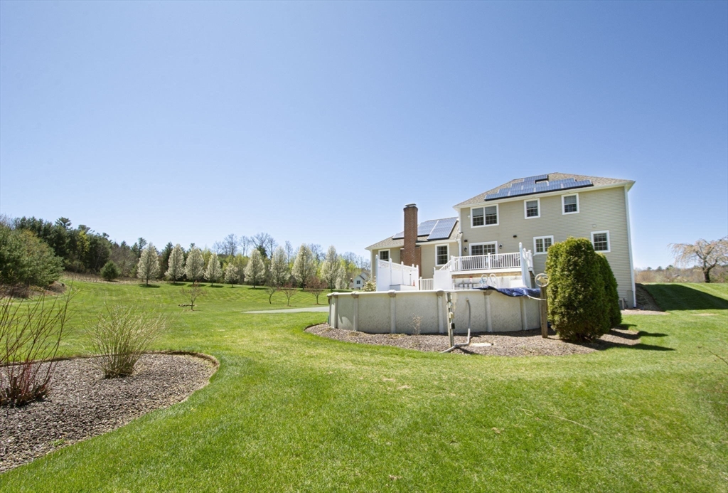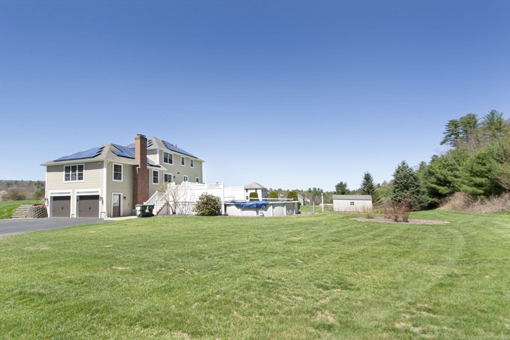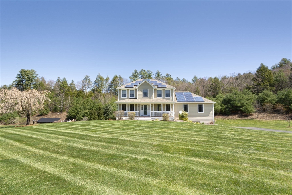 Welcome to this beautifully maintained 2,300 square-foot Colonial, built in 2003 and nestled on nearly 4 private acres in the highly desirable Longview Estates in Oakham. This inviting home features a classic farmer’s porch, perfect for relaxing and enjoying the peaceful surroundings. Inside, you’ll find a spacious layout highlighted by a large family room ideal for gatherings and everyday living. The home offers generous natural light, comfortable living spaces, and thoughtful design throughout. Step outside to your own private retreat, complete with a deck overlooking the backyard and an above-ground pool—perfect for summer entertaining or quiet evenings at home. The expansive lot provides both privacy and room to enjoy the outdoors. Additional features include a two-car garage and a prime location within a sought-after neighborhood known for its scenic beauty and tranquility. This is a rare opportunity to enjoy space, comfort, and community all in one exceptional property.