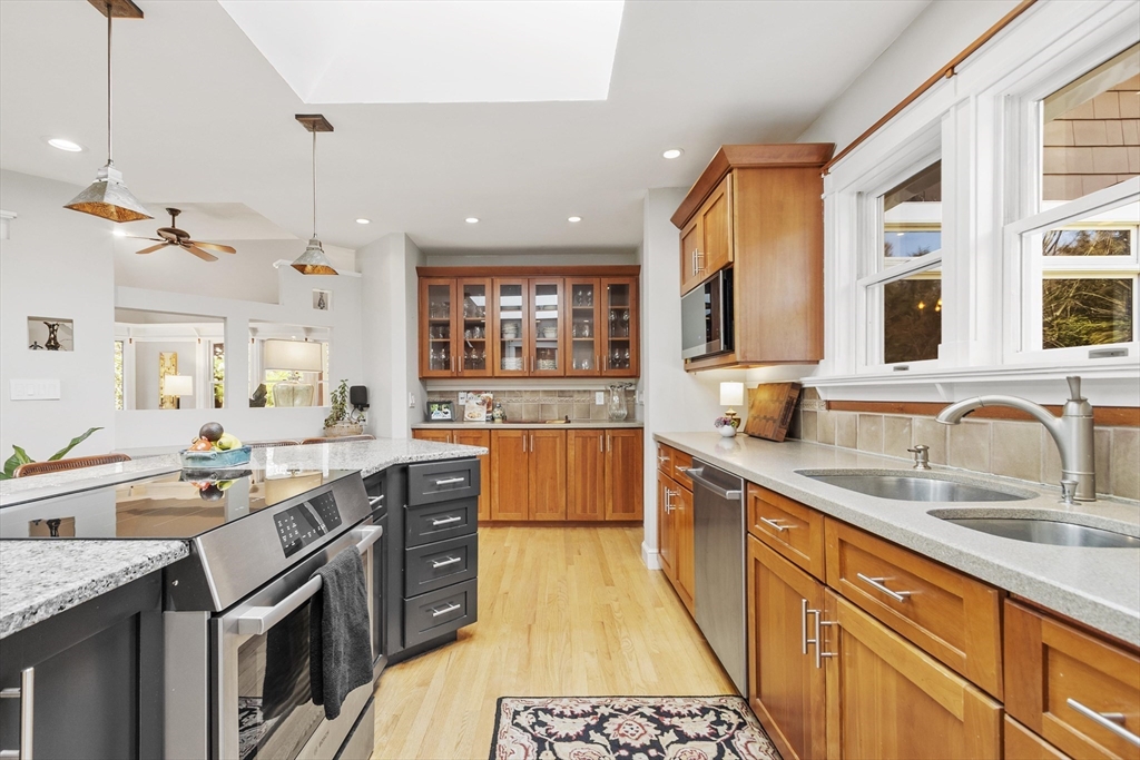 Renovated Conantum Arts & Crafts Oasis — Updated Systems, Salt Water Pool & Finished LL! In the sought after Conantum neighborhood, this Arts & Crafts residence artfully combines period character with contemporary convenience, including comprehensive system updates - a brand-new roof, HVAC system, furnace, & 2 driveways. Bright, open floor plan centers on a sunny eat-in chef’s kitchen w/ upgraded appliances & center island. Additionally on the 1st floor; family room, cozy living room & dining room with backyard views. The screen porch flows to a deck & yard complete w/ heated pool & hot tub. Lush landscaping offers two private patios. 2nd floor secluded primary suite w/ fireplace, walk in closets & full bath. 3 main level bedrooms - flexible floor plan. A finished playroom in the walk out LL w/ office/guest & full bath. Hop on the river from the neighborhood launch or garden at the community fields. Award winning Concord Public schools, 2 town centers ,close to major routes & the rail!