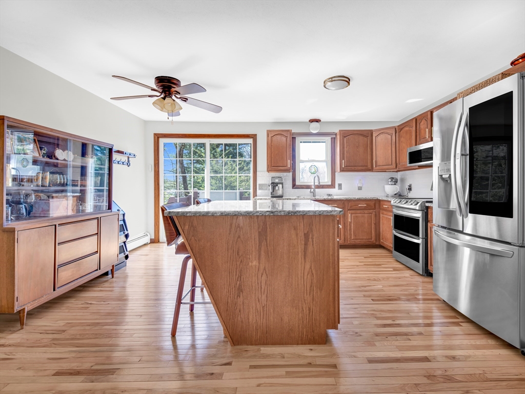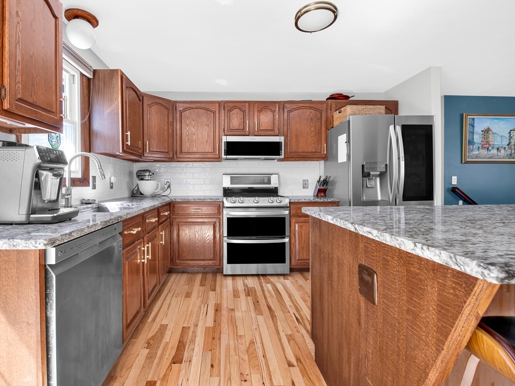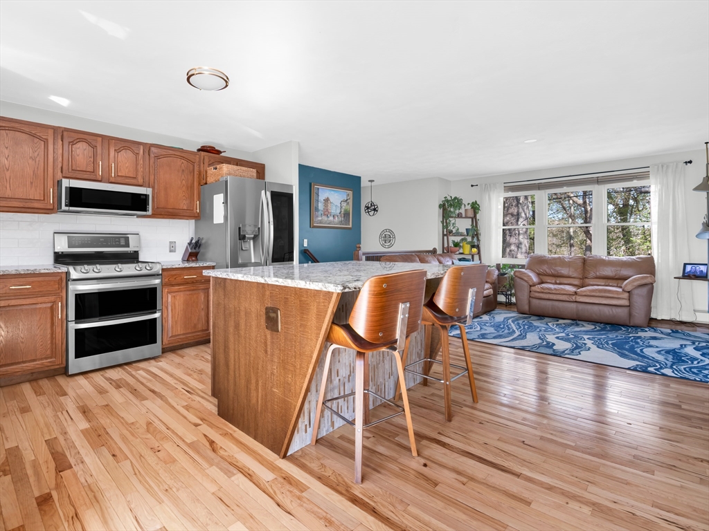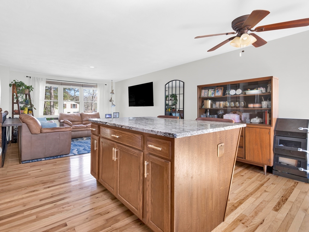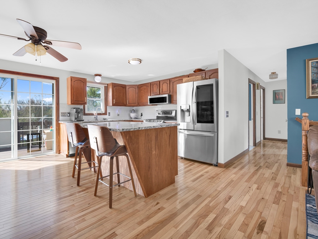 Welcome to this beautifully maintained home in a desirable Smithfield neighborhood. Thoughtfully updated and designed for both comfort and accessibility, this property offers a rare combination of style, function and convenience. Step inside the open kitchen featuring granite counters and a custom built spacious island. Perfect for everyday living and entertaining. Gleaming new wood flooring flows throughout the main living area including the kitchen adding warmth and elegance. The updated bathrooms reflect the same attention to detail, offering a clean, contemporary feel. Finished basement space with a walk out provides versatile additional living space -ideal for a family room, home office, gym, bedroom or guest area. Home was previously adapted for handicap accessibility, including the unique benefit of an outdoor elevator, offering flexibility for a variety of needs. Outside enjoy a beautifully landscaped yard with perennials and a private deck perfect for relaxing or entertaining.