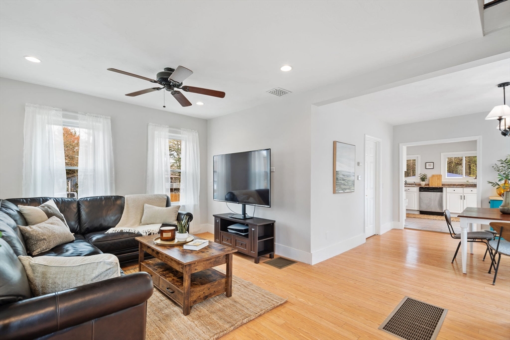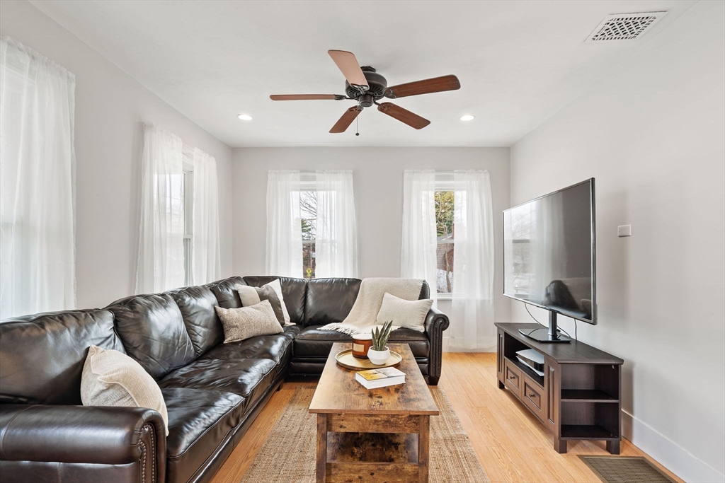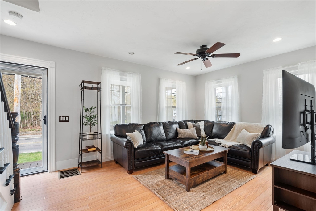 Welcome to 475 Pleasant Street, where move-in ready meets opportunity. This thoughtfully updated three-bedroom home sits on nearly half an acre near the Stoughton/Canton line, offering smart, well-planned living space with room to make it your own. Inside, a bright and inviting living room flows seamlessly into a dedicated dining area and open kitchen overlooking the backyard, creating a layout that lives bigger than its footprint. A convenient first-floor bathroom and laundry are nearby, and a flexible first-floor bedroom is ideal for a home office or guest space, while two additional well-sized bedrooms are located upstairs. Enjoy your morning coffee in the sunroom or relax on the hardscape patio beside the expansive fenced yard. The full basement provides valuable storage, and with major updates already completed, including a newer roof, siding, windows, and upgraded 200-amp electrical, the heavy lifting is done. A rare find at this price point - all that's left to do is move in.