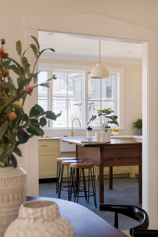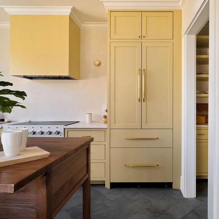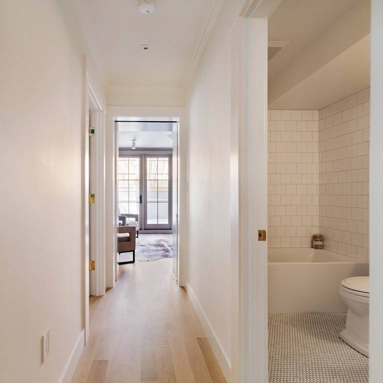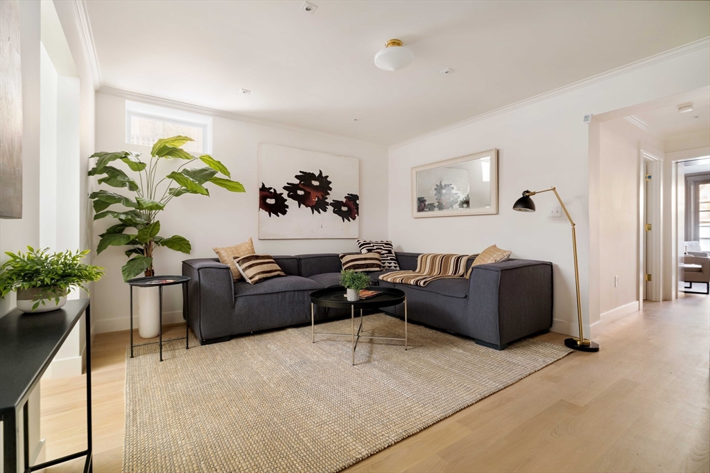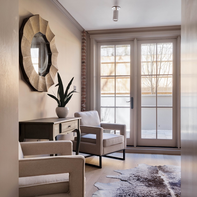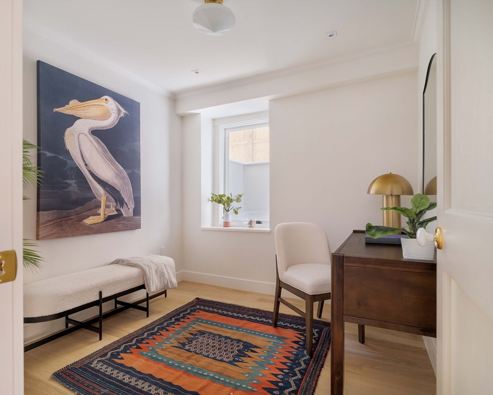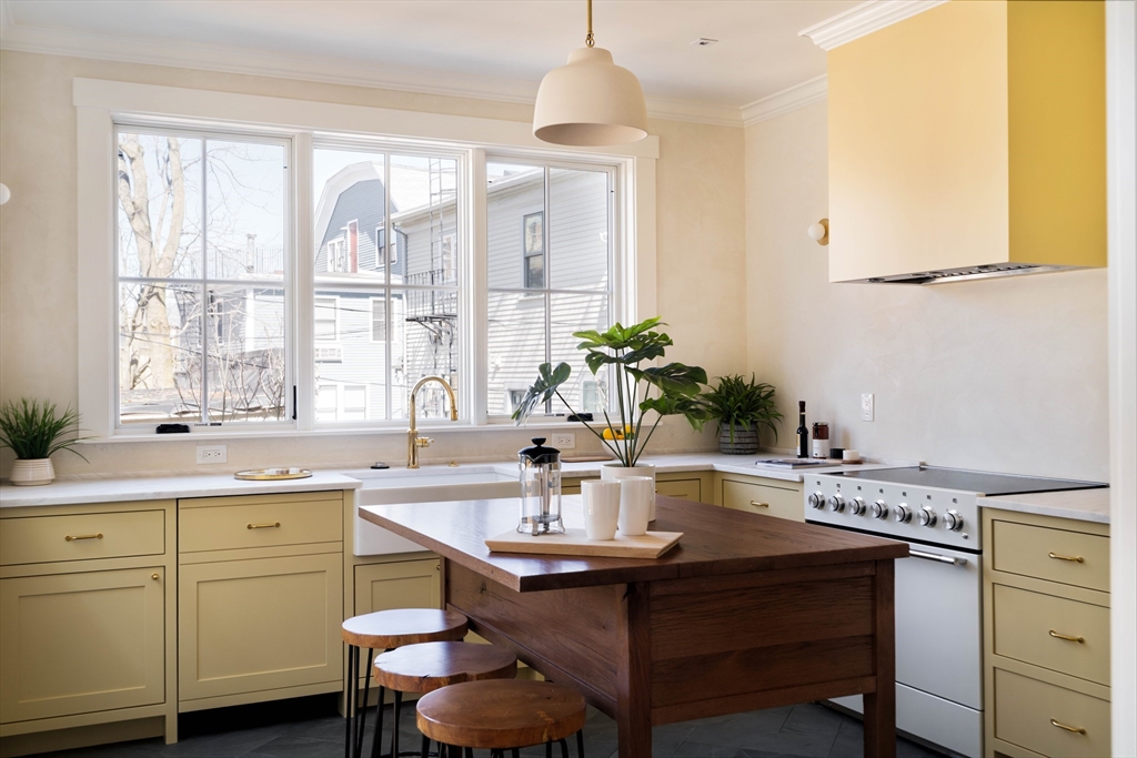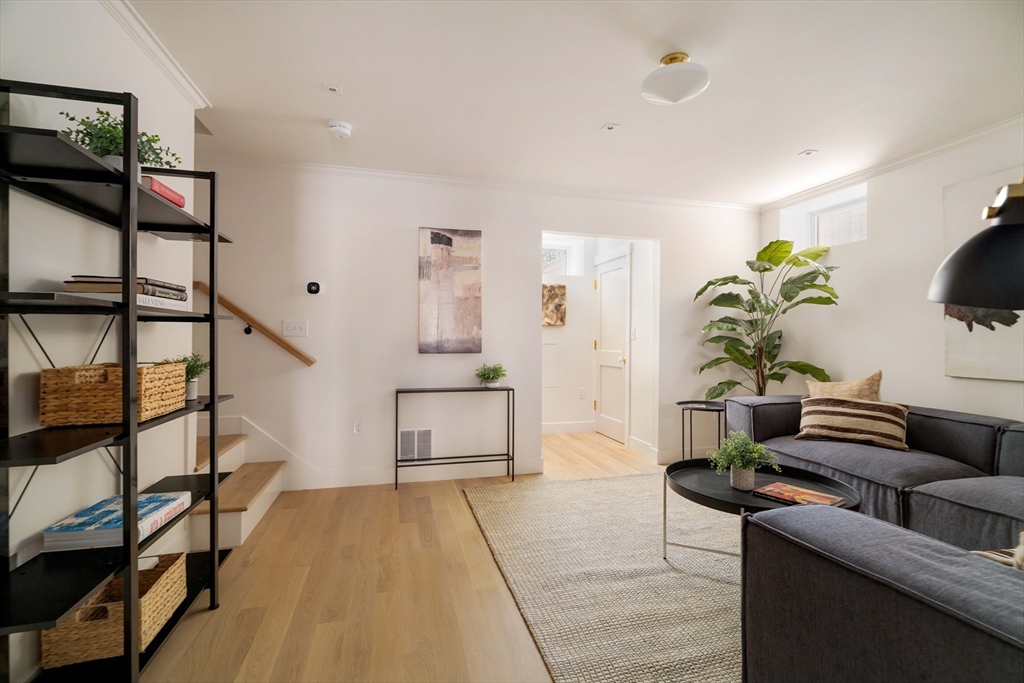 Mid-Cambridge | 23 Ellery is the rare townhouse that feels less like compromise than distillation: almost 3000 SF over four finished levels, south/east light, two-car parking, and bespoke-home finish quality. Built by Broadbridge, with architecture by John Buckley and interiors by Rebecca Walsh, it has a gorgeous throughline of tone and restraint—warm woods, custom cabinetry, layered lighting, details that feel edited rather than decorated. The main level is gracious and beautifully scaled, anchored by a highly designed, highly useful kitchen with AGA induction cooking and a reclaimed-oak island made for gathering. A porch, fenced garden, and landscaping extend living outside. The primary suite is calm and tailored; the Mansard level is bright, charming, and generous, with skylights over the stair and hall. Below, a richly detailed study opens to a sunken patio, plus family room, bath, and small fifth bedroom for guests or office. Close to Harvard (Red Line/T), Central, MIT/Kendall.