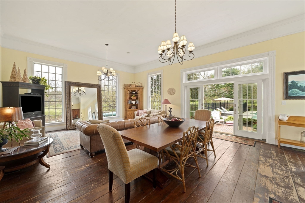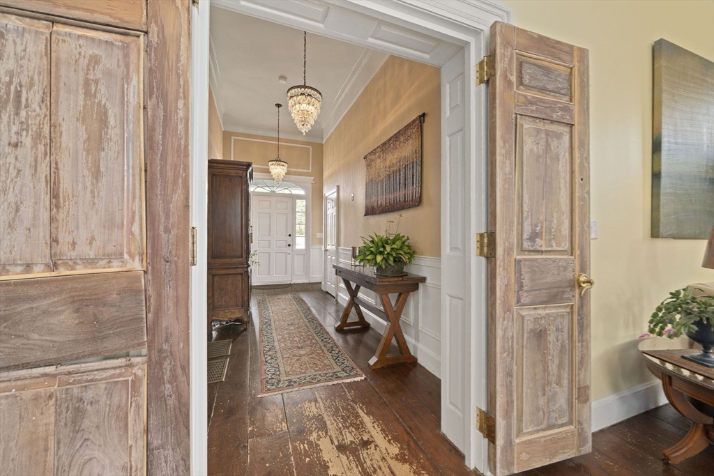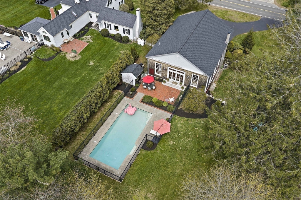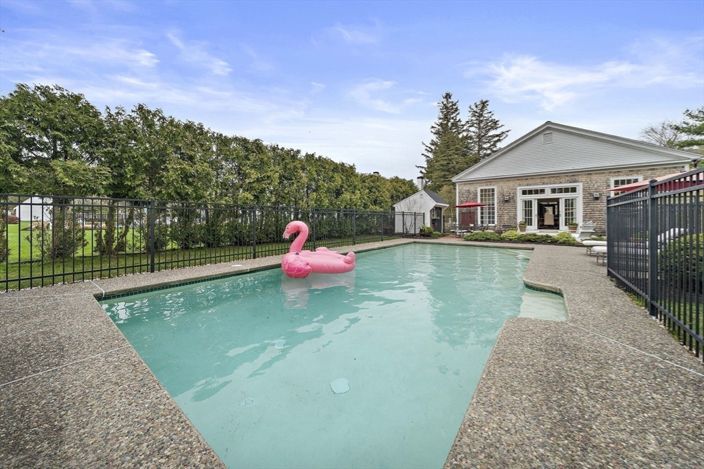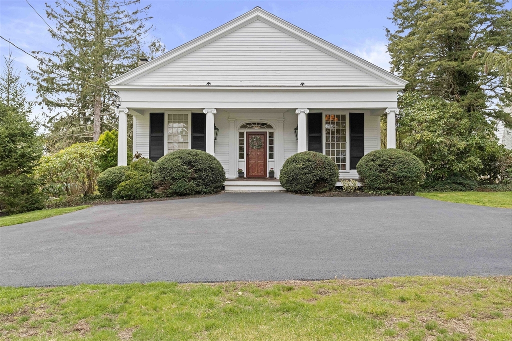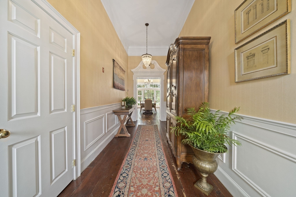 A rare offering, this home is situated along the fairway of Marshfield Country Club, carries its reputation effortlessly. Step through the front door and the view opens before you. A grand foyer gives way to bright, airy living spaces, and beyond them, an in-ground, heated, gunite pool, lush gardens, and a panoramic view of the golf course. 13 foot ceilings and 9 foot windows fill every room with light, falling across wide-plank wood floors and the kind of crown molding and wainscoting you simply don't find anymore. It's the sort of craftsmanship that makes a house feel genuinely special. The care put into this home shows everywhere. A new roof, restored front porch, and upgraded pool systems set the stage for easy summer living. The kitchen, pantry, laundry, and furnace have all been thoughtfully updated over the years, leaving nothing left to do but settle in. "The Pillar House" is the kind of home that doesn't come around often, full of character, history, and even better in person.