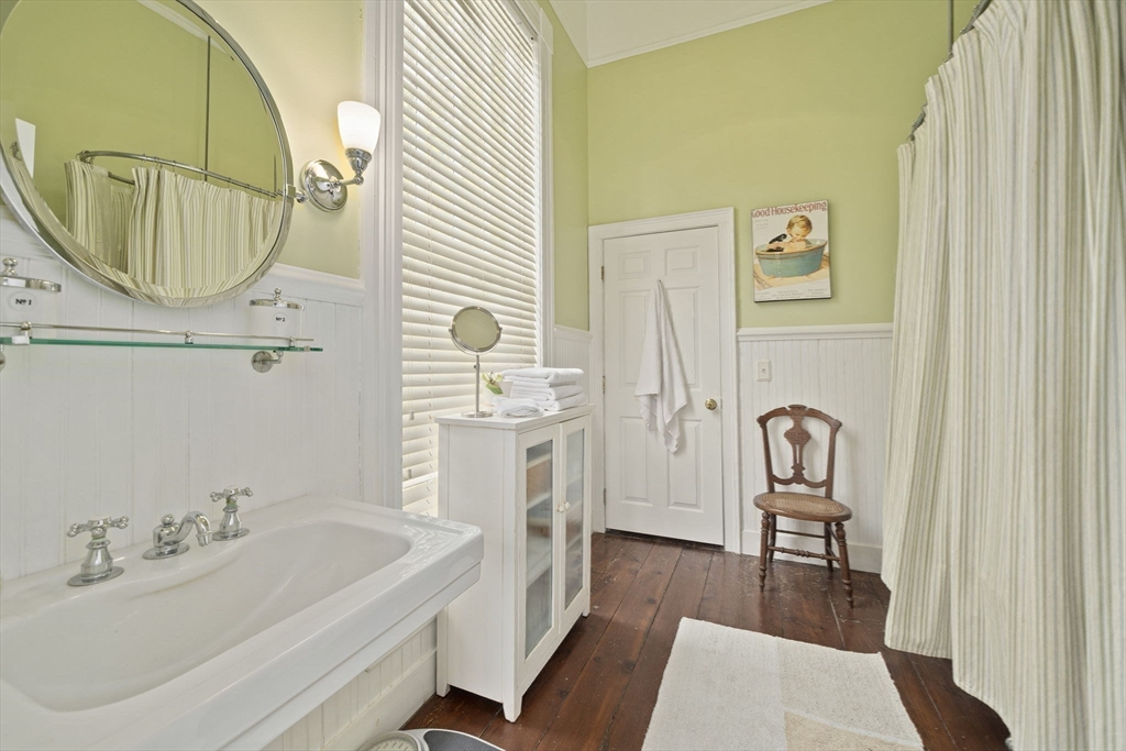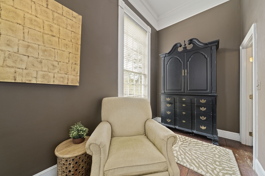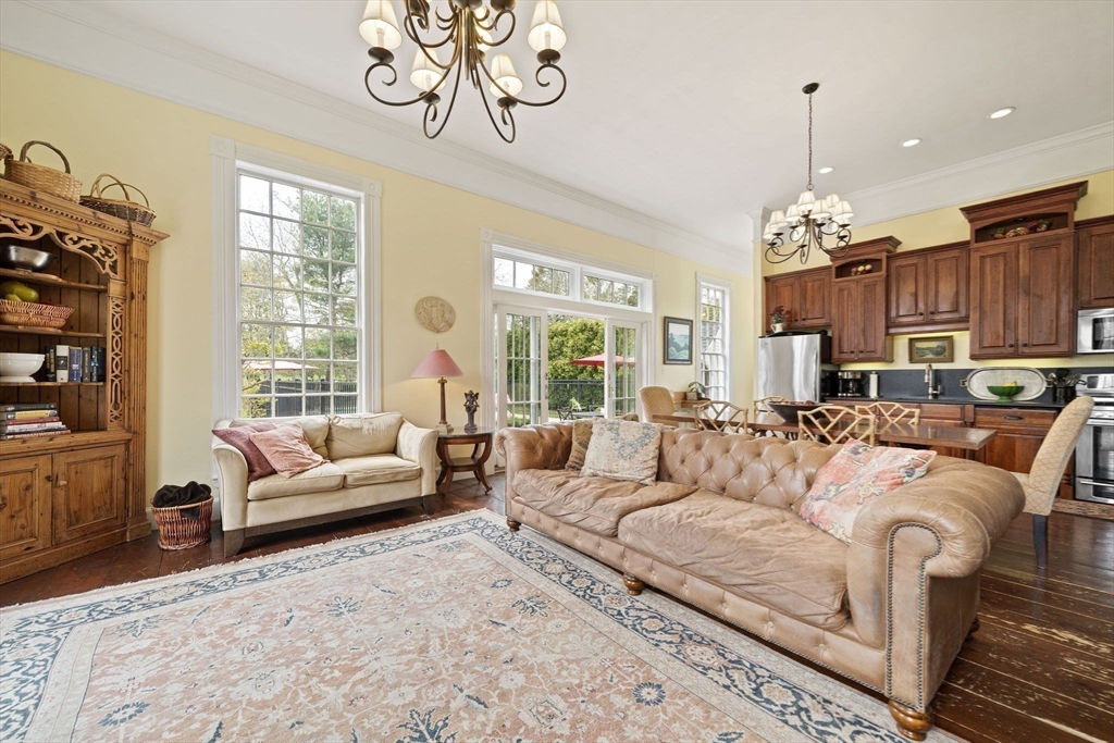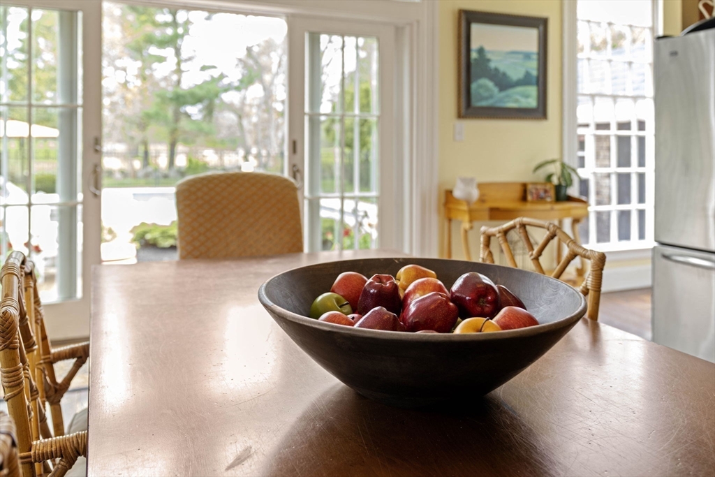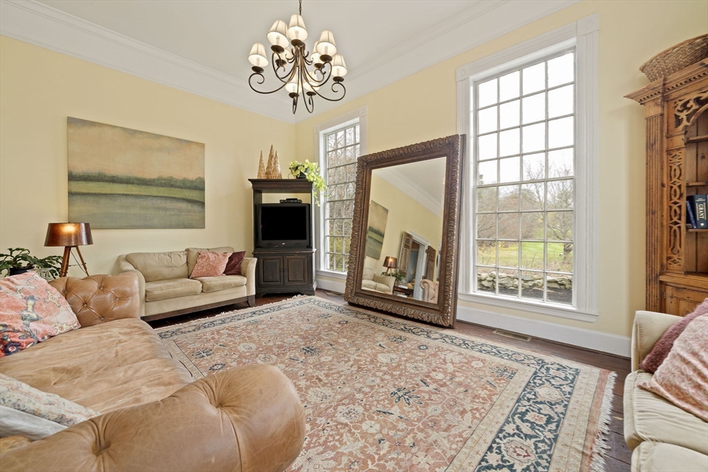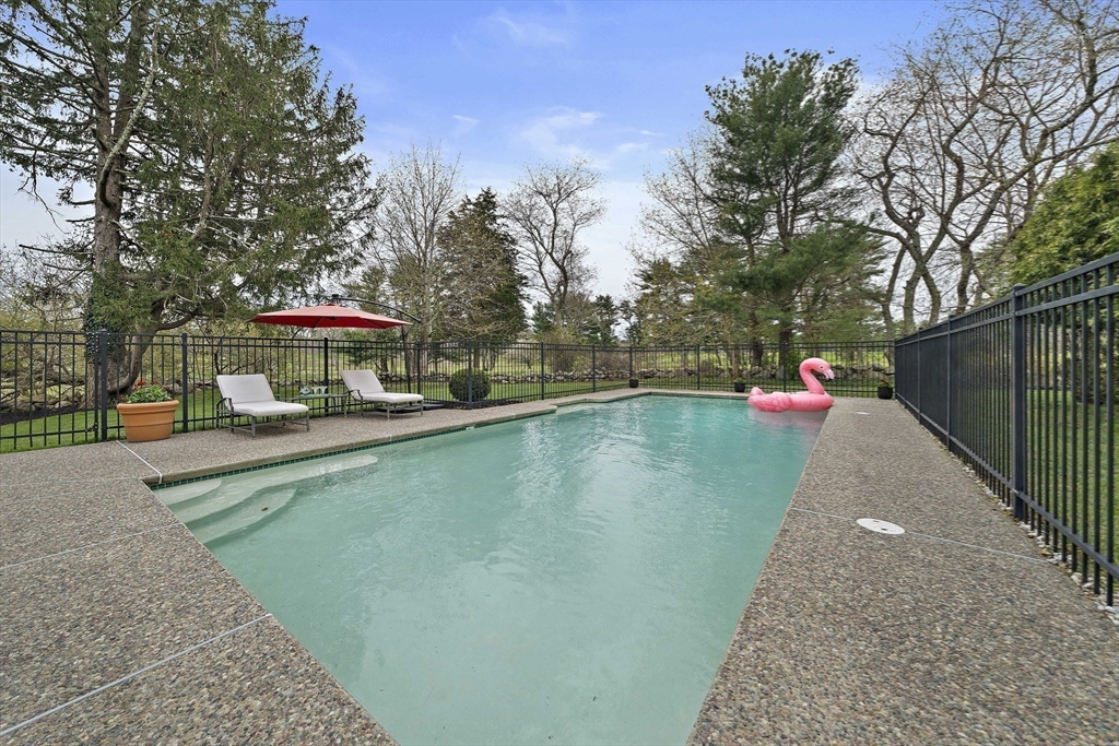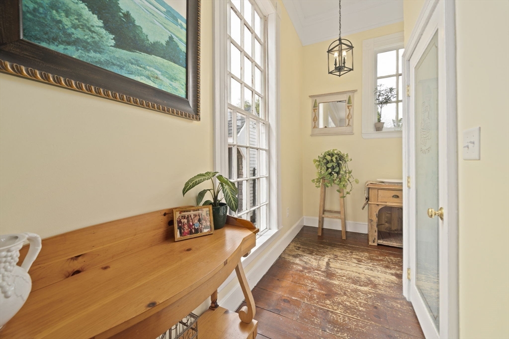 A rare offering, this home is situated along the fairway of Marshfield Country Club, carries its reputation effortlessly. Step through the front door and the view opens before you. A grand foyer gives way to bright, airy living spaces, and beyond them, an in-ground, heated, gunite pool, lush gardens, and a panoramic view of the golf course. 13 foot ceilings and 9 foot windows fill every room with light, falling across wide-plank wood floors and the kind of crown molding and wainscoting you simply don't find anymore. It's the sort of craftsmanship that makes a house feel genuinely special. The care put into this home shows everywhere. A new roof, restored front porch, and upgraded pool systems set the stage for easy summer living. The kitchen, pantry, laundry, and furnace have all been thoughtfully updated over the years, leaving nothing left to do but settle in. "The Pillar House" is the kind of home that doesn't come around often, full of character, history, and even better in person.