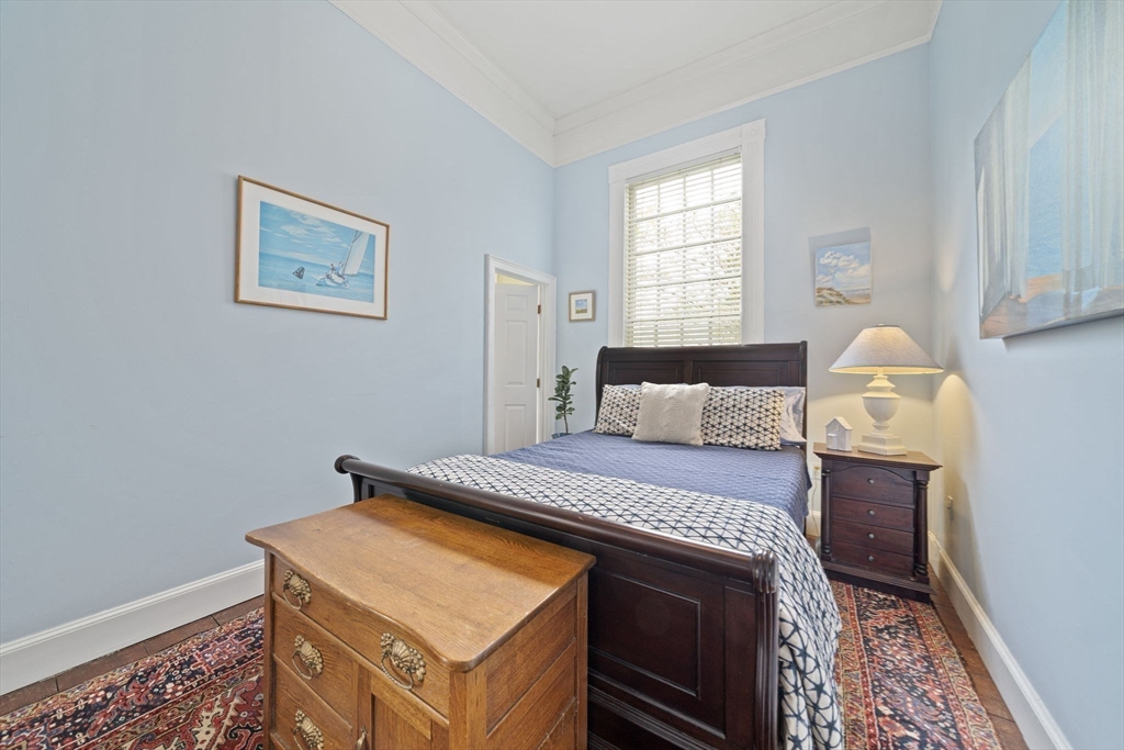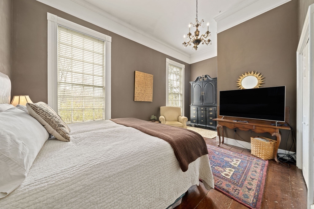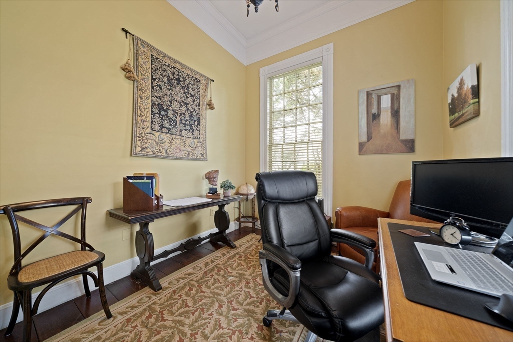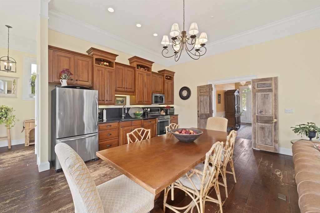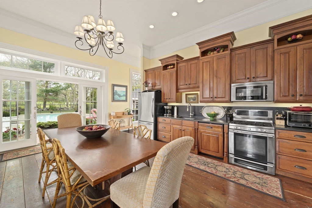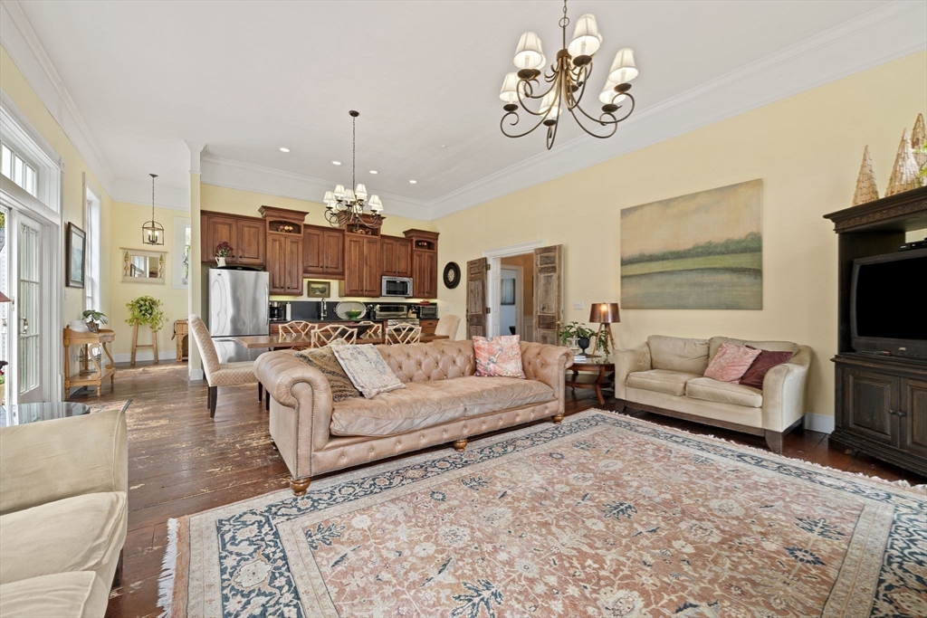 A rare offering, this home is situated along the fairway of Marshfield Country Club, carries its reputation effortlessly. Step through the front door and the view opens before you. A grand foyer gives way to bright, airy living spaces, and beyond them, an in-ground, heated, gunite pool, lush gardens, and a panoramic view of the golf course. 13 foot ceilings and 9 foot windows fill every room with light, falling across wide-plank wood floors and the kind of crown molding and wainscoting you simply don't find anymore. It's the sort of craftsmanship that makes a house feel genuinely special. The care put into this home shows everywhere. A new roof, restored front porch, and upgraded pool systems set the stage for easy summer living. The kitchen, pantry, laundry, and furnace have all been thoughtfully updated over the years, leaving nothing left to do but settle in. "The Pillar House" is the kind of home that doesn't come around often, full of character, history, and even better in person.