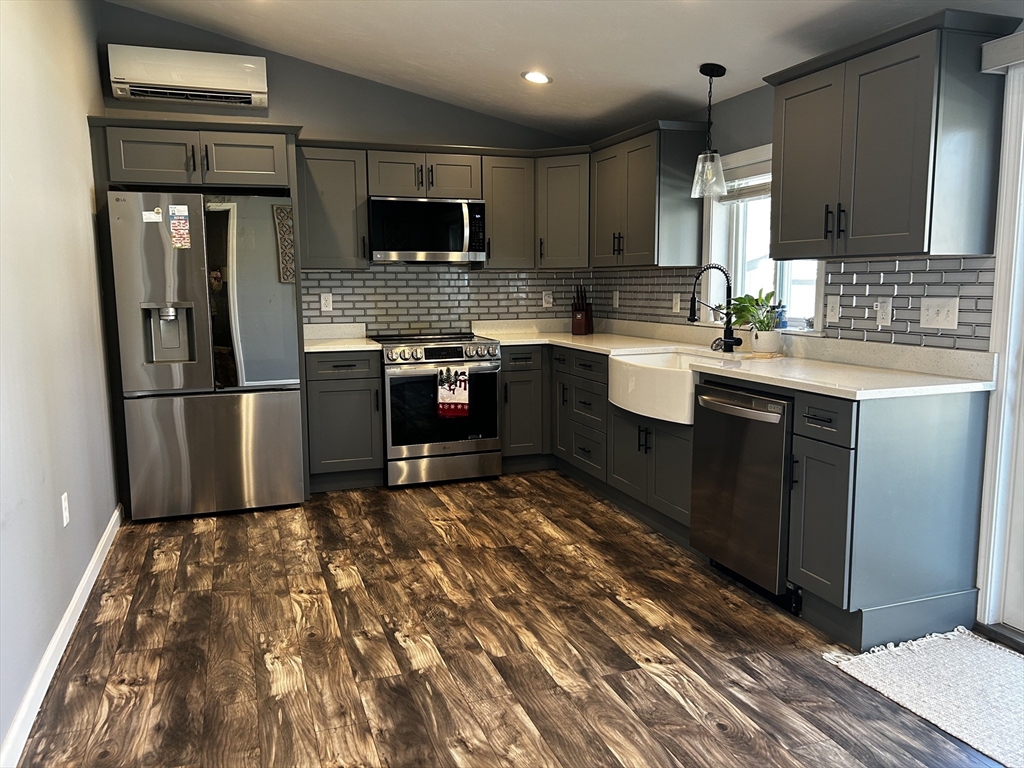 Nicely renovated one-level ranch located on a quiet street in a convenient neighborhood close to schools, shopping, and the train station. This 3-bedroom, 1-bath home features a comfortable living room and separate dining area. The updated kitchen offers granite countertops, stainless steel appliances, and modern finishes. Recent improvements include a newer roof, new flooring throughout, a brand-new exterior deck perfect for summer enjoyment, and a newly installed Title V septic system. Situated on a corner lot, this home provides easy one-level living in a desirable location.