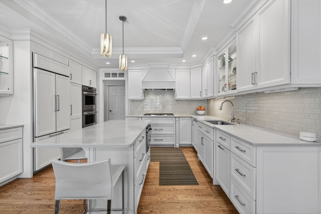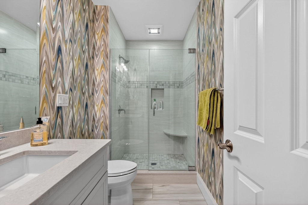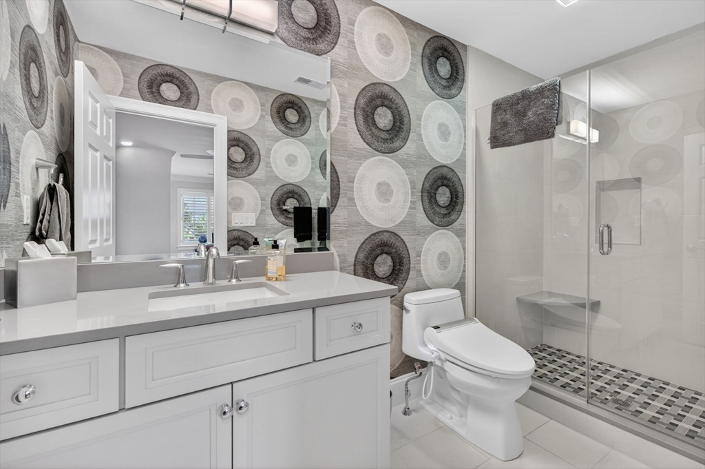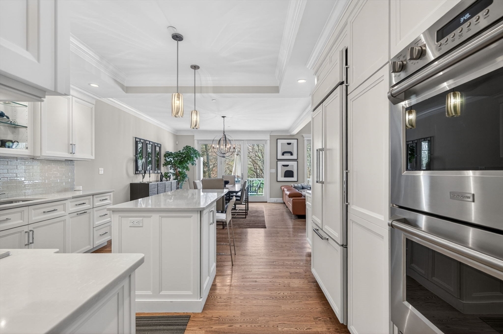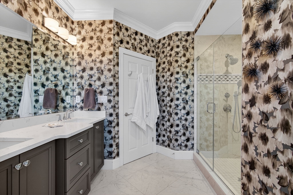 Luxury living at The Legends located at the Andover Country Club, expertly crafted by renowned builder. This pristine residence features a sought-after first-floor primary suite with cathedral ceiling, two walk-in closets and a luxury bath with large walk-in shower. The open floor plan is designed for elegant living and entertaining, showcasing a gourmet kitchen with center island, quartz countertops, double oven, premium appliances, and pantry area with abundant cabinetry. The kitchen flows seamlessly into the dining room with slider access to large private deck and to the 2 story fireplaced living room. Upstairs offers two additional bedrooms, including an ensuite, plus a home office/den and two full baths. The finished walk-out lower level includes a family room with wet-bar and an exercise room or guest suite with adjacent full bath. A private setting, pristine condition, and attached two-car garage complete this luxury offering in one of Andover’s most prestigious communities!