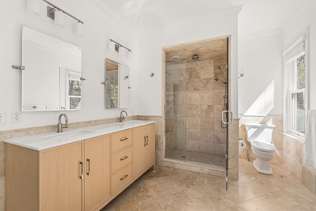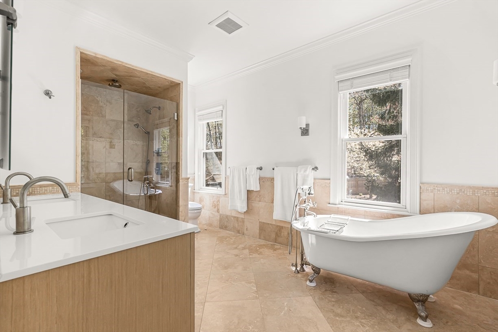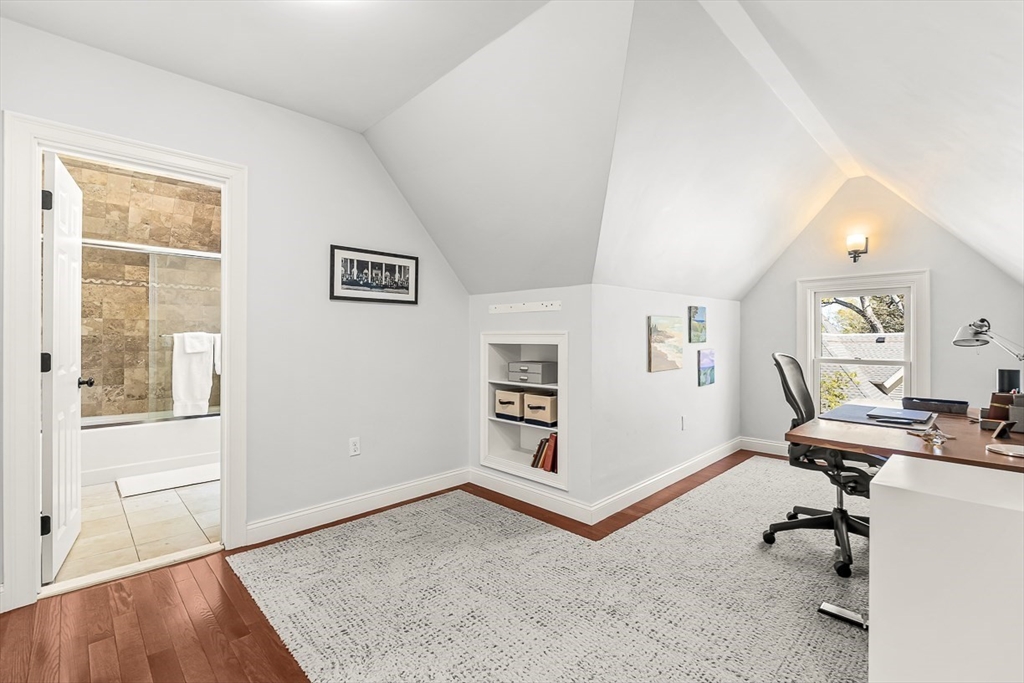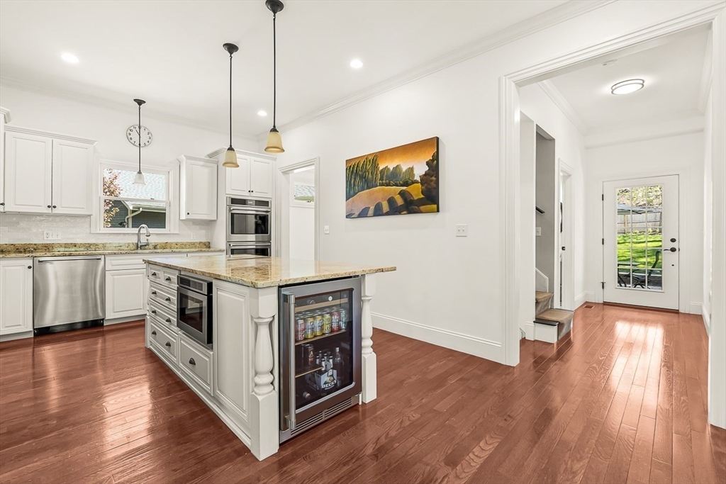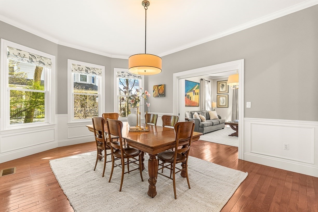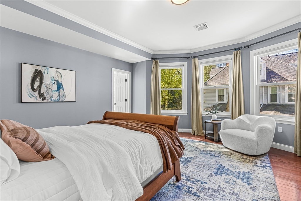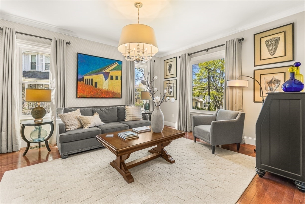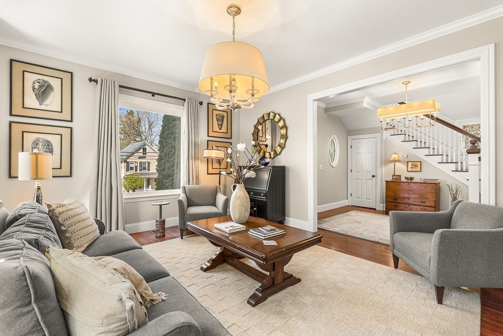 This renovated Victorian combines the best of all worlds -- a gracious & welcoming home with Newton Centre convenience. Step inside from a covered porch to the foyer & sunny living room. The gourmet kitchen features premium finishes & opens into the bright, inviting dining room & cozy den. Retreat to the peaceful primary suite, with two walk-in closets & spa-like bath. There are two add'l spacious bedrooms, a shared bath, & laundry on the 2d floor. The 3d floor has two bedrooms, a full bath & flex space. The finished lower level offers a family room, half bath, ensuite guest room with full bath, storage & exterior access. The expansive backyard is ideal for play or entertaining, with a farmer's porch, patio, & detached 2-car garage. 36 Parker Street is the perfect balance: a peaceful, spacious yet cozy home in the heart of a vibrant neighborhood. Just 0.3 miles from the T, shops, and restaurants in Newton Centre, this turnkey home is convenient to Crystal Lake, parks & major routes.