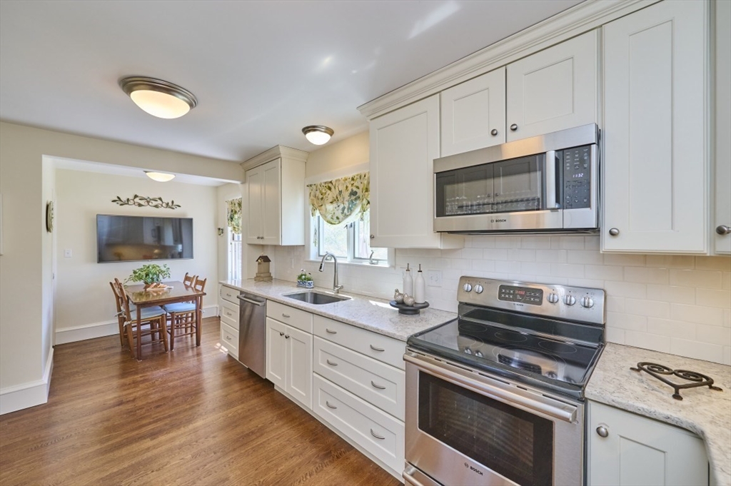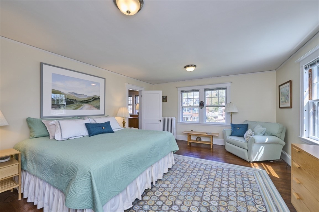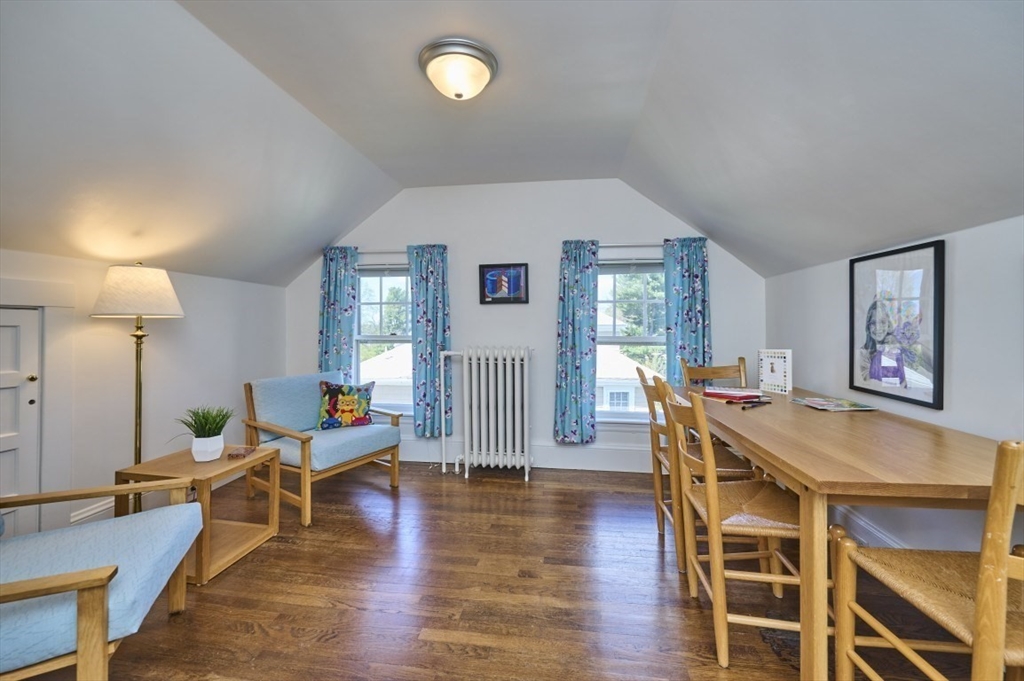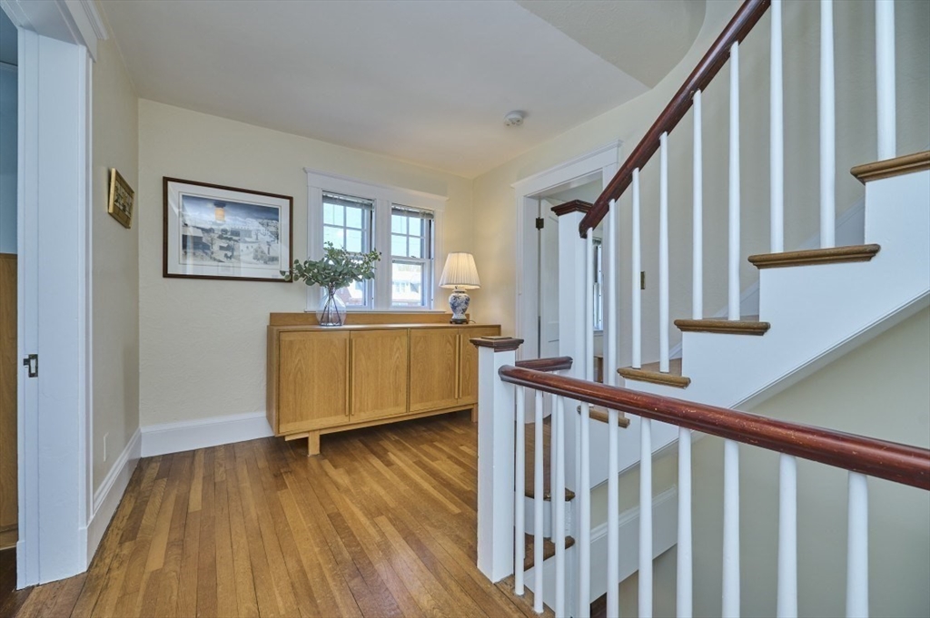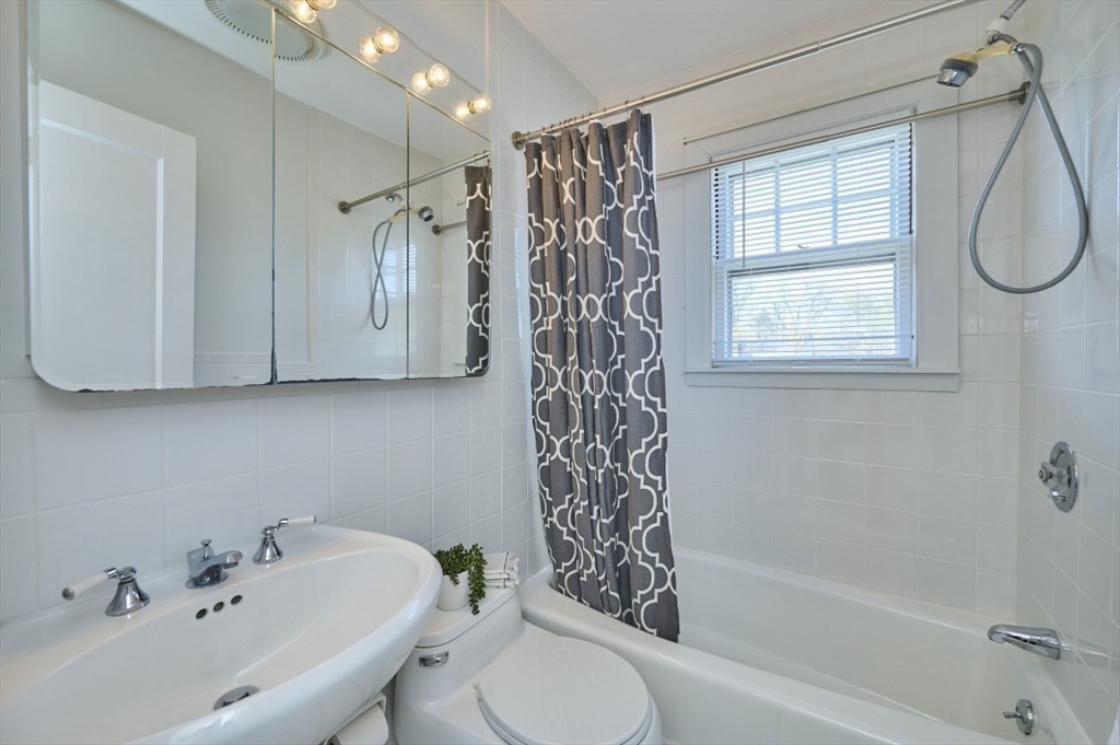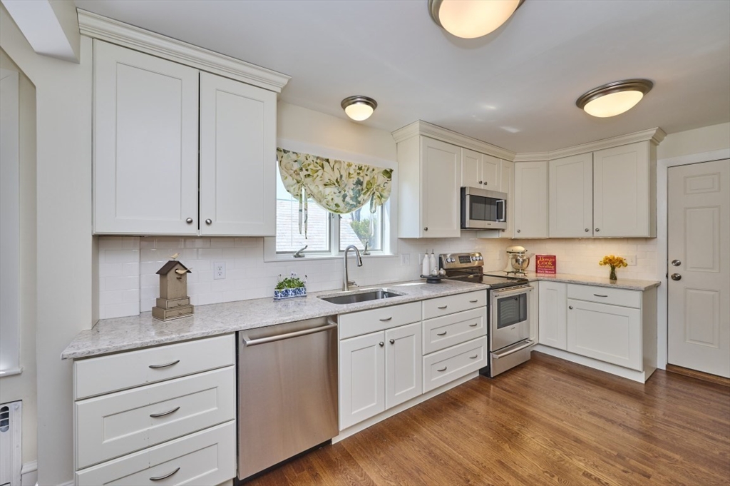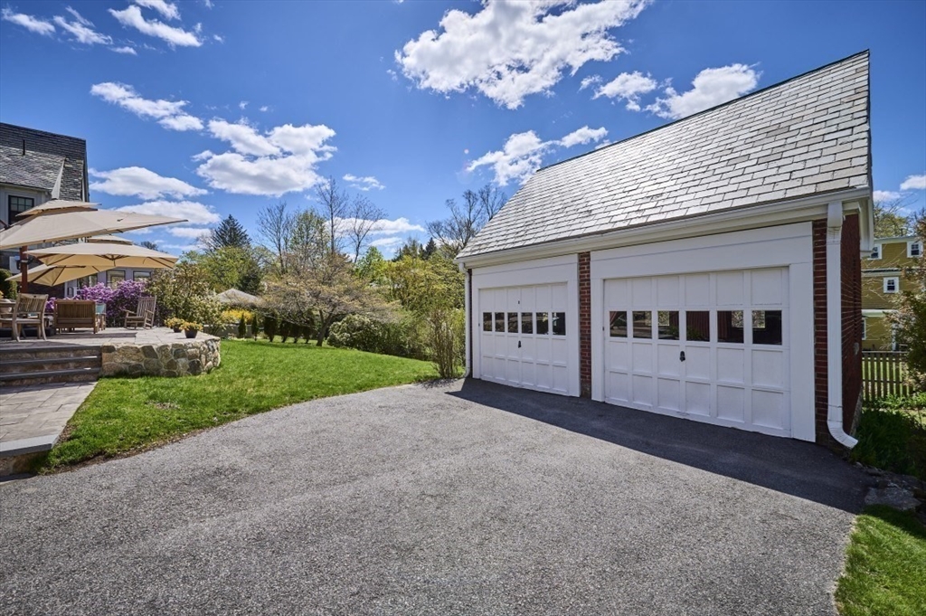 Exceptional pride of ownership throughout this classic brick Colonial in prime Newton location. Spacious front-to-back living room with fireplace opens to an inviting sun room/office. Formal dining room with molding flows into a renovated eat-in kitchen with stainless steel appliances and quartz countertops. Mudroom, closet and half bath complete the main level. Second floor features a serene primary suite with custom closet and bath, plus two additional bedrooms, full bath, cedar closet and linen closet. Third floor offers two bedrooms/offices and full bath. Flexible living space with eave storage. Entertain and relax on the oversized stone patio and yard. Brick two-car garage and driveway that holds five vehicles. Convenient to schools, parks, shops, restaurants, Mass Pike, Commuter Rail, Express bus and more. Welcome home!