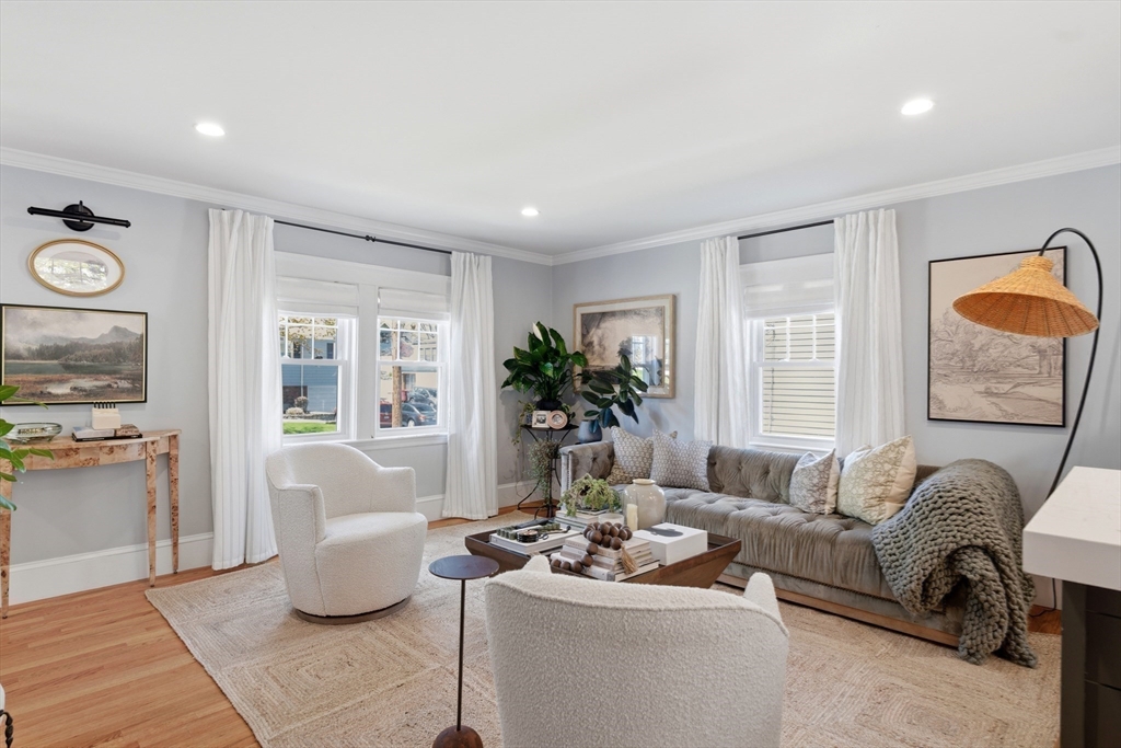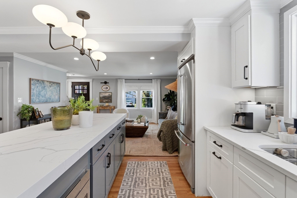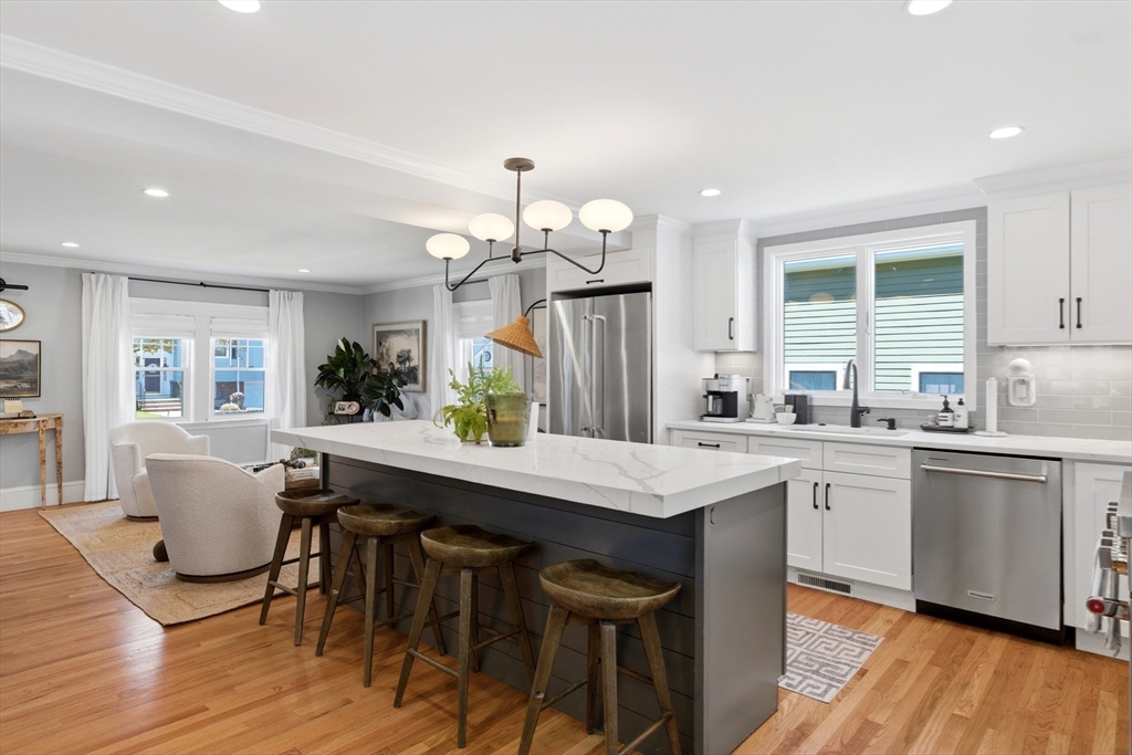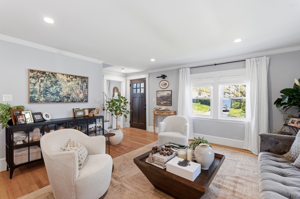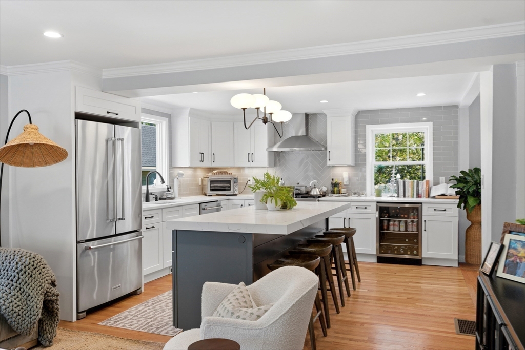 Welcome to 75 School Street. This classic colonial checks all the boxes. Completely updated throughout this home offers tasteful modern finishes while maintaining its New England charm. The main level offers a beautiful Chef's kitchen, massive island, stainless Kitchen Aid appliances, and Quartz countertops adorning high end cabinetry. A separate front to back living room, additional dining space, and first floor full bathroom. Upstairs three ample sized bedrooms and a full bathroom fit for any growing family. Hardwood floors throughout, central AC, updated electrical and plumbing, tankless on demand water heater, new windows, spray foam insulation, and a full finished basement! Outside, a large manicured fenced in backyard. Plenty of parking with a double wide and extended driveway. Close to Orange line Bus, Commuter Rail, Melrose Square, and Bellevue Golf Club. Only a 20 minute drive to Boston! All furniture available for purchase with the home*