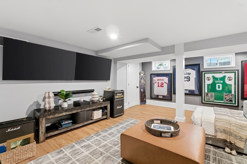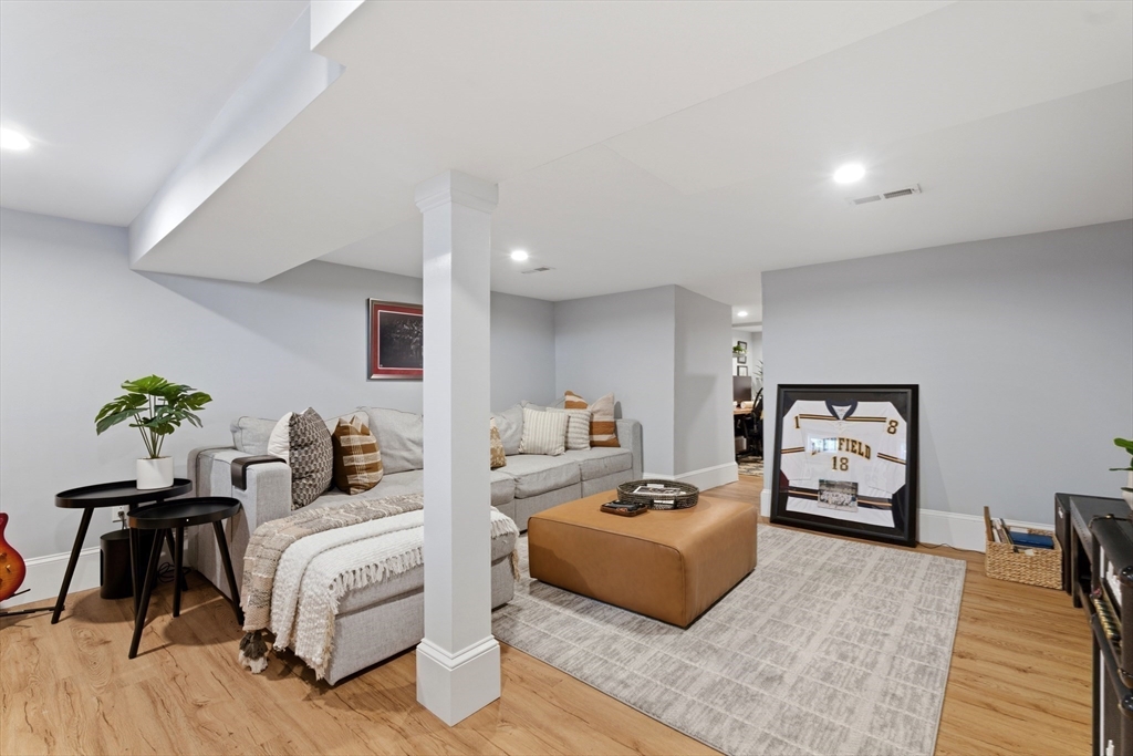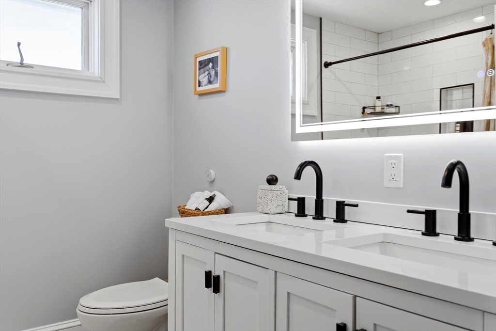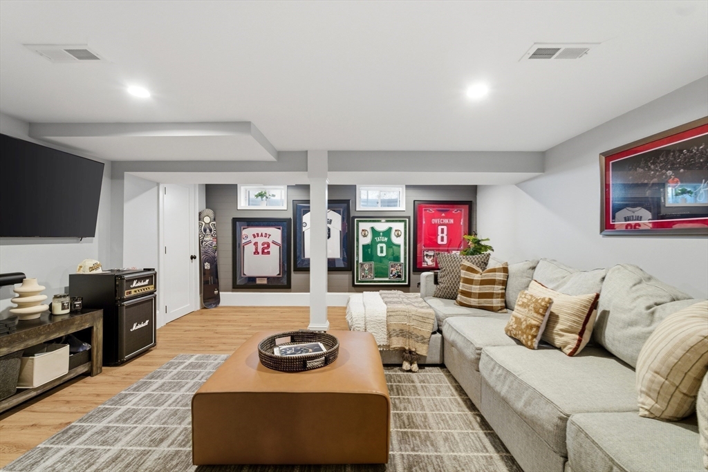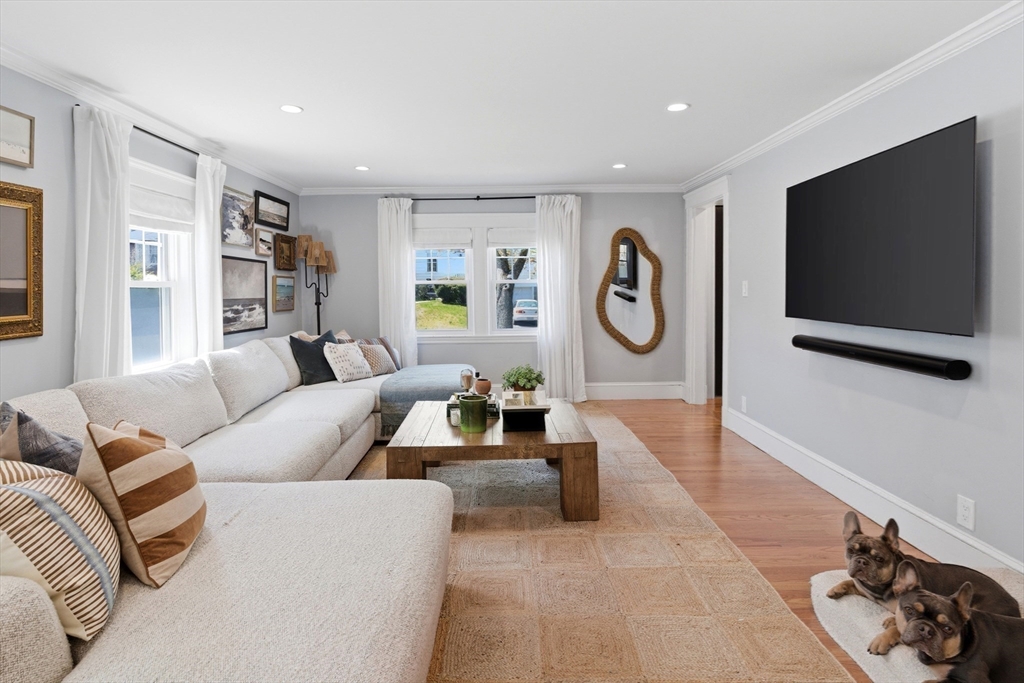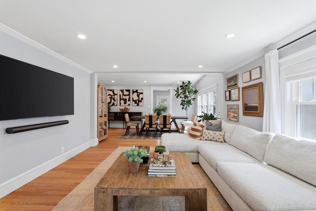 Welcome to 75 School Street. This classic colonial checks all the boxes. Completely updated throughout this home offers tasteful modern finishes while maintaining its New England charm. The main level offers a beautiful Chef's kitchen, massive island, stainless Kitchen Aid appliances, and Quartz countertops adorning high end cabinetry. A separate front to back living room, additional dining space, and first floor full bathroom. Upstairs three ample sized bedrooms and a full bathroom fit for any growing family. Hardwood floors throughout, central AC, updated electrical and plumbing, tankless on demand water heater, new windows, spray foam insulation, and a full finished basement! Outside, a large manicured fenced in backyard. Plenty of parking with a double wide and extended driveway. Close to Orange line Bus, Commuter Rail, Melrose Square, and Bellevue Golf Club. Only a 20 minute drive to Boston! All furniture available for purchase with the home*