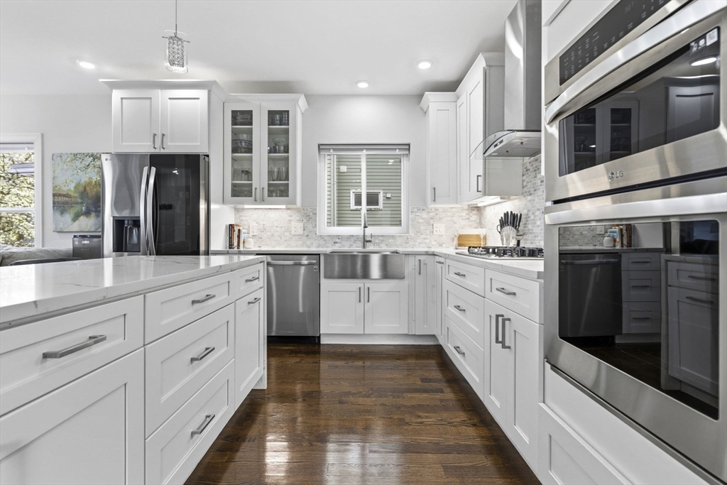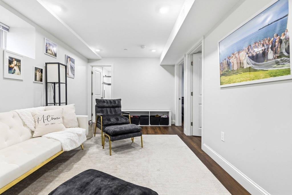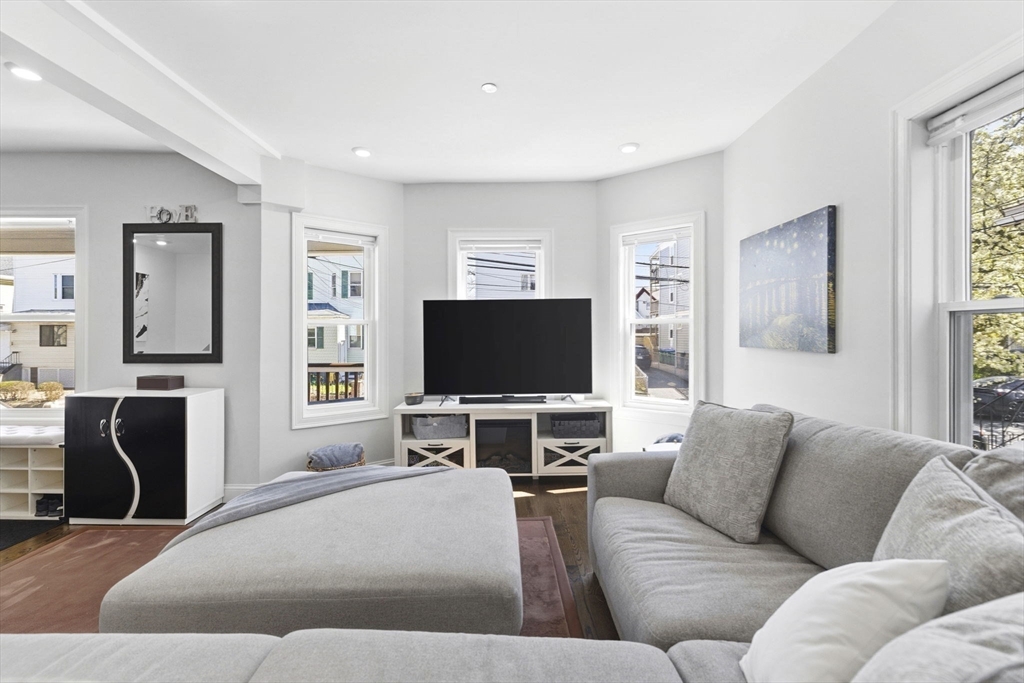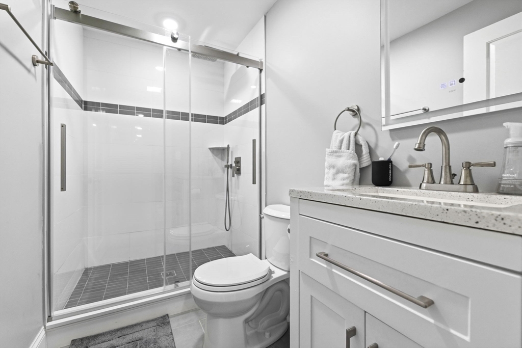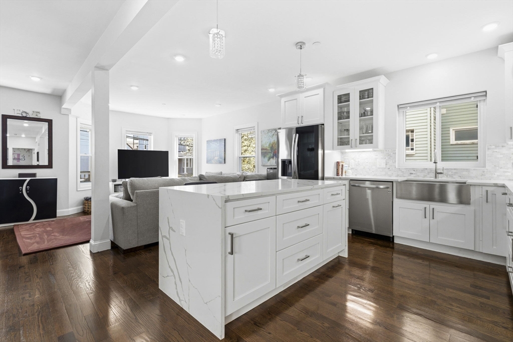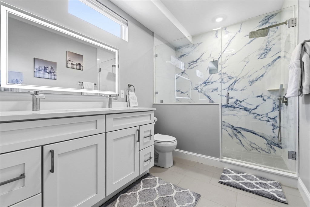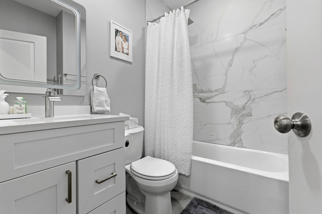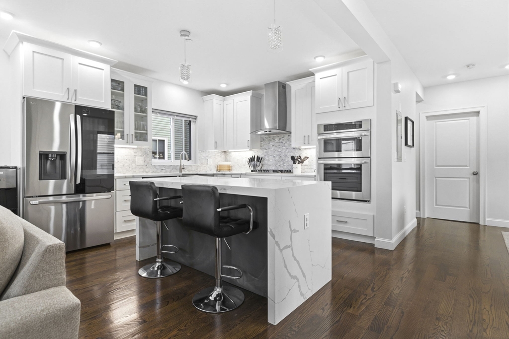Located just over the Somerville line, this luxury home was thoughtfully renovated and offers the perfect blend of modern city living and suburban comfort. 16 Willard offers 4 Bedroom, 3 Bath bi level home is designed for both style and functionality. The open-concept main level features a designer kitchen with top of the line appliances and an expansive quartz waterfall island, seamlessly flowing into a spacious living and dining area highlighted by a statement crystal chandelier ideal for entertaining. The primary suite offers a true retreat, complete with dual walk in closets and a sleek, modern ensuite bath with high end finishes and glass enclosed shower. The lower level provides exceptional versatility, featuring a large family room, full bathroom, and two additional bedrooms perfect for guests, work from home space, or extended living. Additional highlights include one deeded parking space, low condo fee's, Tuft's Park, Ball Square Green Line access, and Tufts University.