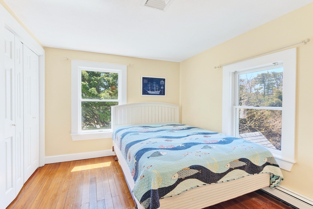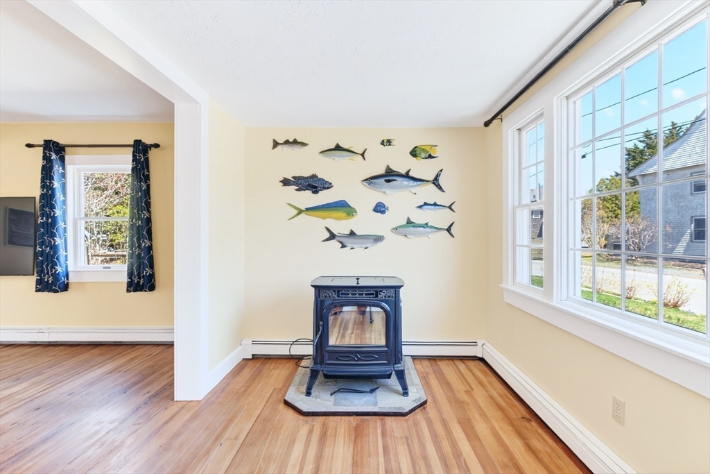 Timeless charm meets modern comfort in this beautifully maintained 1918 North Falmouth home. Featuring 3 bedrooms and 2 full baths, this turn-key property showcases stunning heart pine floors, a cozy pellet stove, and central air conditioning. The bright interior opens to a spacious wood deck, perfect for entertaining, while the fenced yard is surrounded by mature perennials and includes an outdoor shower, front patio, and two sheds. Ideally located just 0.3 miles to Megansett Beach with town boat ramp access, and 0.5 miles to the Shining Sea Bike Path. Adjacent to the North Falmouth Library, with nearby tennis, pickleball, and a softball field. Close to local favorites like Epic Oyster, Prime Time Pizza, and Old Main Mercantile, with easy off-Cape access. A move-in ready coastal retreat in a sought-after location.