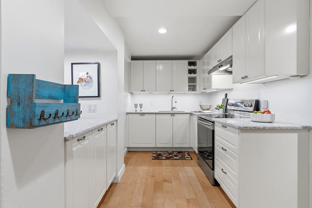 Welcome to 97 Sewall Avenue #5 in Brookline a charming one bedroom with deeded, off street parking in a historic Victorian at the corner of St. Paul Street and Sewall Avenue. Enter through your private entrance with a personal garden. The spacious living room provides great space for relaxing or entertaining. Just off the living area, a versatile bonus space is perfect for a home office, reading nook, or additional entertaining area. The kitchen offers abundant storage, a breakfast bar, and modern appliances. The bedroom and full bath complete the home, along with ample storage and central AC. Conveniently located near the St. Paul T stop, Coolidge Corner, Longwood, Fenway, and Boston University. Self-managed association with deeded storage, free in-building laundry, and guest parking.