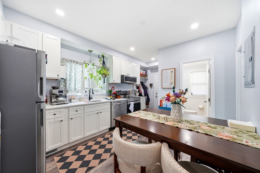 Large three family home in downtown Malden with great positive cash flow! Conveniently located near the MBTA Orange Line (Malden Center), bus stops, and with easy access to Route 1 (Broadway). Off-street parking for six cars and a detached 2-car garage make this an ideal multi-family investment in a prime location. (2) two-bedroom, one-bath units and (1) one-bedroom, one-bath unit are separately metered. Unit 1 on the first floor offers stainless steel appliances, quartz countertops, recessed lighting, high ceilings, and ample storage. Unit 2 on the second floor features high ceilings and a private sunroom. Unit 3 on the third floor has a renovated kitchen with stainless steel appliances, quartz countertops, and a private deck. The basement includes the in-building laundry room and a bonus finished space with a full bathroom.