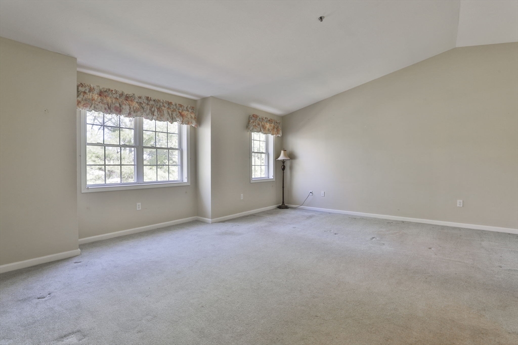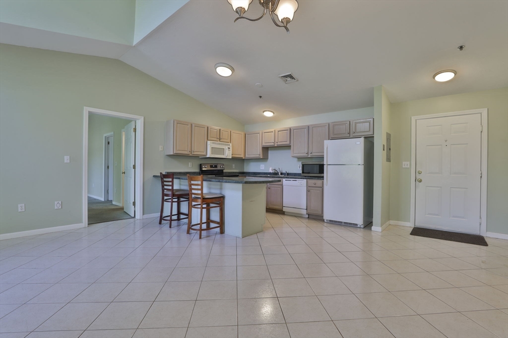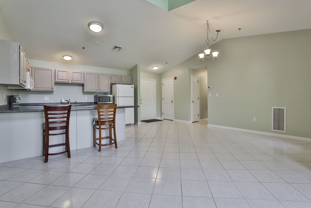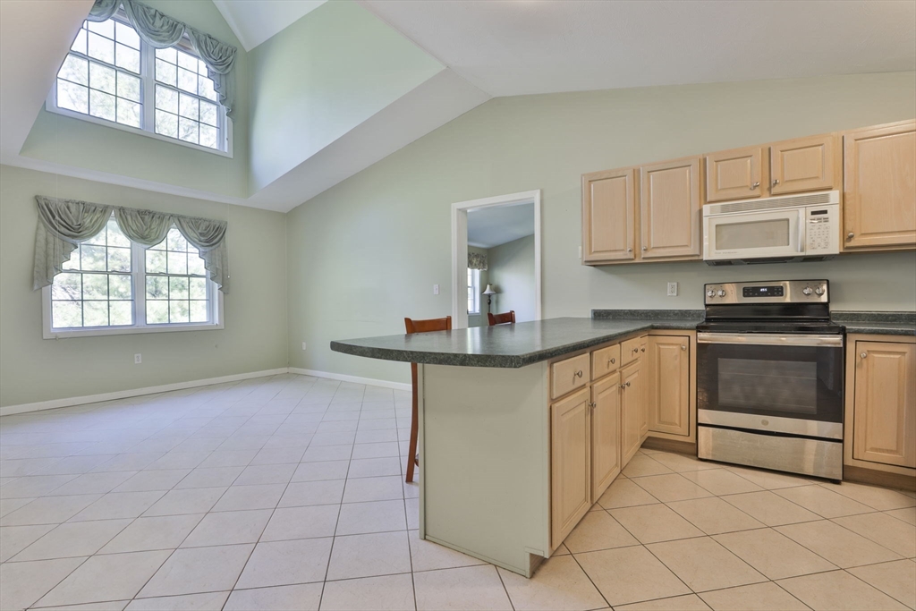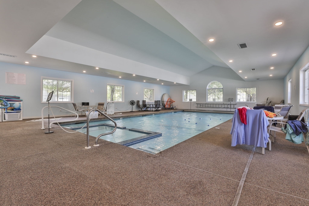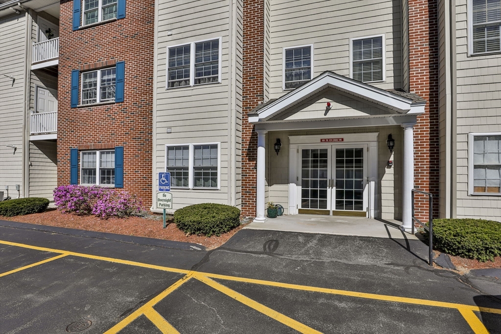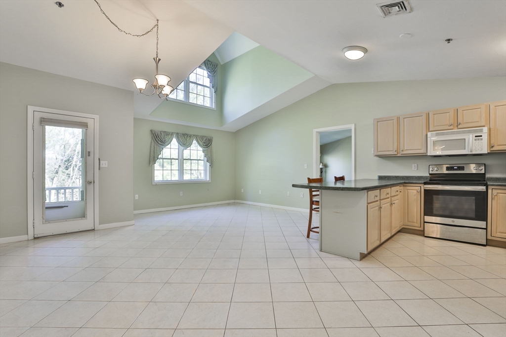 Rare offering! For the 1st time in 3 years, a Penthouse unit with vaulted ceilings & flooded with natural light has come to market at Eagle’s Landing, Tewksbury’s premiere 55+ community. Perfect for those who don’t want the noise of anyone above them, it’s tucked in the back of the complex & faces West, overlooking pine trees not parking lots. This 2 Bedroom, 2 Full Bath unit offers an open floor plan boasting a spacious Kitchen, Dining & Living Room with access to a private porch to view the Sunsets. Oversized Primary Bedroom has en-suite Bath with shower stall & walk-in closet. Ample 2nd Bedroom with walk-in closet, and a 2nd Full Bath, Laundry Room & extra closets beautifully complete the unit. Add’l amenities: Gas Heat, Cen Air, Cen Vac, 1-Car Garage & convenient 2nd parking spot. This well-run complex has manicured landscaping, year-round, indoor heated pool & Clubhouse. Best of all is the location. It’s just around the corner from Market Basket, Dunkin Donuts & so much more!