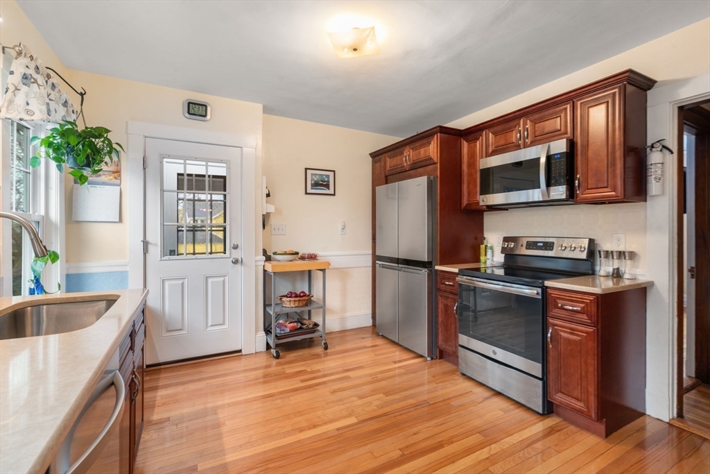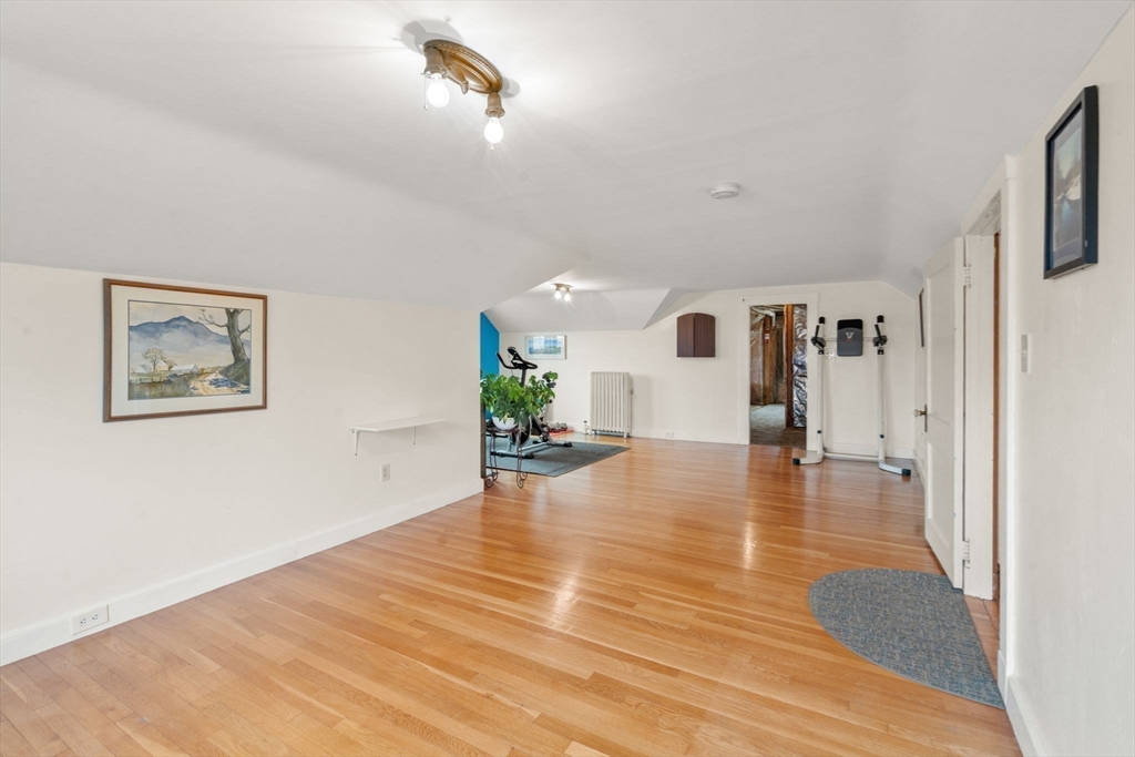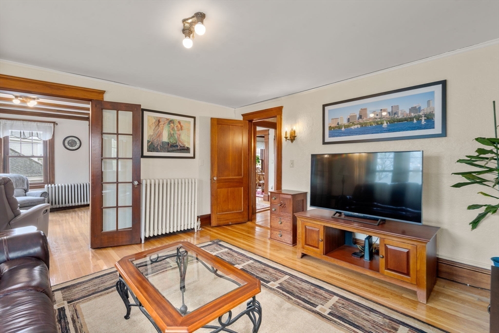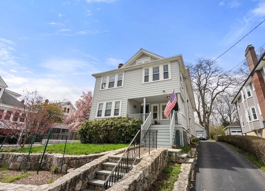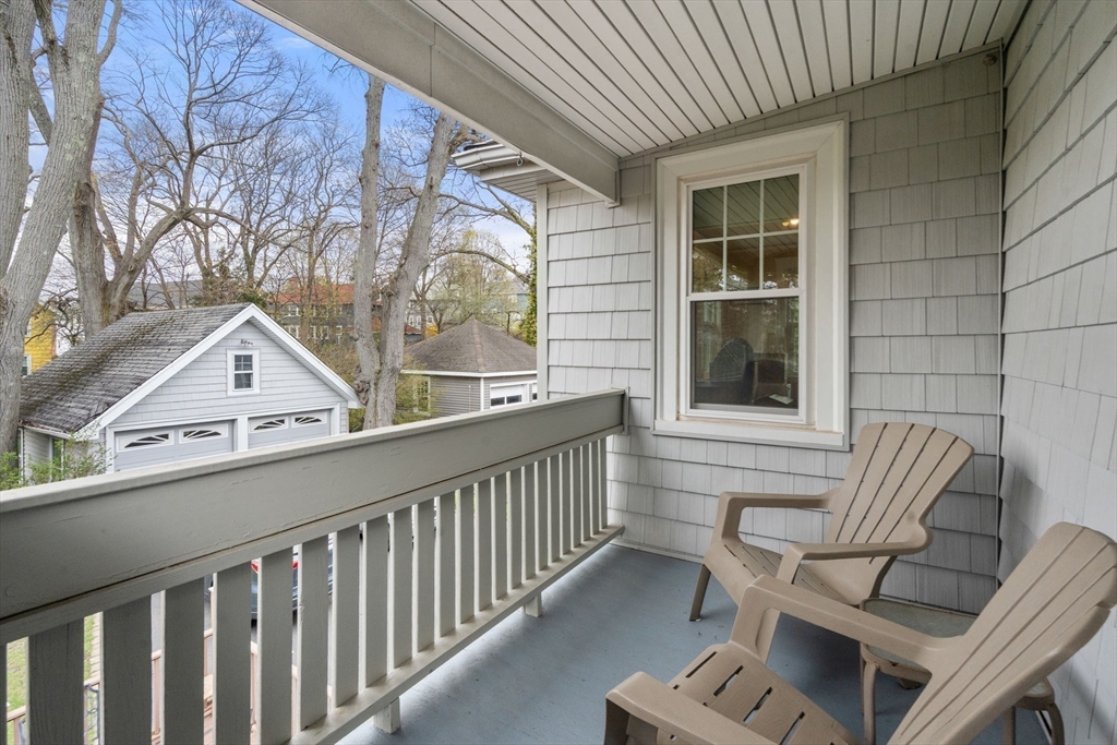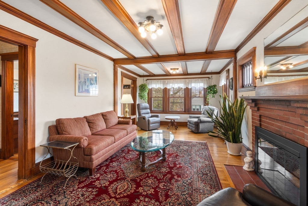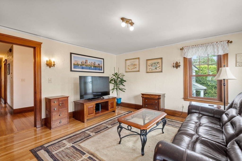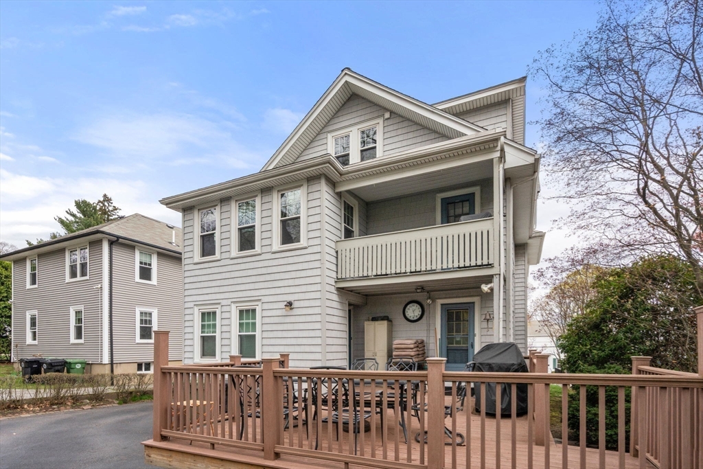 Lovingly maintained, bright and spacious 2-level condo perched on one of Watertown’s most prestigious streets, offering views of Boston's skyline, 8 rooms, 4 bedrooms and 2 full baths, along with the character and features you would expect including beamed ceilings, gumwood moldings, hardwood floors, French doors, built-in hutch, fireplace, pantry, and private balcony. Expansive shared grounds feature a large deck, shaded lawn areas, gardens, and shared 2-car garage with additional driveway parking. Ample garage and basement storage. Walk or bike to area markets, parks, and restaurants. Enjoy all Watertown has to offer with trails along the Charles River, new high school, and convenient access to Cambridge and Boston via the MBTA, and nearby Routes 2, 60, 95, and the Mass Pike.