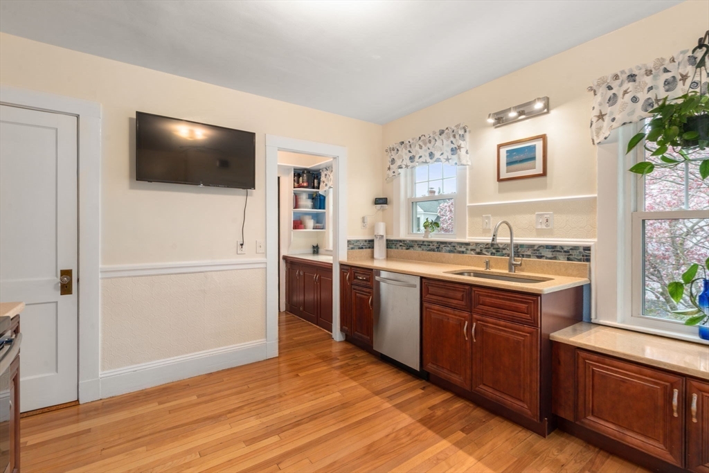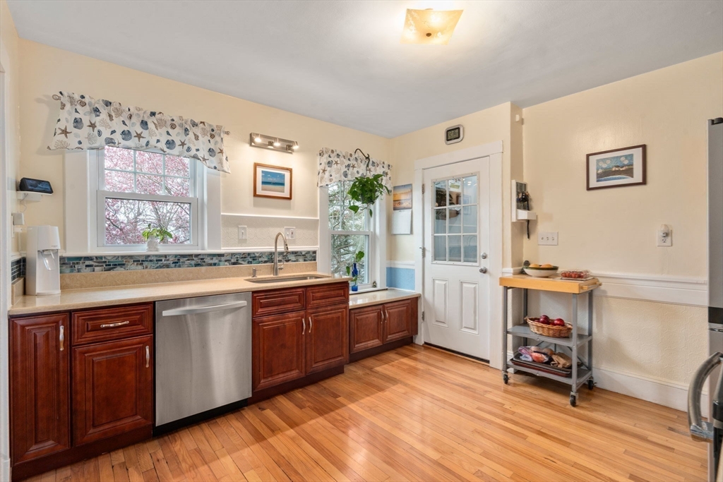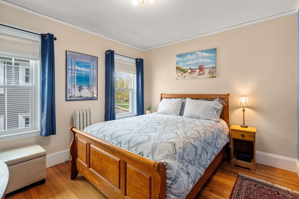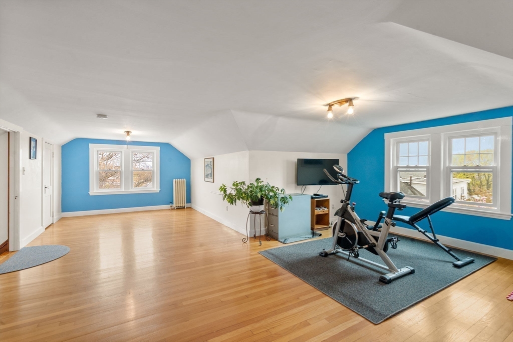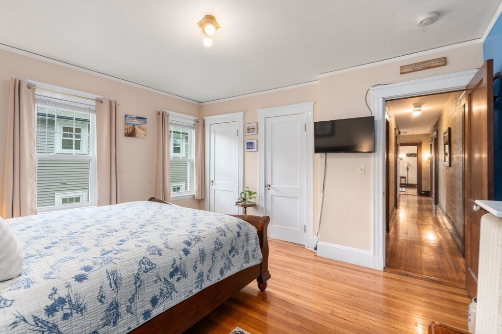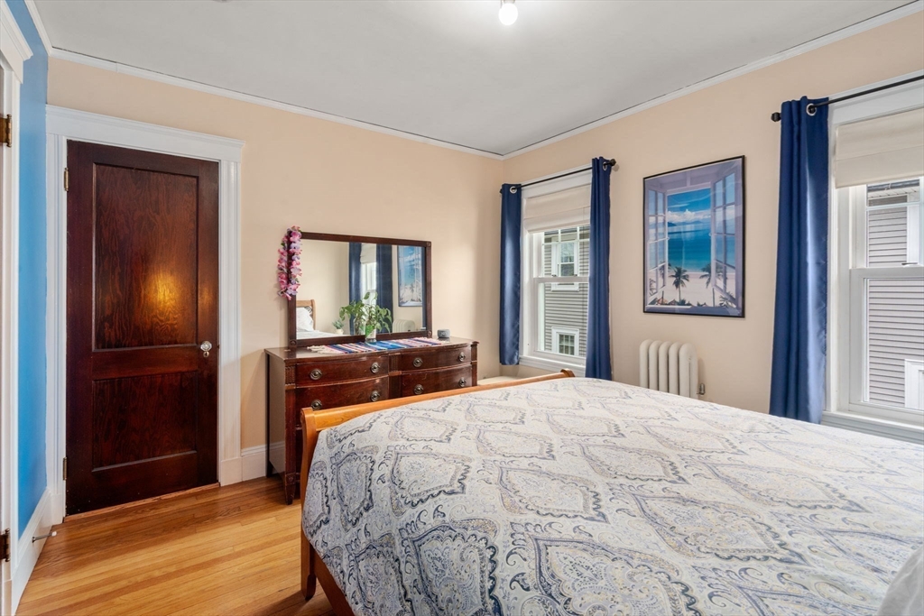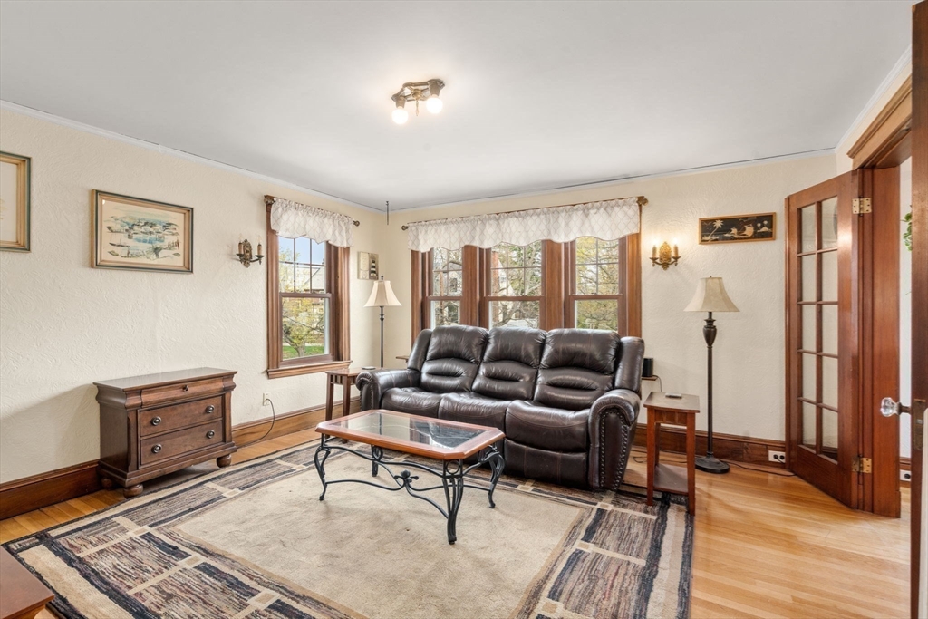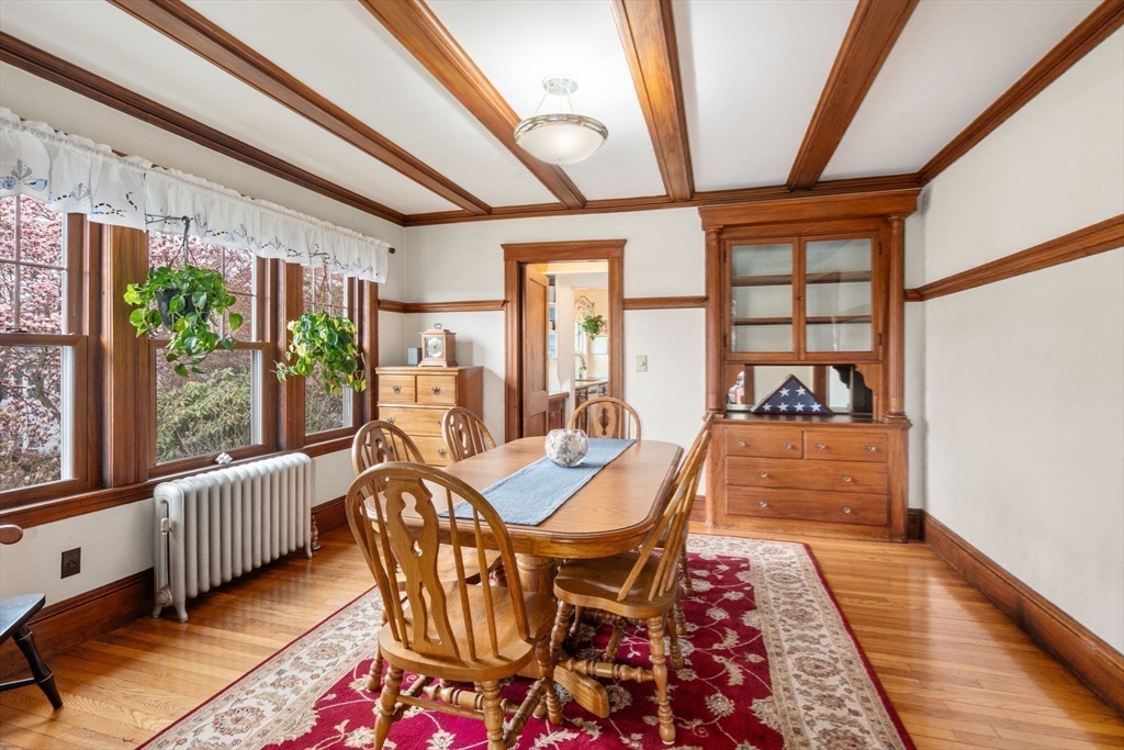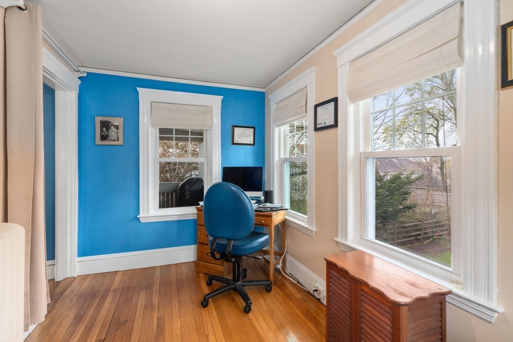 Lovingly maintained, bright and spacious 2-level condo perched on one of Watertown’s most prestigious streets, offering views of Boston's skyline, 8 rooms, 4 bedrooms and 2 full baths, along with the character and features you would expect including beamed ceilings, gumwood moldings, hardwood floors, French doors, built-in hutch, fireplace, pantry, and private balcony. Expansive shared grounds feature a large deck, shaded lawn areas, gardens, and shared 2-car garage with additional driveway parking. Ample garage and basement storage. Walk or bike to area markets, parks, and restaurants. Enjoy all Watertown has to offer with trails along the Charles River, new high school, and convenient access to Cambridge and Boston via the MBTA, and nearby Routes 2, 60, 95, and the Mass Pike.