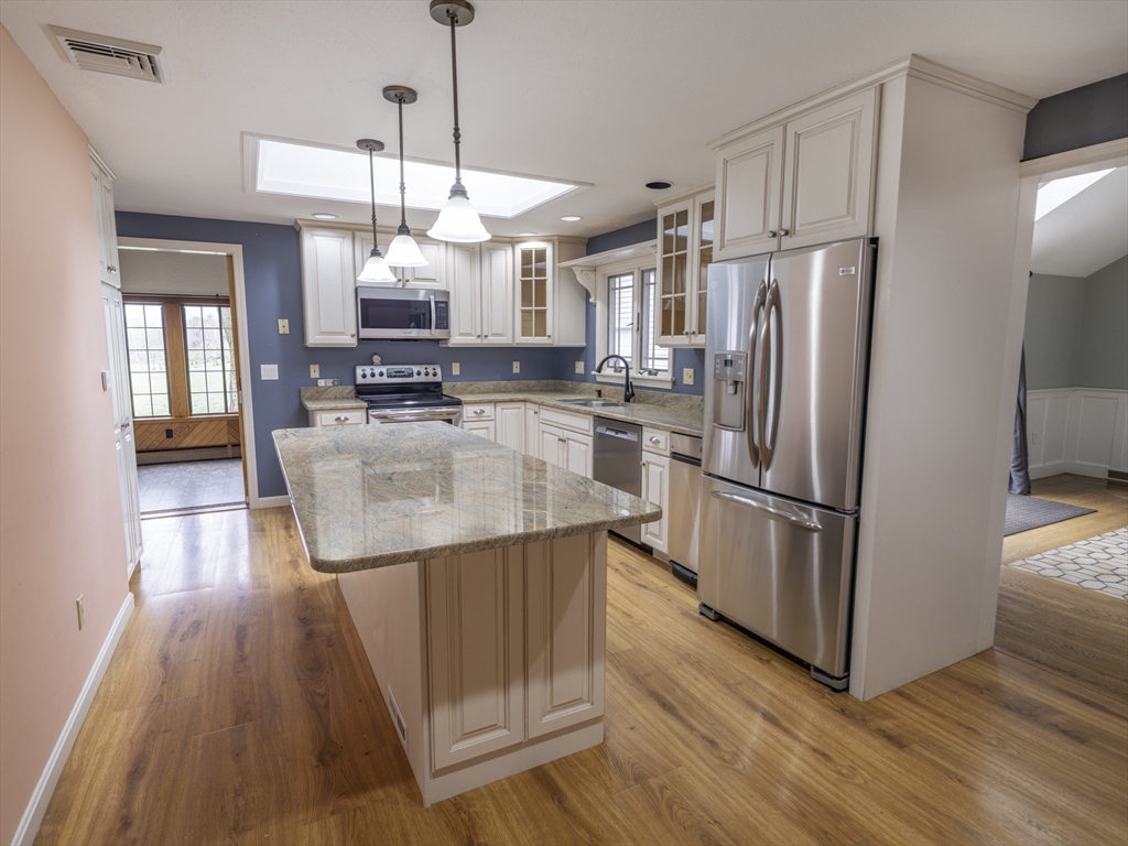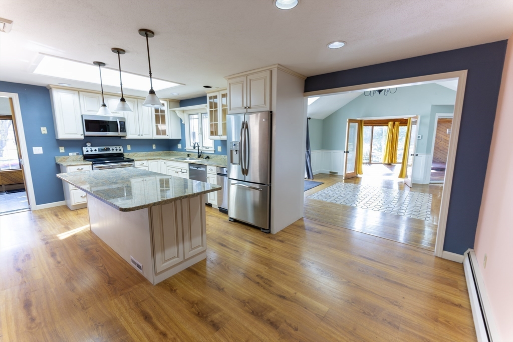 Modern Elegance Meets Suburban Tranquility! Discover the perfect blend of luxury and privacy in this stunning 3-bedroom ranch, tucked away on a massive 2.5-acre lot. Just two minutes from Tougas Farm, this home welcomes you with soaring cathedral ceilings and a sun-drenched interior. The chef-inspired kitchen features granite counters, a center island, and a built-in wine chiller—perfect for hosting in the expansive dining area or cozying up by one of two fireplaces. The primary suite is a true retreat, boasting a walk-in closet, full bath, and private slider access to the grounds. Looking for more? Enjoy a dedicated indoor jacuzzi room, a finished lower level for your home gym or media room, and professionally manicured views. With a 2-car garage and easy access to Rtes. 20, 9, 290, and 495, this is a commuter’s dream in a private paradise. First showing is Open House Sunday 05/03/26 09:30 am - 11:30 am!! Don't miss out on this rare opportunity!