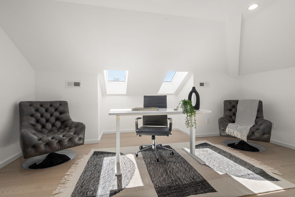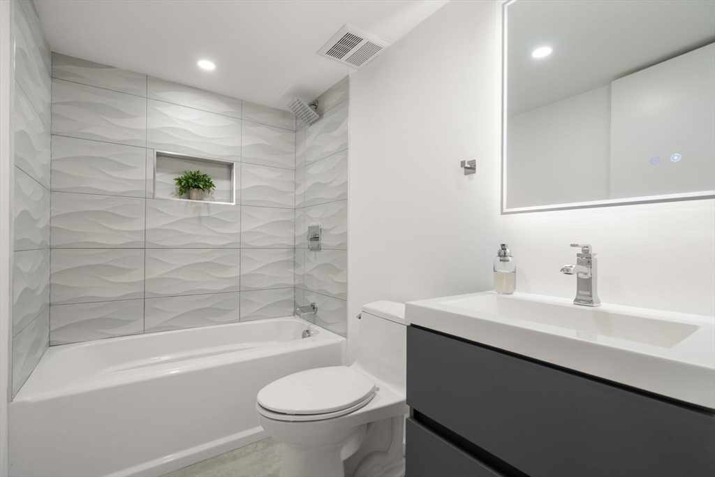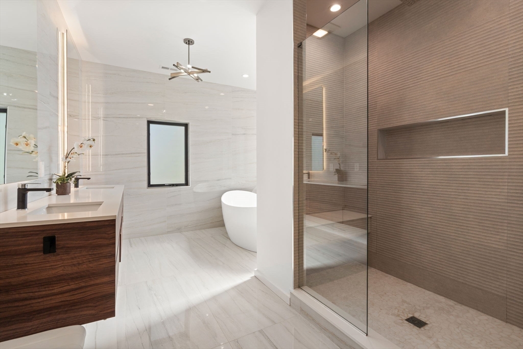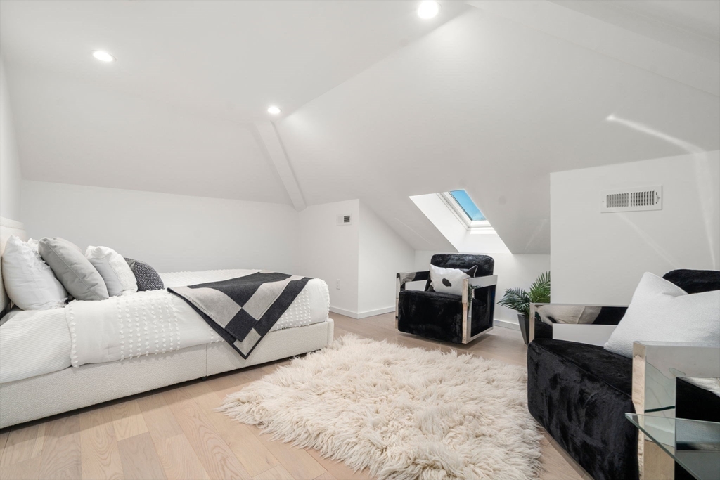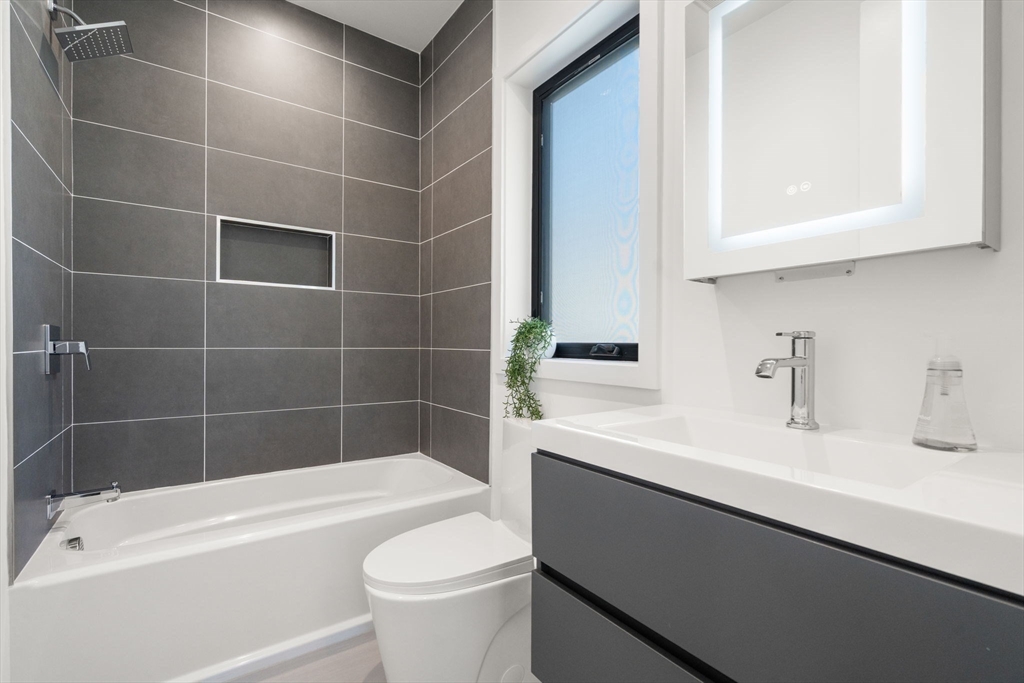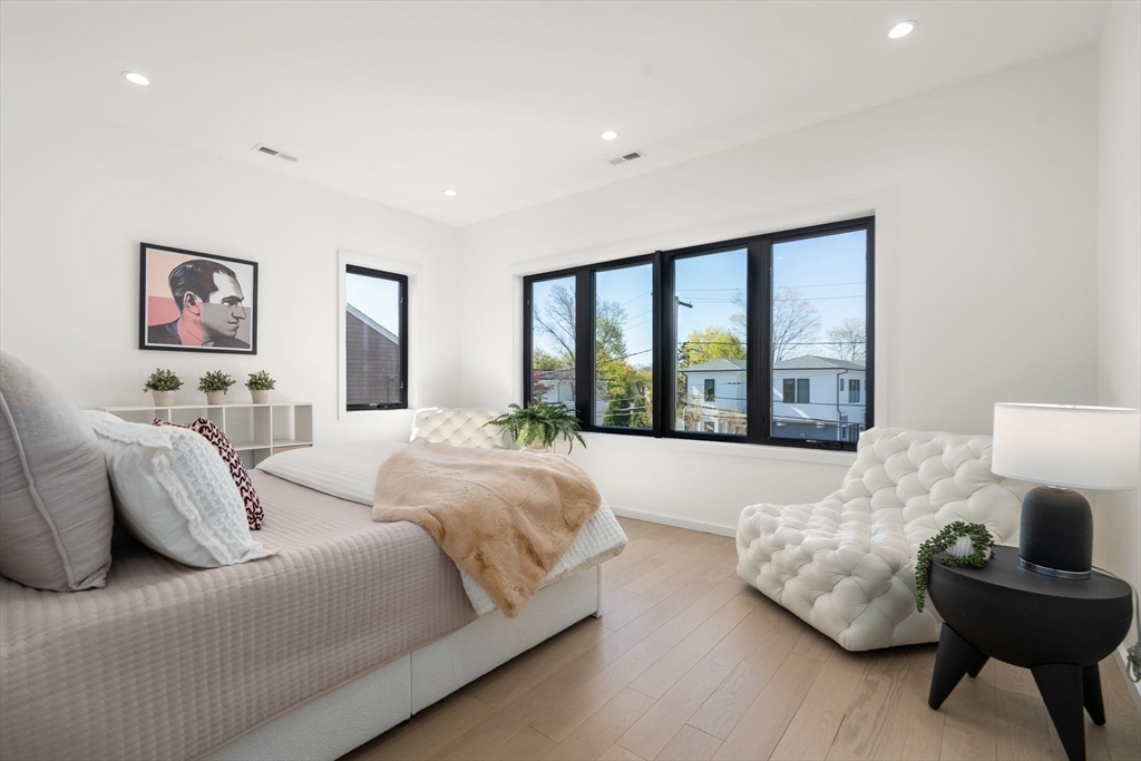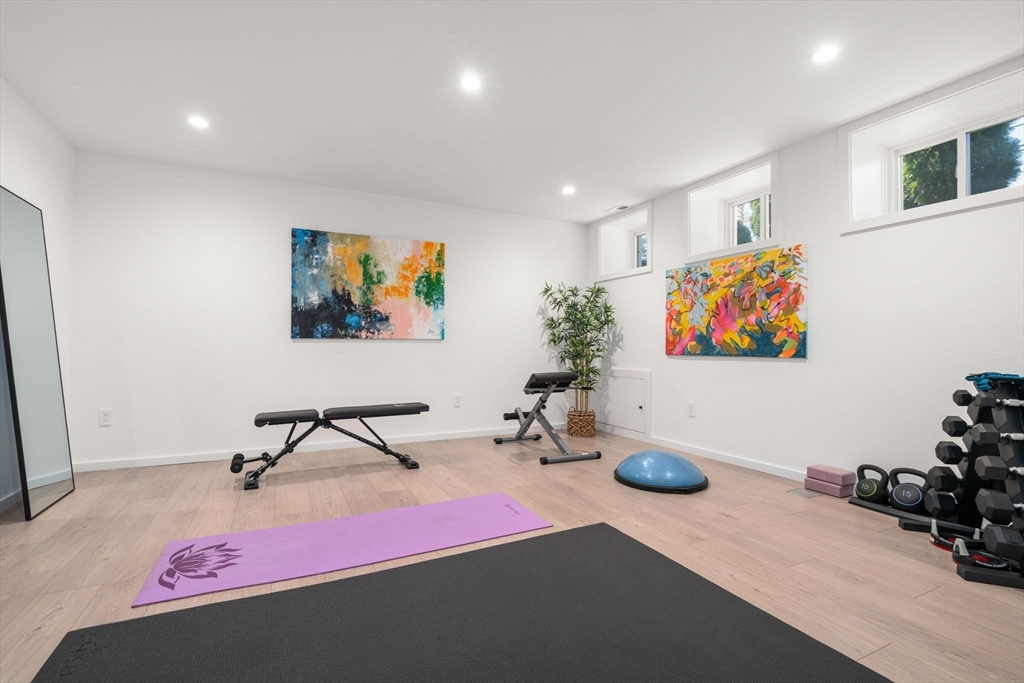 This impeccably designed Contemporary masterpiece near Newton Centre blends modern style and luxury across four levels with over 6,000 square feet of living space. On the main floor find a 2-story foyer with uplit staircase, 10-foot ceilings, wide-plank hardwood floors and open living/dining areas framed with expansive windows. The chic designer kitchen has a porcelain island that seats four, designer lighting, Jenn-Air appliances, wine room and a casual dining area. Enjoy seamless access to the covered deck and patio from the spacious family room with its double-sided fireplace. Find 4 ensuite bedrooms upstairs, including a primary suite with a spa-like bath, dual walk-in closets and private balcony. The skylit 3rd floor adds a bedroom and flexible office or bedroom. Discover a wet bar and spaces for media, gym or recreation in the finished lower level. Also note the 1st-floor bedroom, heated 2-car garage and custom mudroom.Close to schools and amenities. An extraordinary custom home!