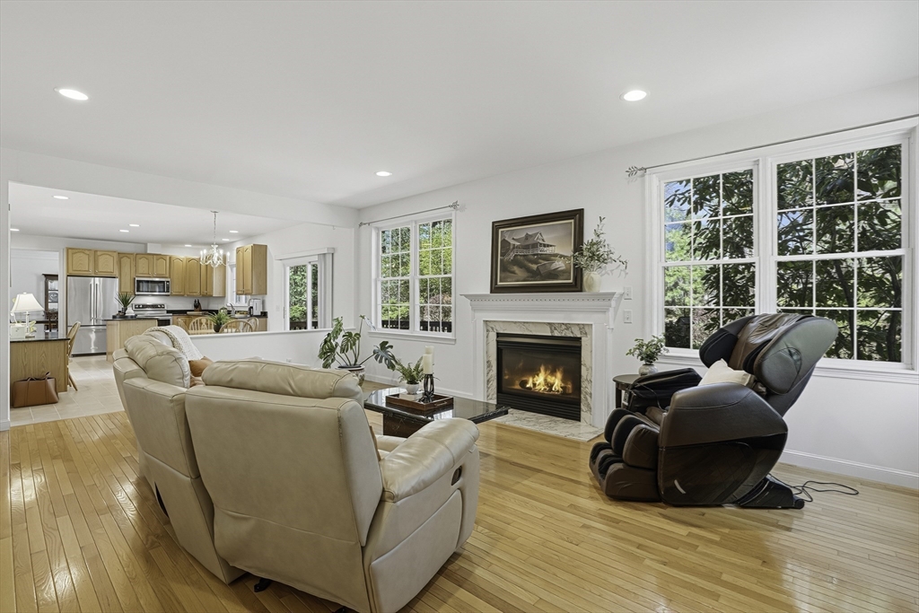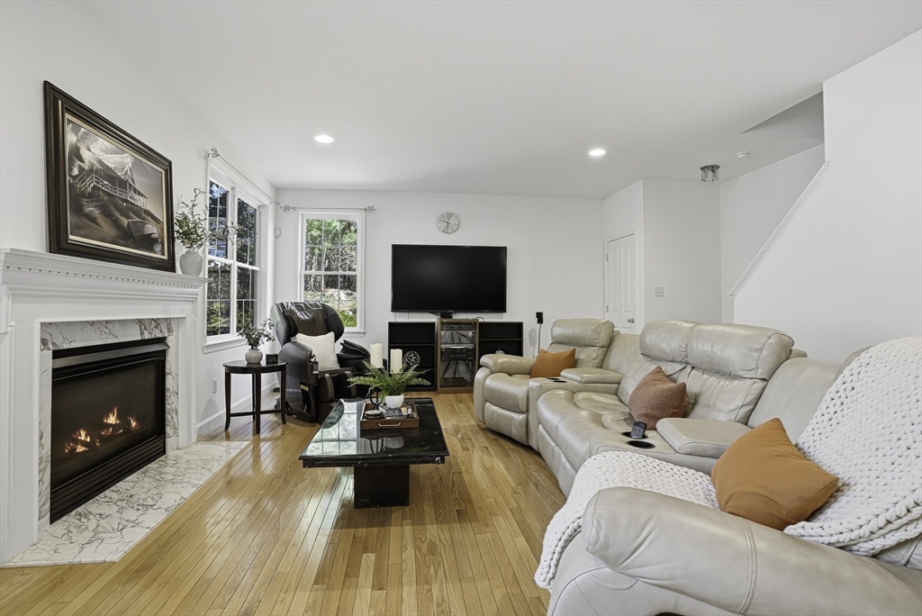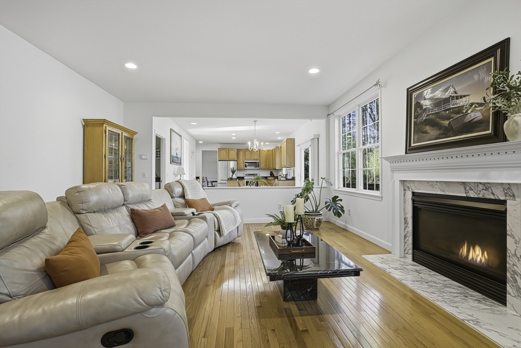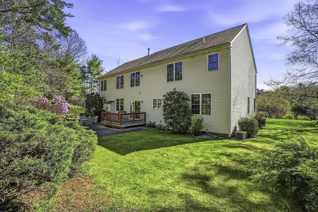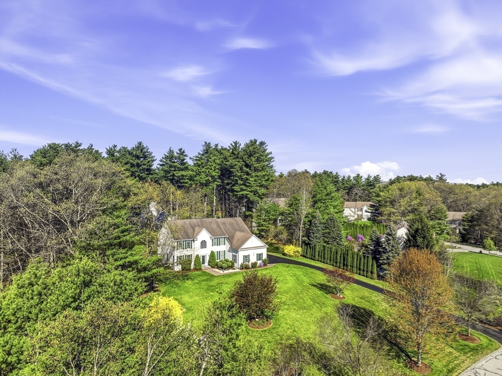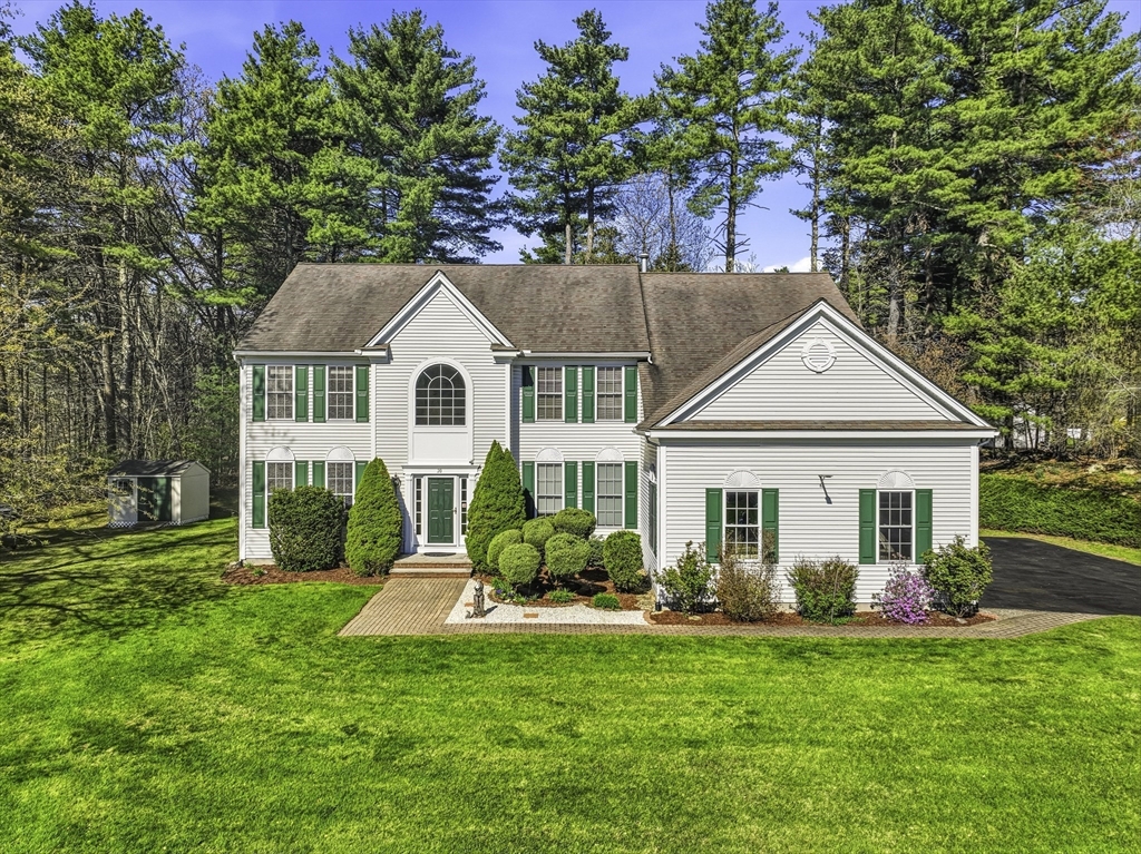 Striking 4-bedroom, 3.5-bathroom "Wellington" Colonial set on a scenic park-like setting in highly regarded Hopkinton Meadows. Two story foyer opens to sun-drenched chef's kitchen boasting sleek cabinets, granite counters, pantry & breakfast island that flows into family room anchored by a gas-fired fireplace. For formal hosting, the elegant dining room provides refined living, while the home office with French doors & living room offers quiet retreats. The primary suite offers a sanctuary w sitting room, spa-inspired bathroom & walk-in closet w ~200 sq. ft to expand! A private ensuite guest room + 2 more spacious bedrooms, both filled w light & access to J&J full bath. Wine cellar & workshop in lower level ready for gym & more. Highlights include natural gas, 3-car garage, veggie garden & pear trees! Situated in peaceful neighborhood adjacent to conservation & trails, this home offers easy access to top schools, commuter rail & 495/90, perfectly balancing serenity & accessibility.