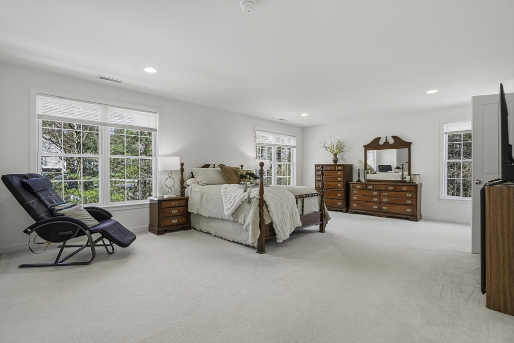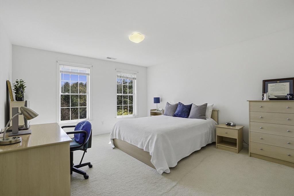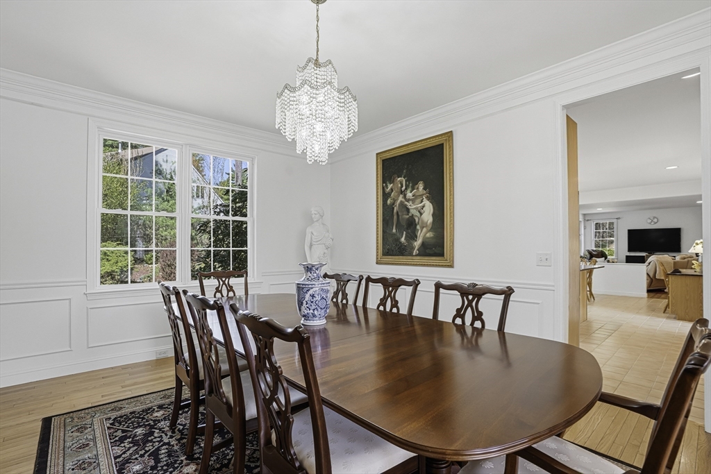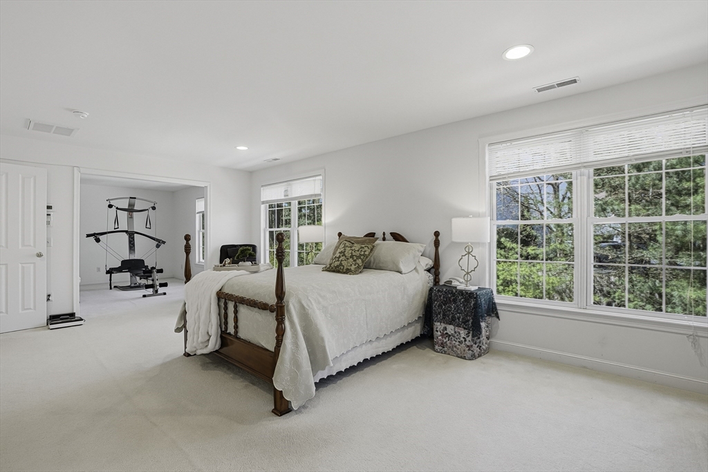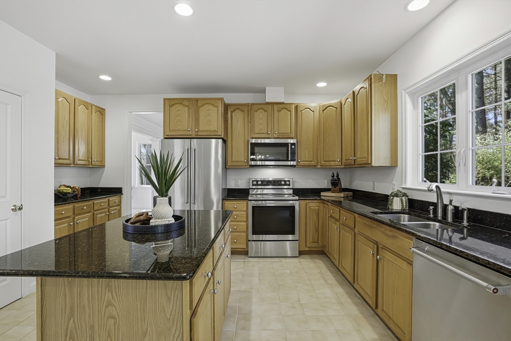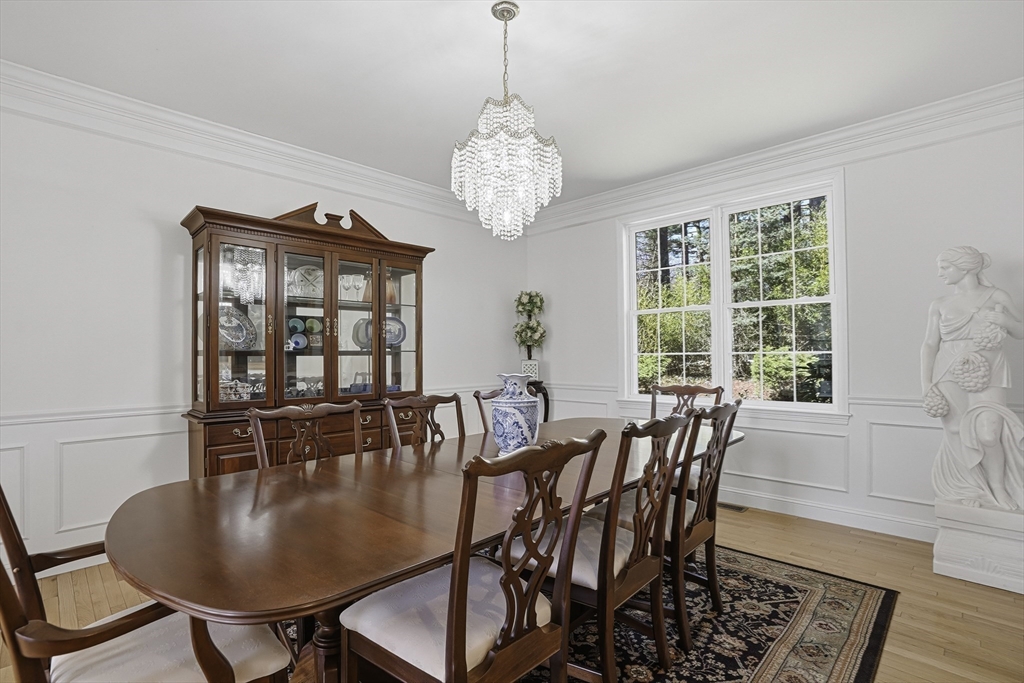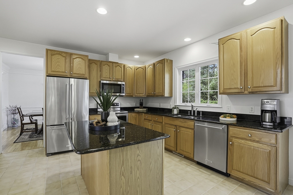 Striking 4-bedroom, 3.5-bathroom "Wellington" Colonial set on a scenic park-like setting in highly regarded Hopkinton Meadows. Two story foyer opens to sun-drenched chef's kitchen boasting sleek cabinets, granite counters, pantry & breakfast island that flows into family room anchored by a gas-fired fireplace. For formal hosting, the elegant dining room provides refined living, while the home office with French doors & living room offers quiet retreats. The primary suite offers a sanctuary w sitting room, spa-inspired bathroom & walk-in closet w ~200 sq. ft to expand! A private ensuite guest room + 2 more spacious bedrooms, both filled w light & access to J&J full bath. Wine cellar & workshop in lower level ready for gym & more. Highlights include natural gas, 3-car garage, veggie garden & pear trees! Situated in peaceful neighborhood adjacent to conservation & trails, this home offers easy access to top schools, commuter rail & 495/90, perfectly balancing serenity & accessibility.